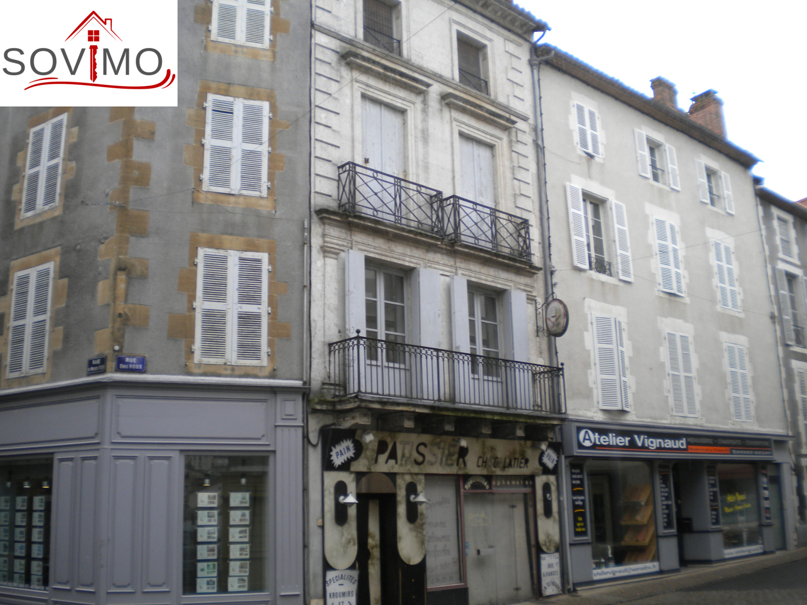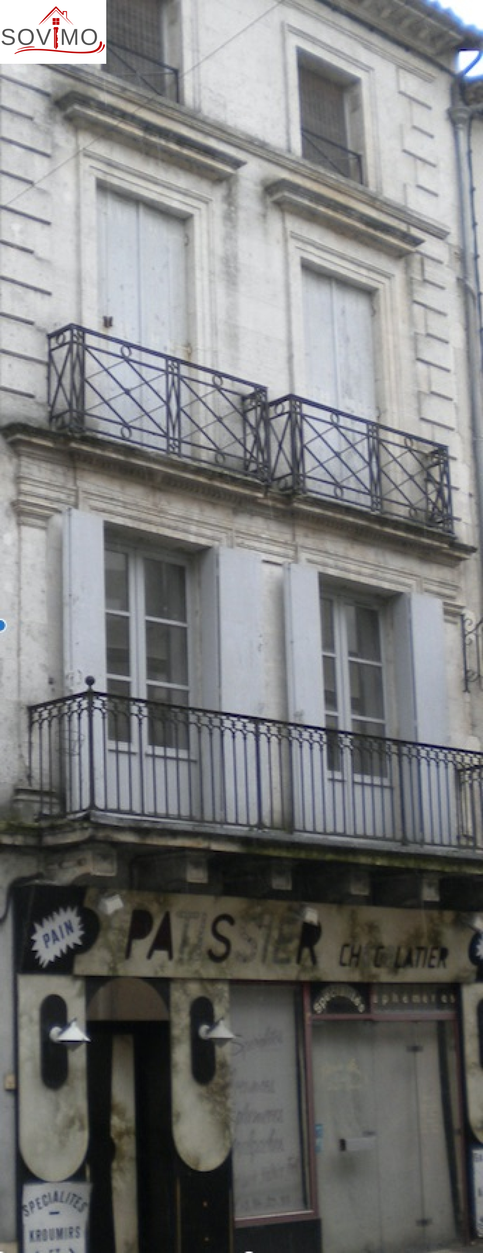 REF.33840 : 110 000 euros H.Ag.Incl., centre Confolens, un immeuble à investissement locatif, R/C : local commercial avec magasin 37 m2, patio couvert, remise, une pièce fermée, garage 22 m2, cour, au 1er étage : T2) 45 m2 : cuisine/séjour (balcon), 1chambre, salle de bain/wc, couloir, T3) 60 m2 : loué 376 euros/mois : 1 pièce à vivre avec coin cuisine, deux chambres, salle de bain, wc, terrasse, au 2nd étage : T3) 60 m2 : loué 300,23 euros/mois : entrée, cuisine/séjour, 2 chambres, salle de bain, wc, T4 duplex) 84 m2 : cuisine, séjour/salon, couloir, dressing, wc, étage : palier, 3 chambres, dressing, salle de bain/wc, au 3ème étage : T3) 56 m2 : entrée, cuisine/séjour, 2 chambres, salle de bain, wc, couloir, tout à l'égout.