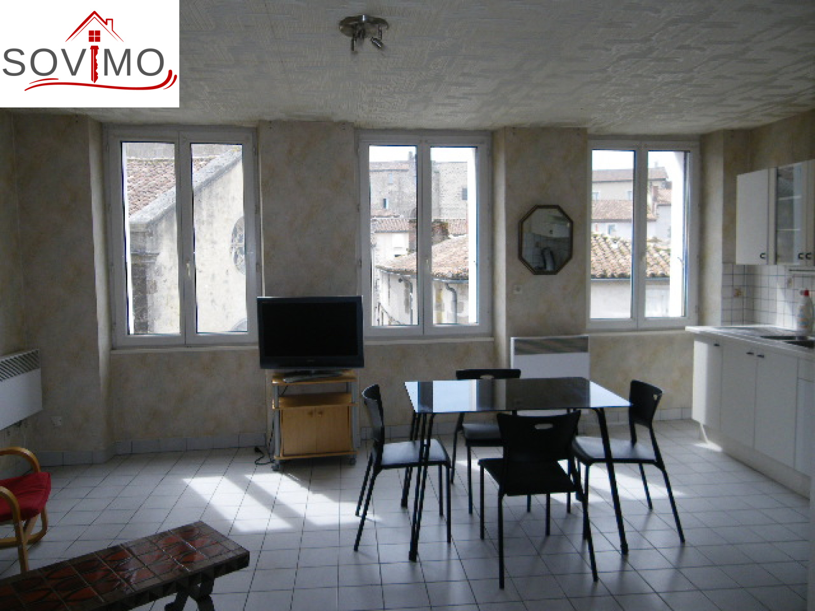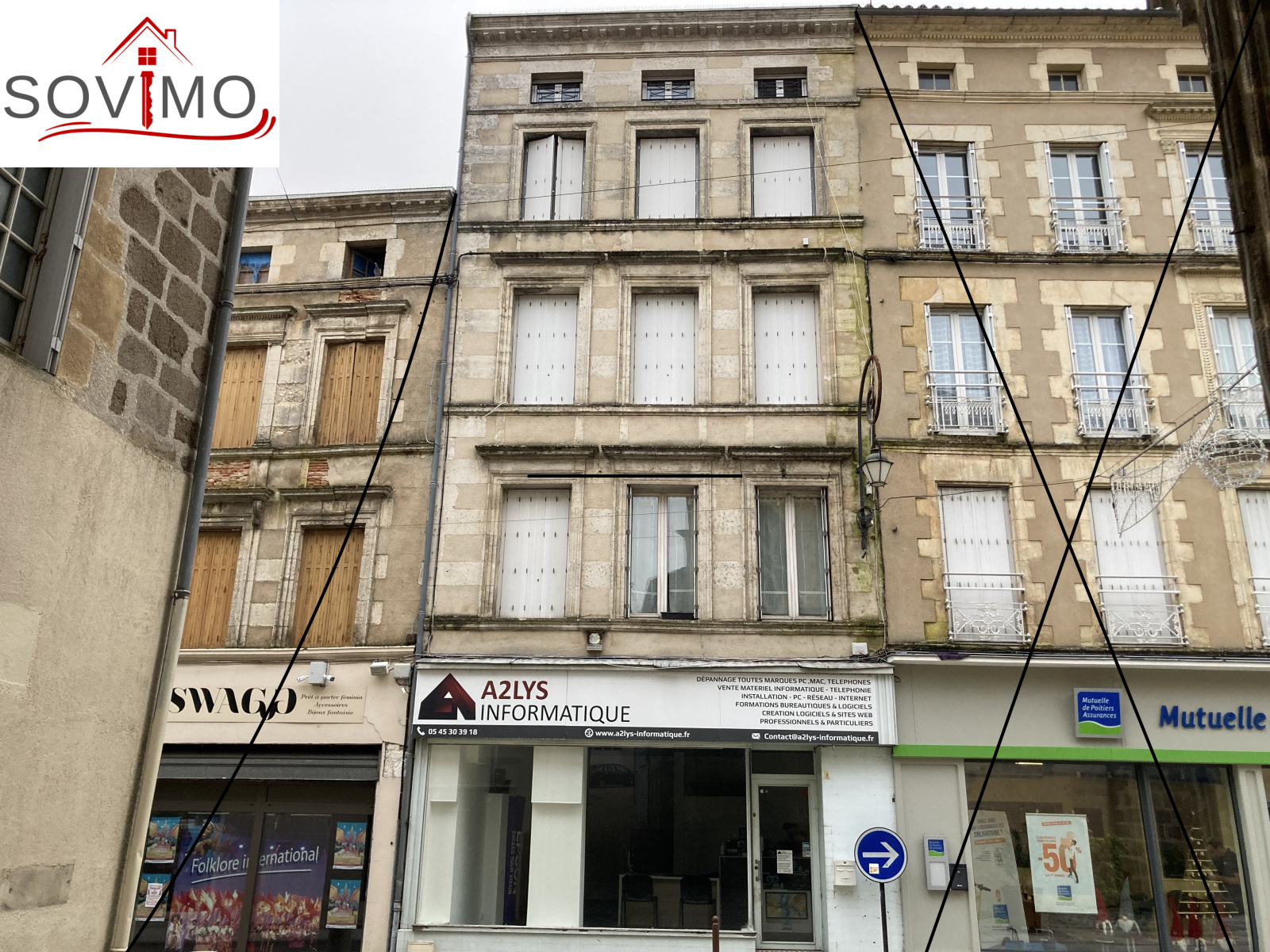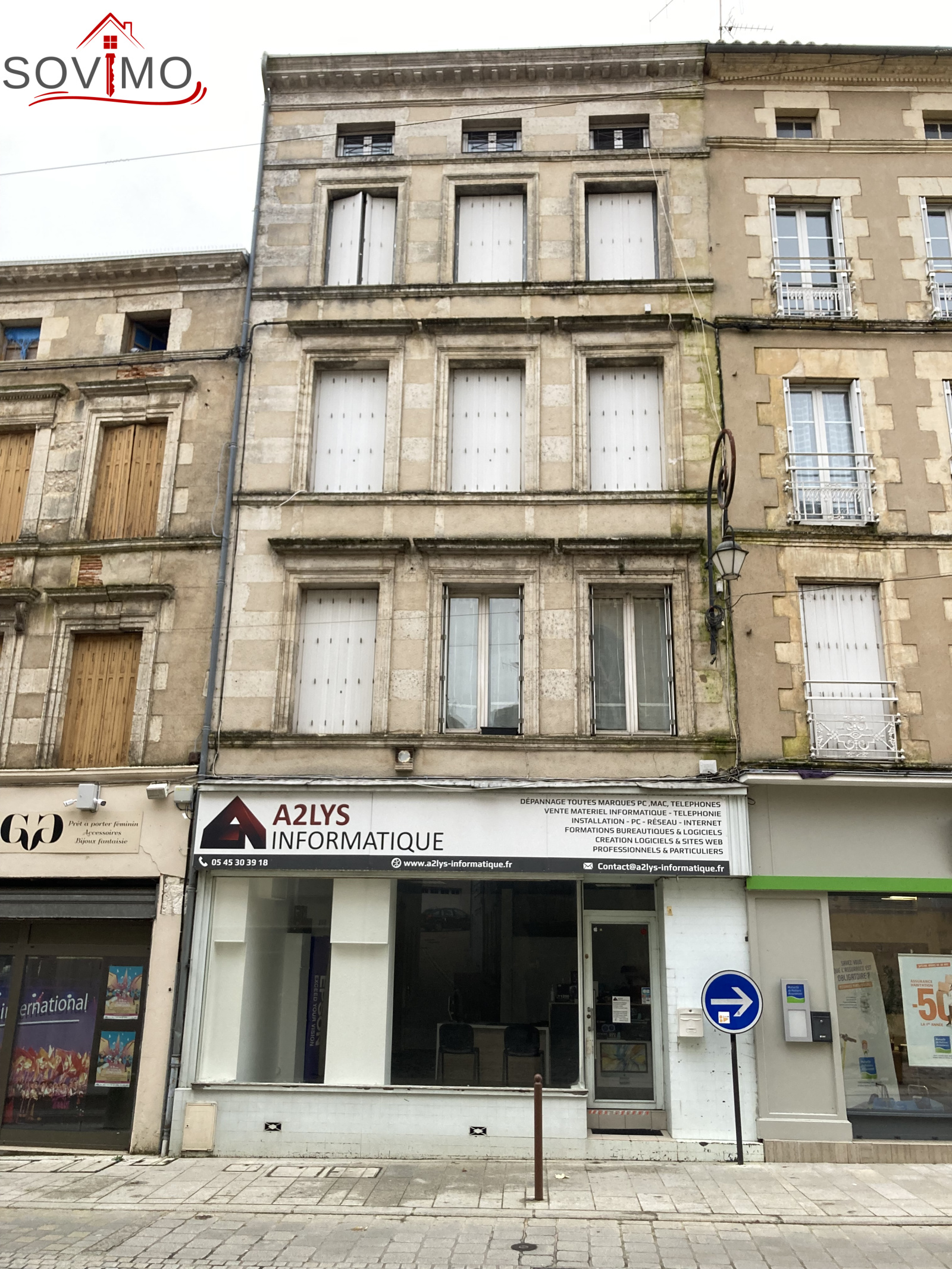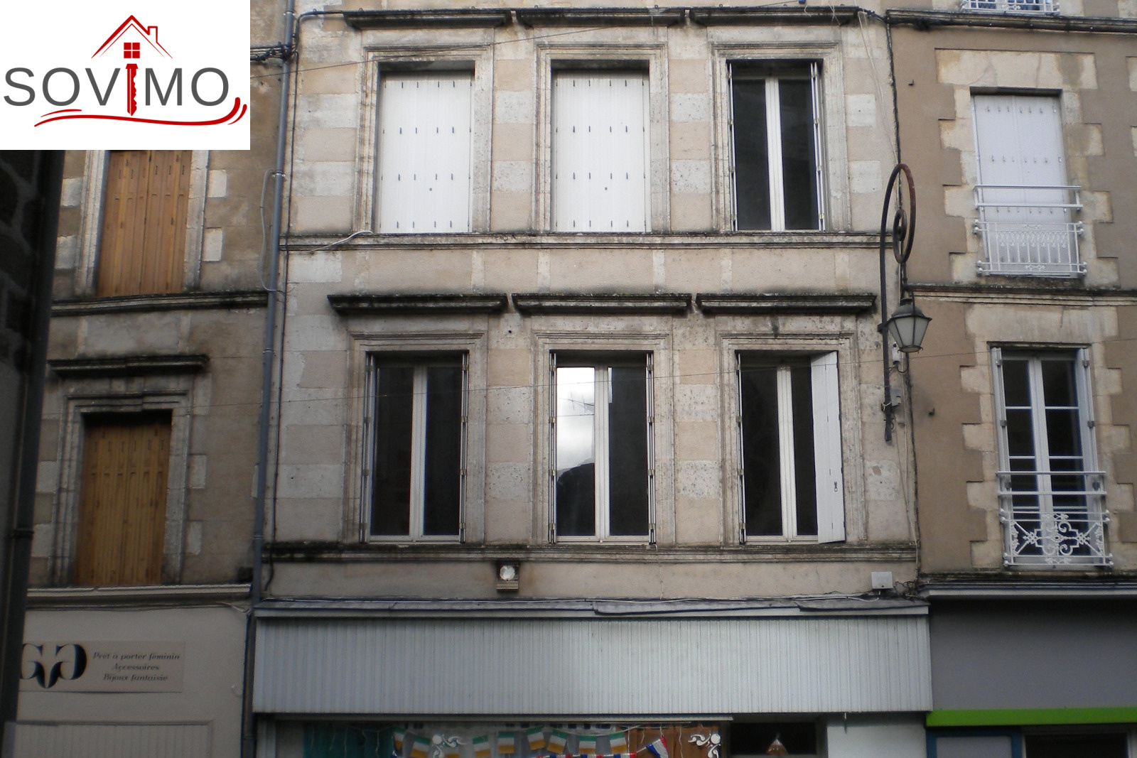 REF. 34559 : 149 000 euros H.A.I, Confolens (16) , CENTRE CONFOLENS, très bien placé, immeuble de rapport avec un local commercial et 5 appartements, rapport brut annuel de 21 840 euros : R/C : magasin de 50 m² env. à louer 340 euros, étage 1) appt 1 loué 330 euros/mois : coin cuisine aménagée/séjour, 1 chambre, sd'eau/wc, étage 2 ) appt 2 loué 330 euros/mois : cuisine aménagée/séjour, 1 chambre, sd'eau/wc, étage 3) 2 studios meublés dont un loué 250 euros/mois : coin cuisine amé.équipée/ chambre, sd'eau/wc, étage 4) appt 5 meublé loué 370 euros/mois : cuisine amé.équip./séjour, 1 chambre, mezzanine, sd'eau/wc, chauffage électrique, tout à l'égout.