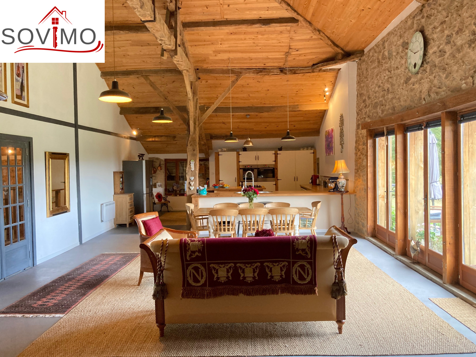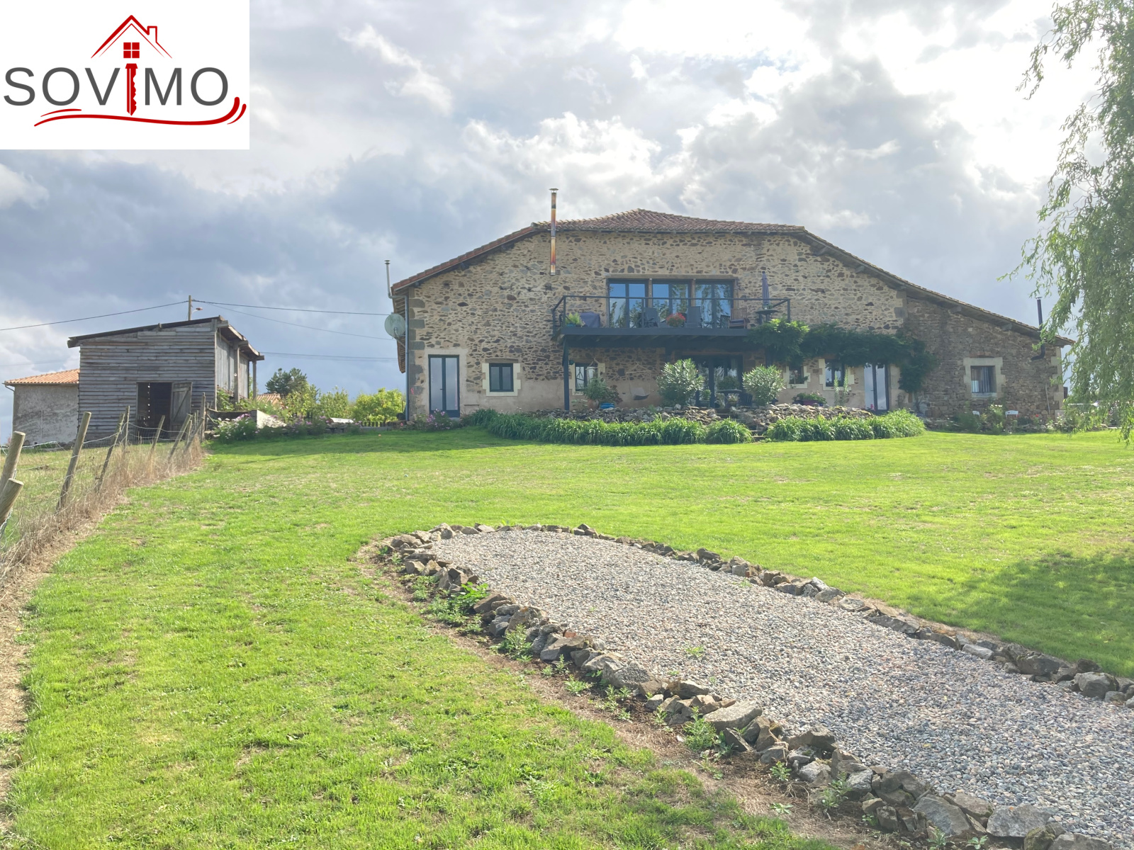 REF. 34182 : 449 400 euros H.A.I, proximité de Confolens (16), en campagne, belles prestations et grands espaces pour cette magnifique demeure, à usage d'habitation, 540 m2 env. utilisables : grand hall d'entrée, bureau, 5 chambres avec chacune salle de bain/wc, dressing, dégagement, buanderie, lingerie, wc, à l'étage : palier, 2 mezzanines, cuisine aménagée/séjour/salon (balcon, poêle à bois), chauf. électrique, fosse toutes eaux, appentis avec atelier de 40 m2, terrain attenant avec abri en bois, le tout sur 9361 m2. VISITE VIRTUELLE 360 °