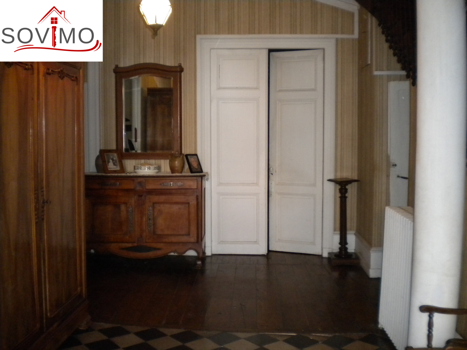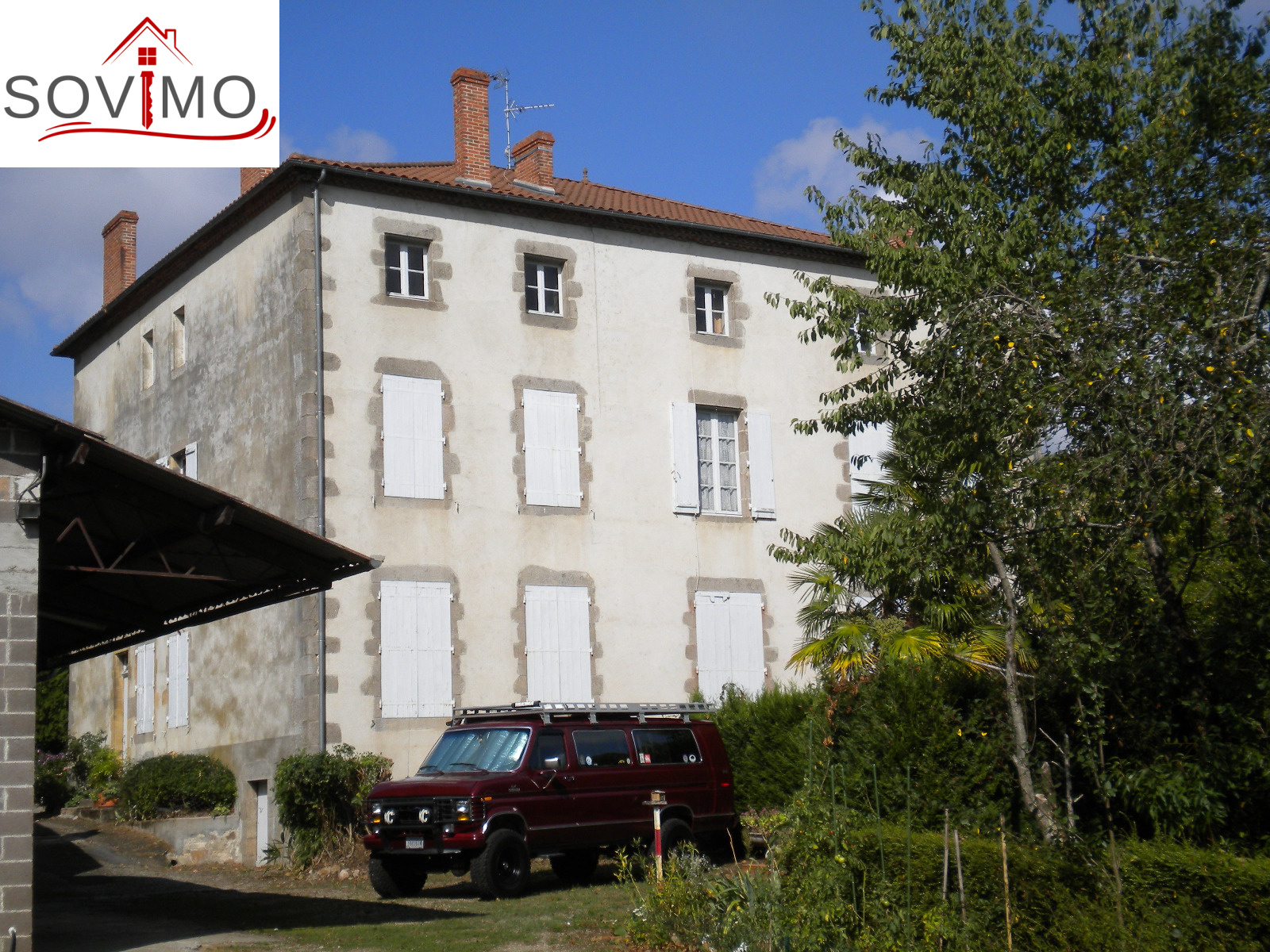 REF. 33703 : 162 000 euros Ag. Incl., Confolens (16), vaste maison de caractère, 500 m2 env. utilisables : hall, cuisine, séjour, salon, bureau, 1 chambre, couloir, salle de bain, wc, cabinet de toilette, au 1er étage : palier, cuisine, salon, 3 chambres, couloir, dressing, salle de bain, cabinet de toilette, salle d’eau/wc, au 2nd étage : palier, couloir, 4 chambres, cabinet de toilette, 2 greniers utilisables 40 et 32 m2, chauf. fuel, cour et terrain attenant avec puits bordure de rivière, le tout sur 1518 m2.