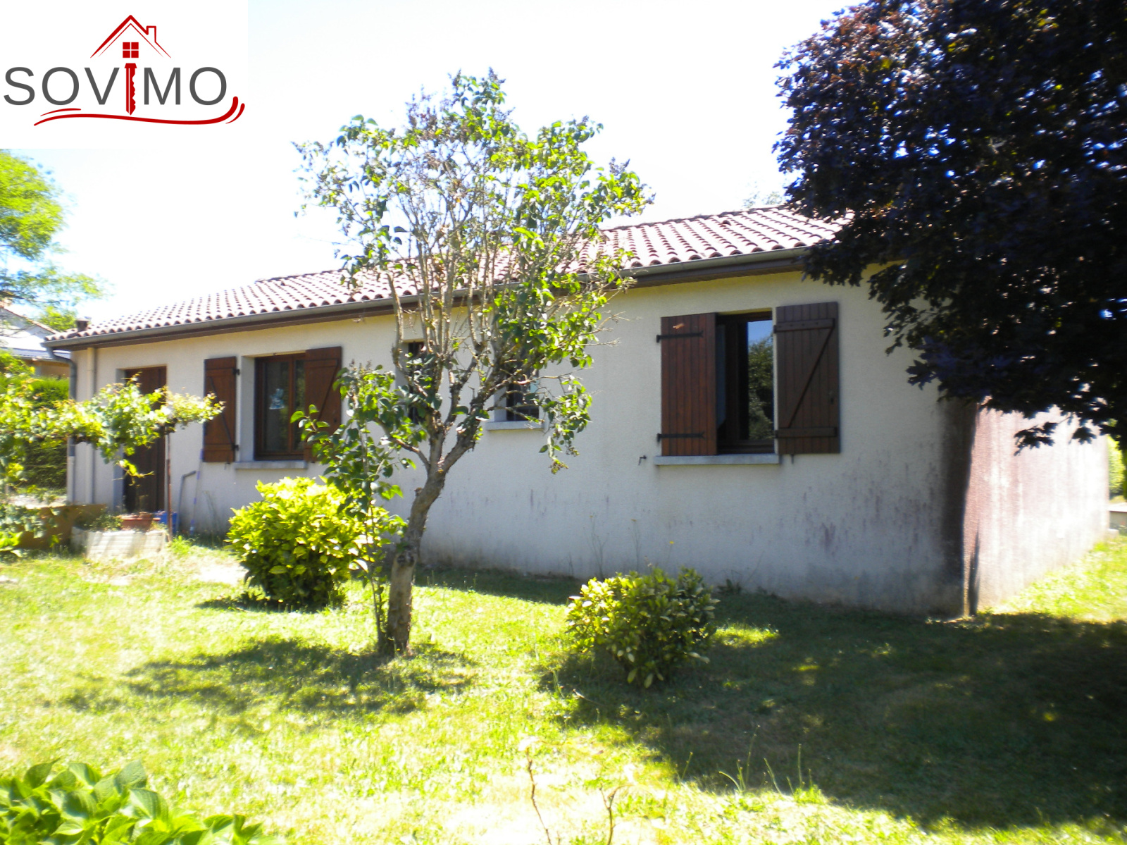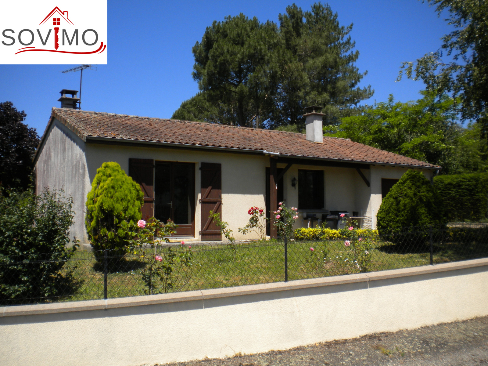 REF. 33795 : 77 000 euros H.Ag. Incl, proche Confolens (16), dans un village, plain pied indépendant de 1985, 62 m² env.utilisables : cuisine aménagée équipée, salon/séjour, 2 chambres, salle de bain, wc, porche, garage 28 m2 , chauf.électrique, tout à l'égout, terrain autour avec abri de jardin, le tout sur 1088 m² env.