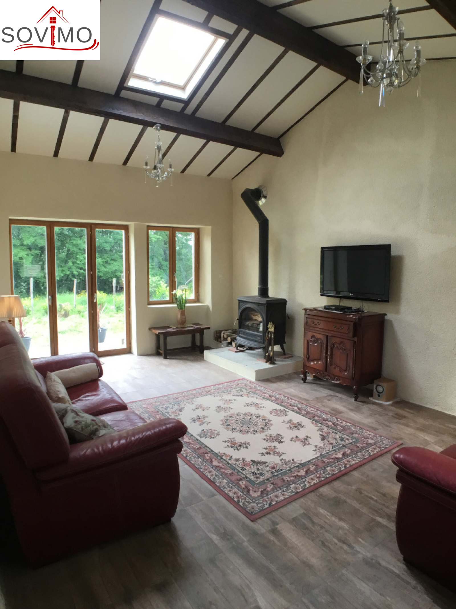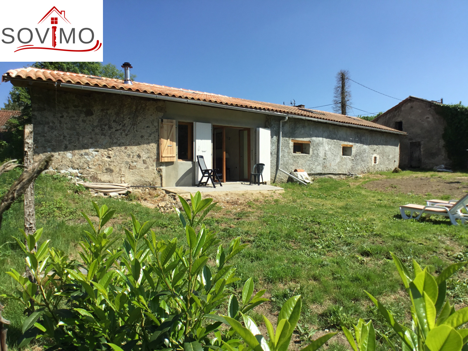 REF.33917 : 90 200 euros H.A.I, proche Confolens (16), maison de campagne indépendante restaurée, 80 m2 env. utilisables : cuisine amé.équipée/séjour (poêle à bois), salon (poêle à bois), 2 chambres dont 1 avec sd'eau/wc et dressing, salle de bain/wc, couloir, remise de 16 m2, grenier, chauf. électrique, dépendance de 35 m2, cellier de 17 m2, cour et terrain attenants, le tout sur 890 m2.