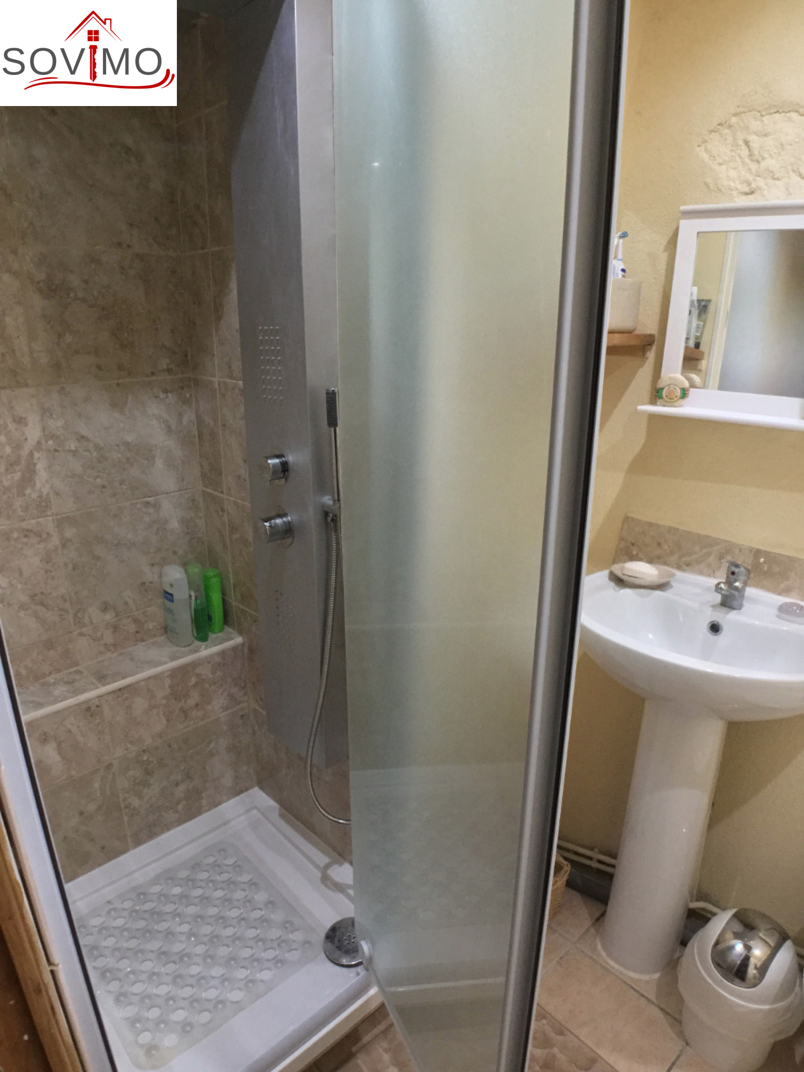 Sanibroyeur (wc de la sdb), remis 16 m2, garage 35 m2, cellier 17 m2.