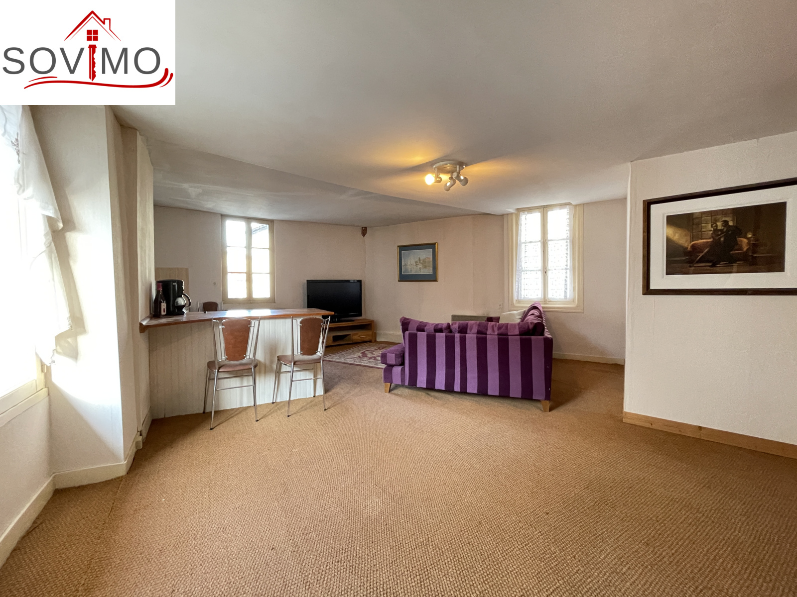 REF.34458 : 57 750 euros H.A.I, Confolens (16), centre ville, dans quartier historique, avec 2 accés maison sur 3 niveaux pouvant se tranformer facilement en immeuble de rapport ou habitation, 65 m2 env. utilisables : entrée, bureau, 1 chambre, cabinet de toilette, à l'étage : cuisine/séjour, salle d'eau/wc, grenier au dessus, chauf.électrique, assainissement collectif, garage en dessous de 35 m2.