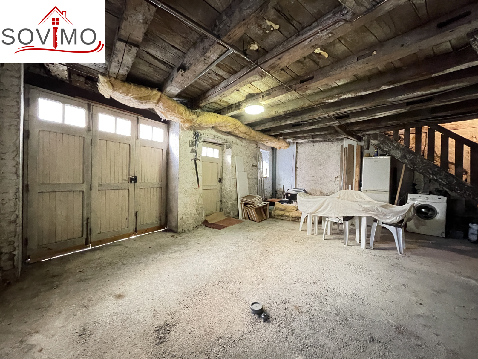 Garage avec 2 fenêtres et 2 portes. Cloisons extérieures : placo, polytyrène doublage