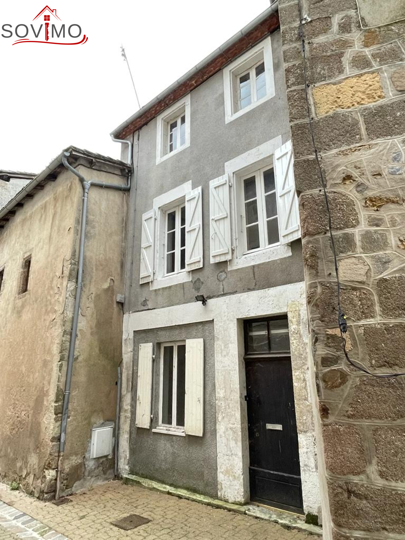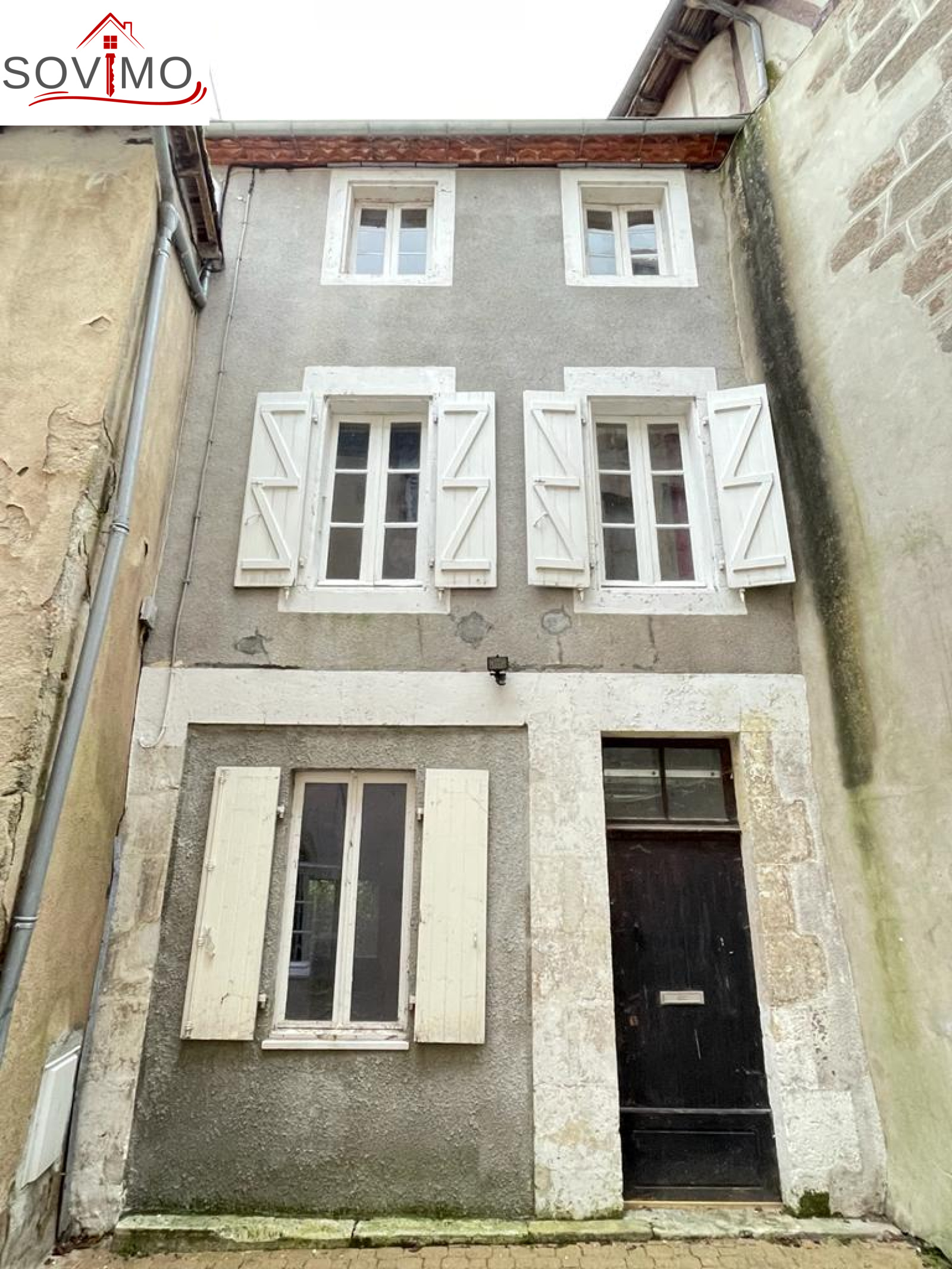REF. 34574 : 25 000 euros H.A.I, Confolens (16), ville avec tous commerces, pied à terre en centre ville, à usage d'habitation, 55 m2 env. utilisables comprenant au rez de chaussée : entrée, cuisine/séjour, wc, au 1er étage : 1 chambre, au 2nd étage : 1 chambre, salle de bain/wc, assainissement collectif, cour attenante avec petit toit mansardé de 8 m2.