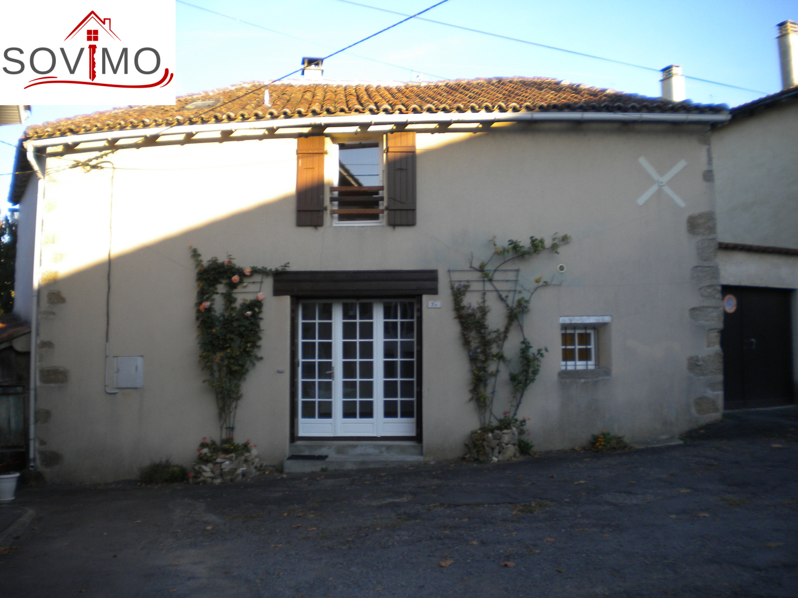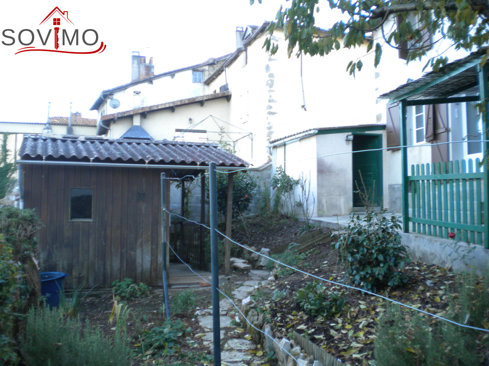 REF. 33716 : 66 000 euros H.Ag.Incl, Confolens (16), maison de ville tout confort, 97 m2 env.utilisables : cuisine aménagée/salon/séjour (cheminée avec insert), wc, étage : palier, 3 chambres, sdb/wc, chauf.électrique, garage attenant 28 m2, tout à l'égout, jardinet à l'arrière avec abri et terrasse, le tout sur 236 m2.