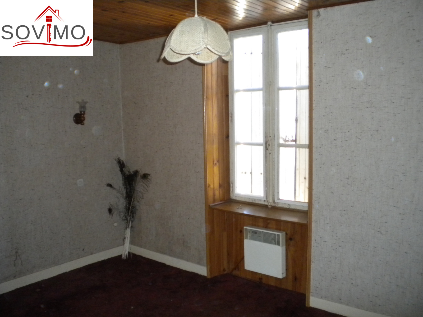 REF.33709 : 19 000 euros H.Ag.Incl., proche Confolens (16), maison de village mitoyenne à rénover, 117 m2 env. utilisables : cuisine aménagée équipée, salon/séjour, sd'eau/wc, étage 1 : 2 chambres, débarras, étage 2 : bureau, sdb, grenier mansardé, tout à l'égout, jardin séparé de 385 m2.