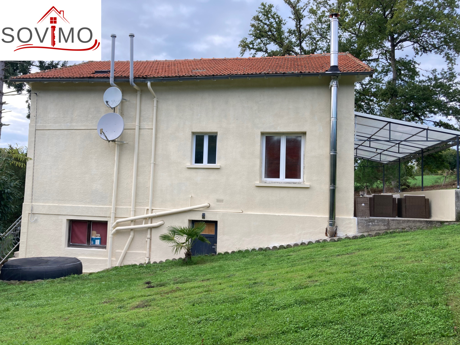Réf 34409 : 216 000 euros H.A.I, Confolens (16), à proximité du centre ville, charme et confort pour ce pavillon sur sous sol semi enterré, à usage d'habitation, 116 m2 env. utilisables composé au rez de chaussée : garage/chaufferie de 42 m2, cellier de 32 m2, au rez de jardin : cuisine aménagée, salon/séjour avec balcon (poêle à bois), buanderie, 1 chambre, salle d'eau/wc, à l'étage : palier, 2 chambres dont 1 avec cabinet de toilette, salle de bain/wc, chauf. central bois, fosse toutes eaux, terrasse couverte de 22 m2, appentis de 30 m2, terrain attenant, le tout sur 1827 m2.