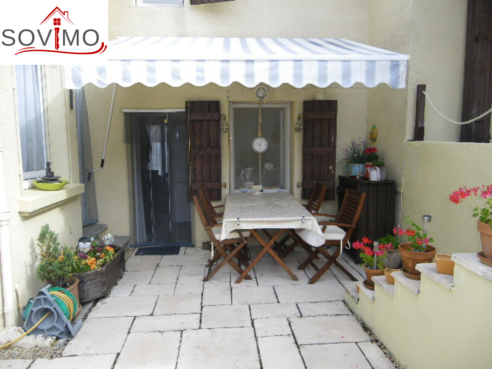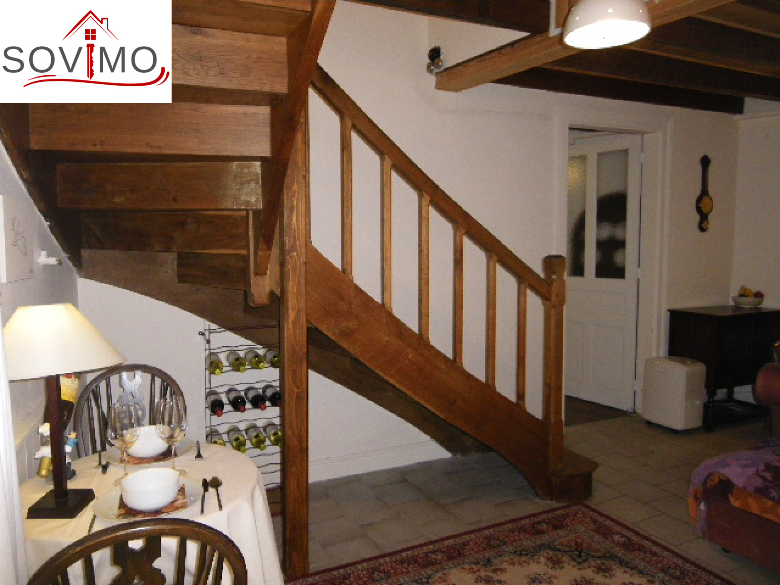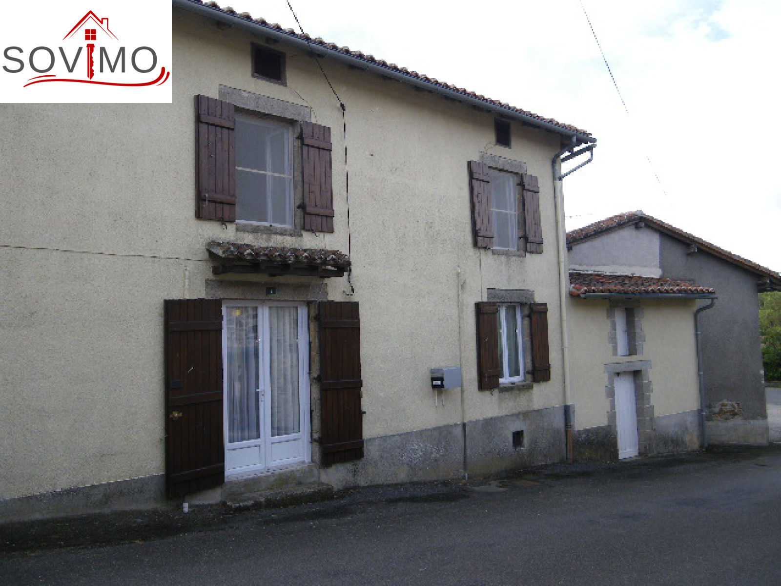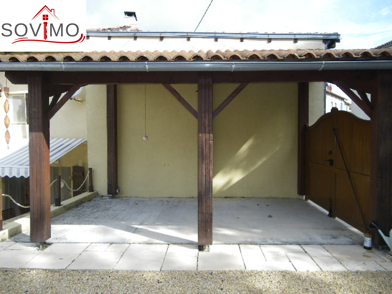 REF. 33418 : 71200 € Ag.incl. Charente (16), dans un bourg, maison de village mitoyenne, tout confort, 88 m2 env.utilisables : cuisine, salon, séjour, étage : 2 chambres, salle de bain/wc, grenier, cave, buanderie 8 m2, appenti 18 m2, terrasse, cour, tout à l'égout, Double vitrage.