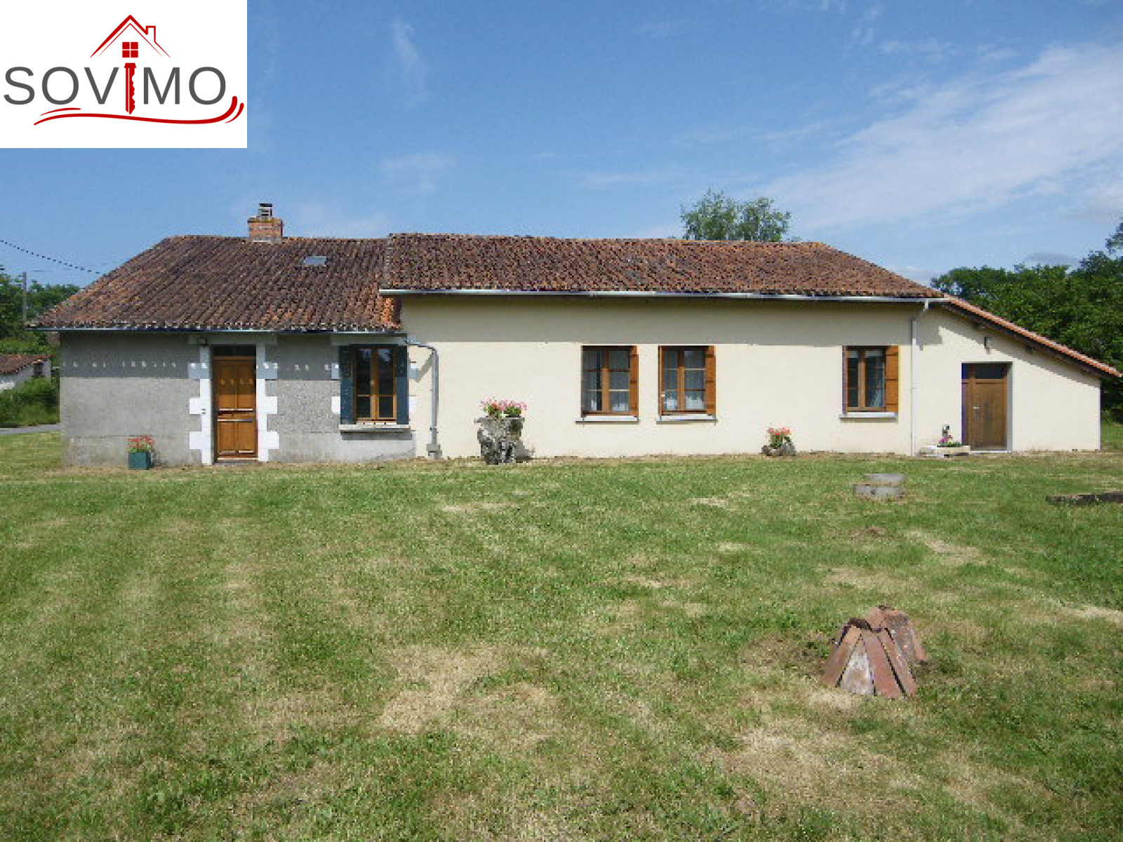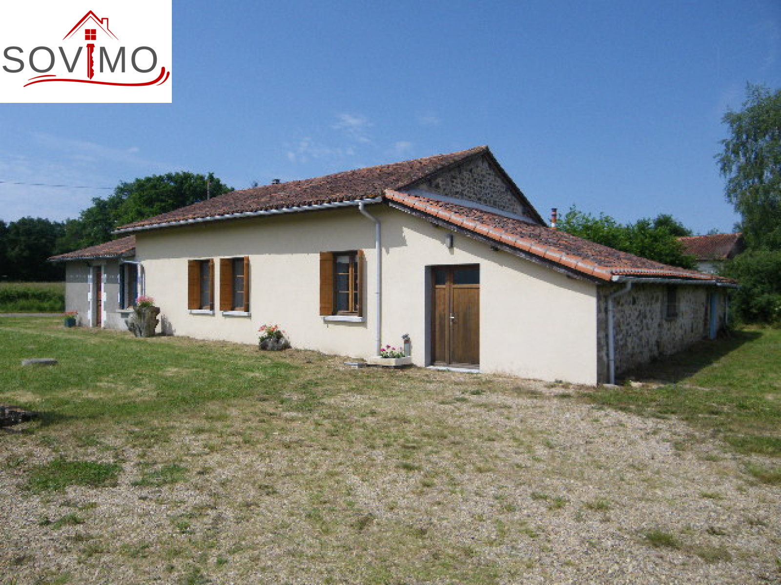 REF. 33428 : 98 600 € Ag.incl., Charente (16), dans un hameau, maison de campagne tout confort, 120 m2 env. utilisables : entrée, cuisine amé.équip./séjour, salon, 2 chambres dont 1 avec sdb/wc, sd'eau/wc, étage : 1 chambre, cellier 25 m2, four à pain, fosse toutes eaux, terrain attenant, le tout sur 1960 m2. double vitrage