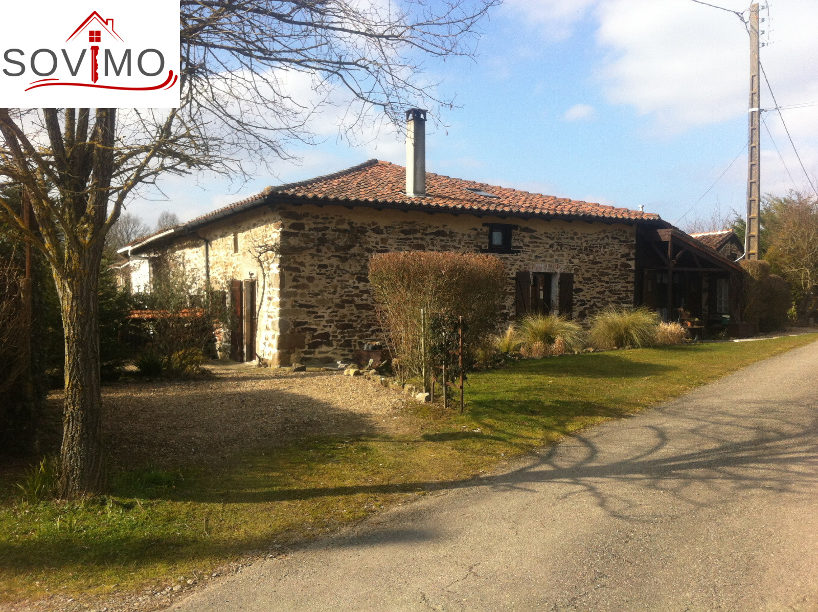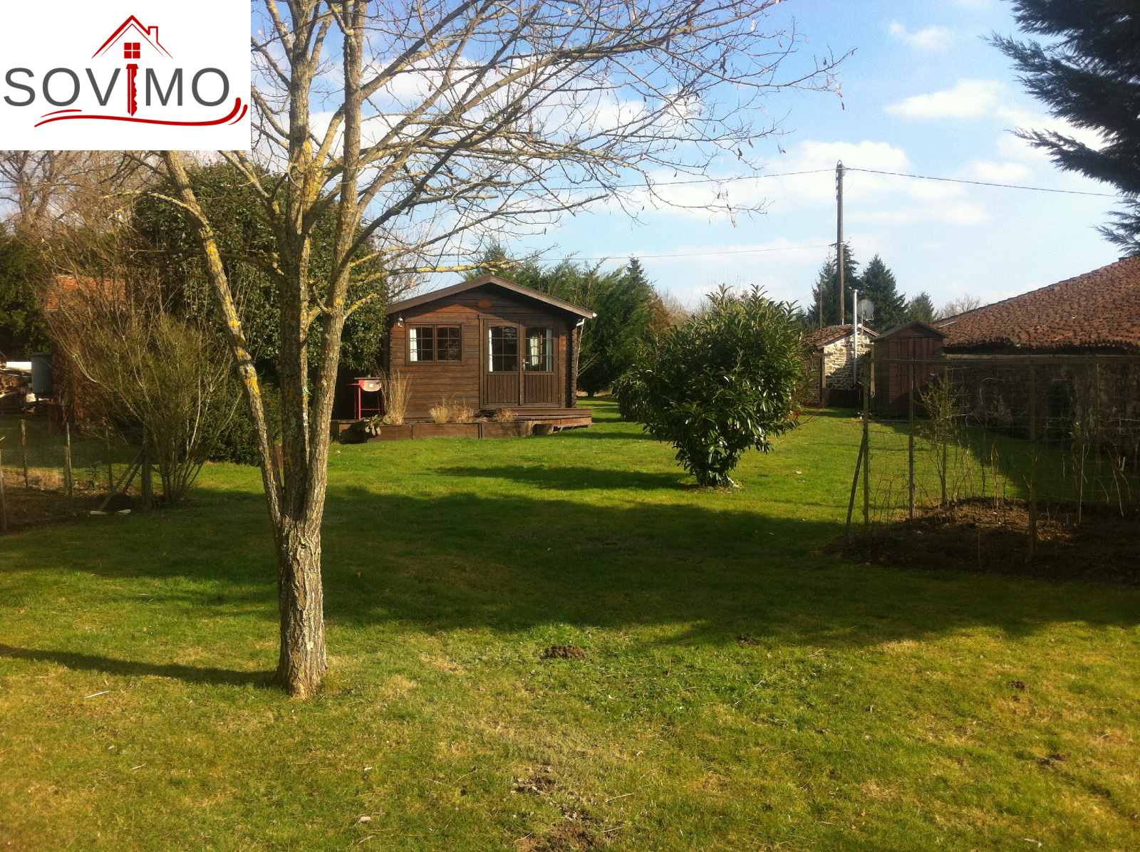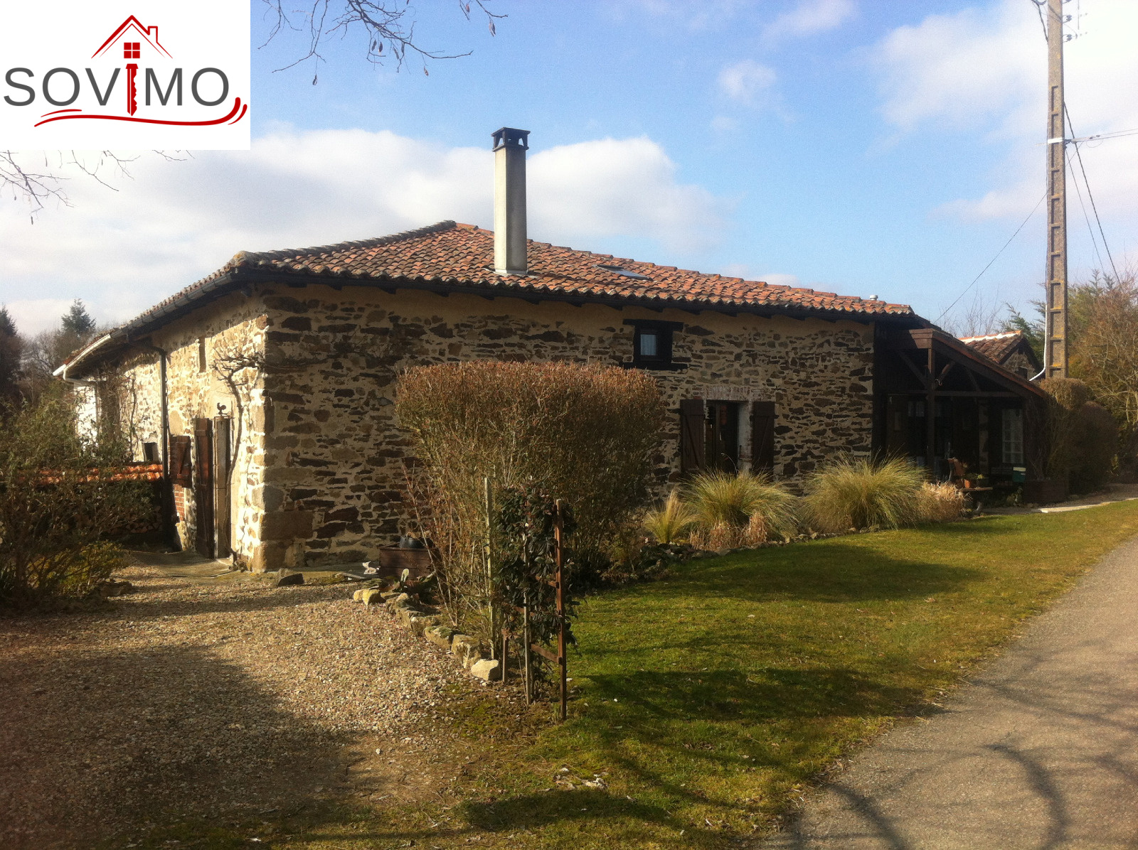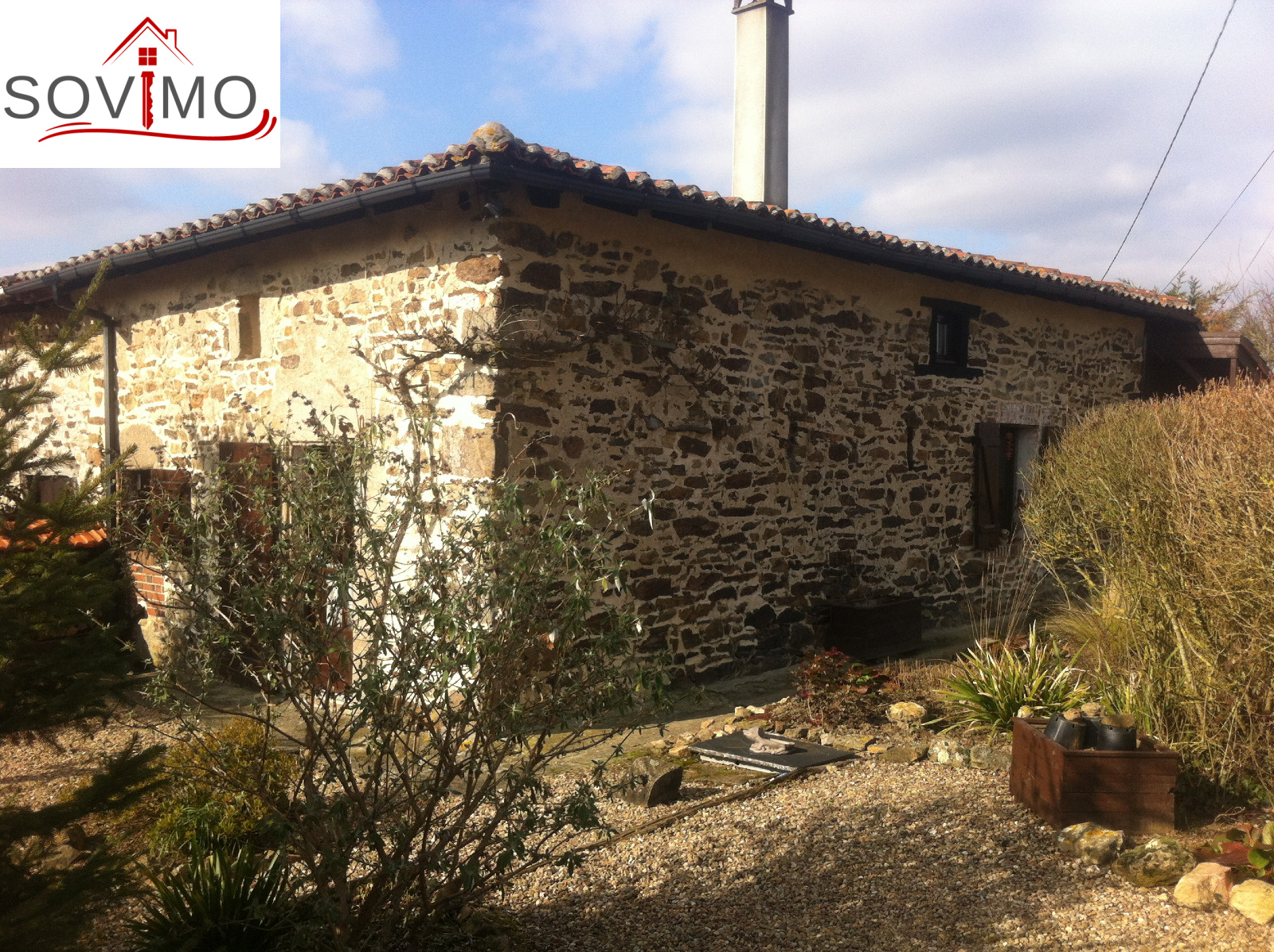 REF. 33496 : 89 900 € Ag. Incl., charente (16), dans hameau, jolie maison de campagne, en pierres apparentes, rénovée, 81 m2 env. habitable : cuisine aménagée, séjour, salon, sdb/wc, étage : palier, 2 chambres, cheminée/insert, garage en bois 23 m2, petit chalet d'une pièce 15 m2, fosse toutes eaux, terrain attenant avec petite mare artificielle, le tout sur 1630 m2.