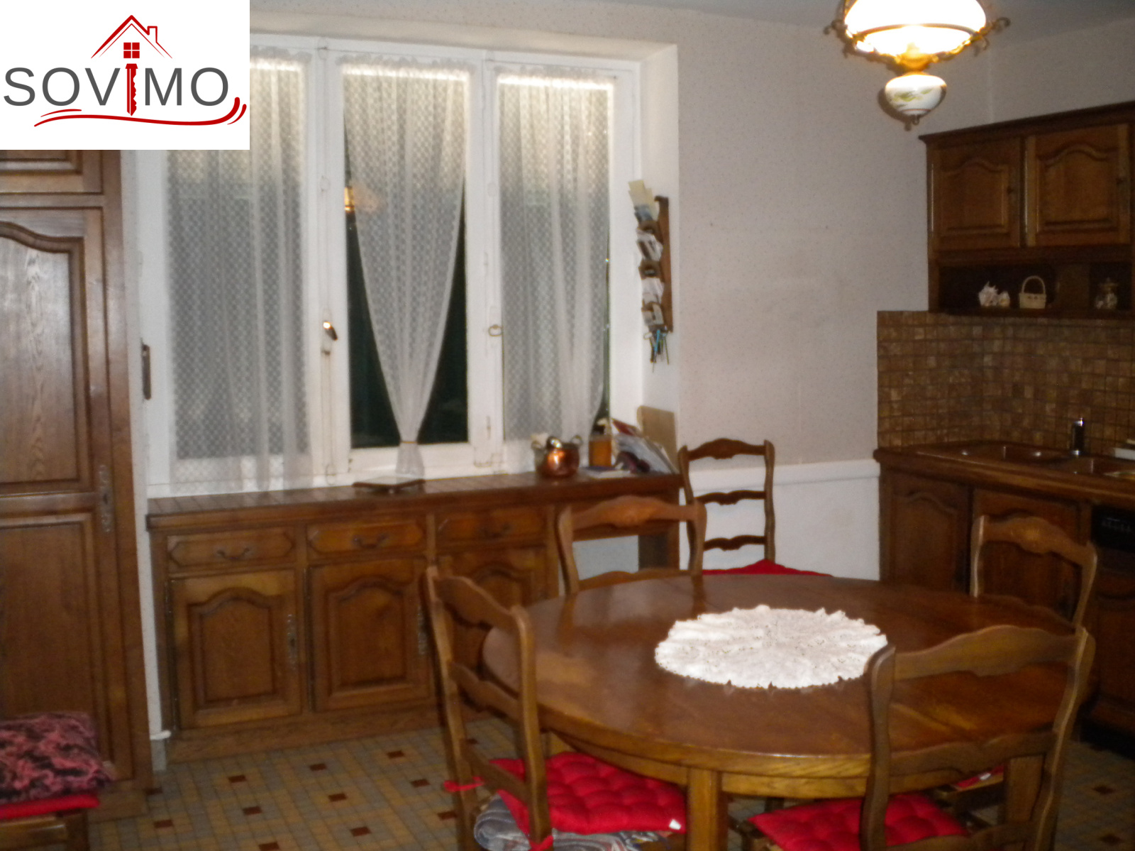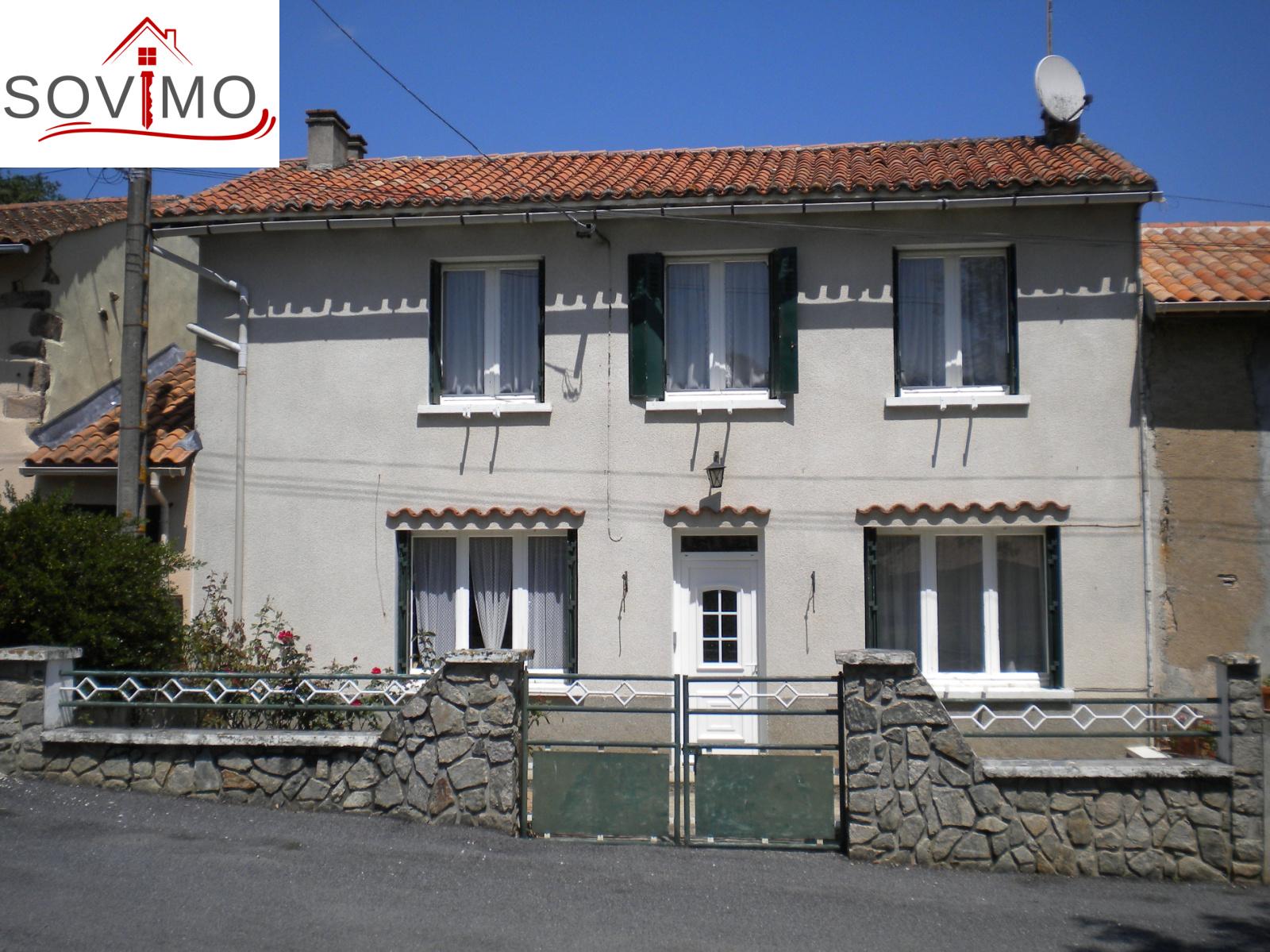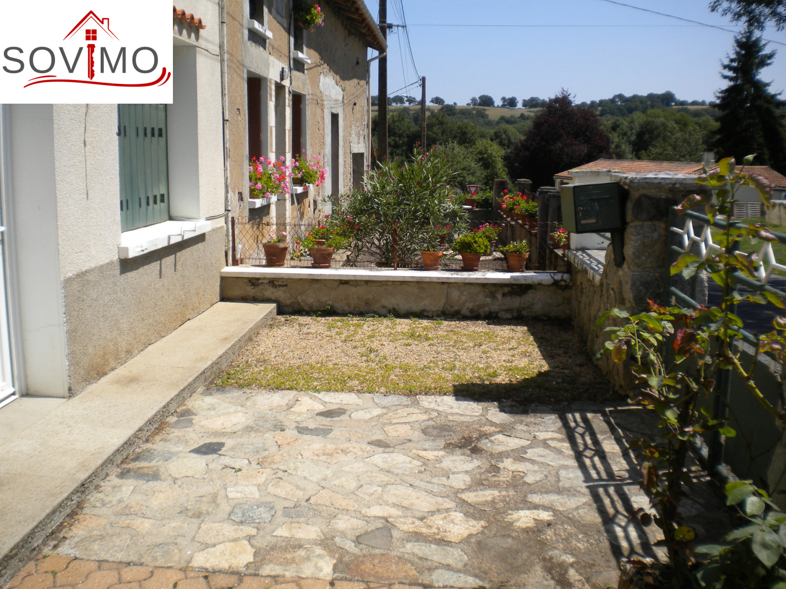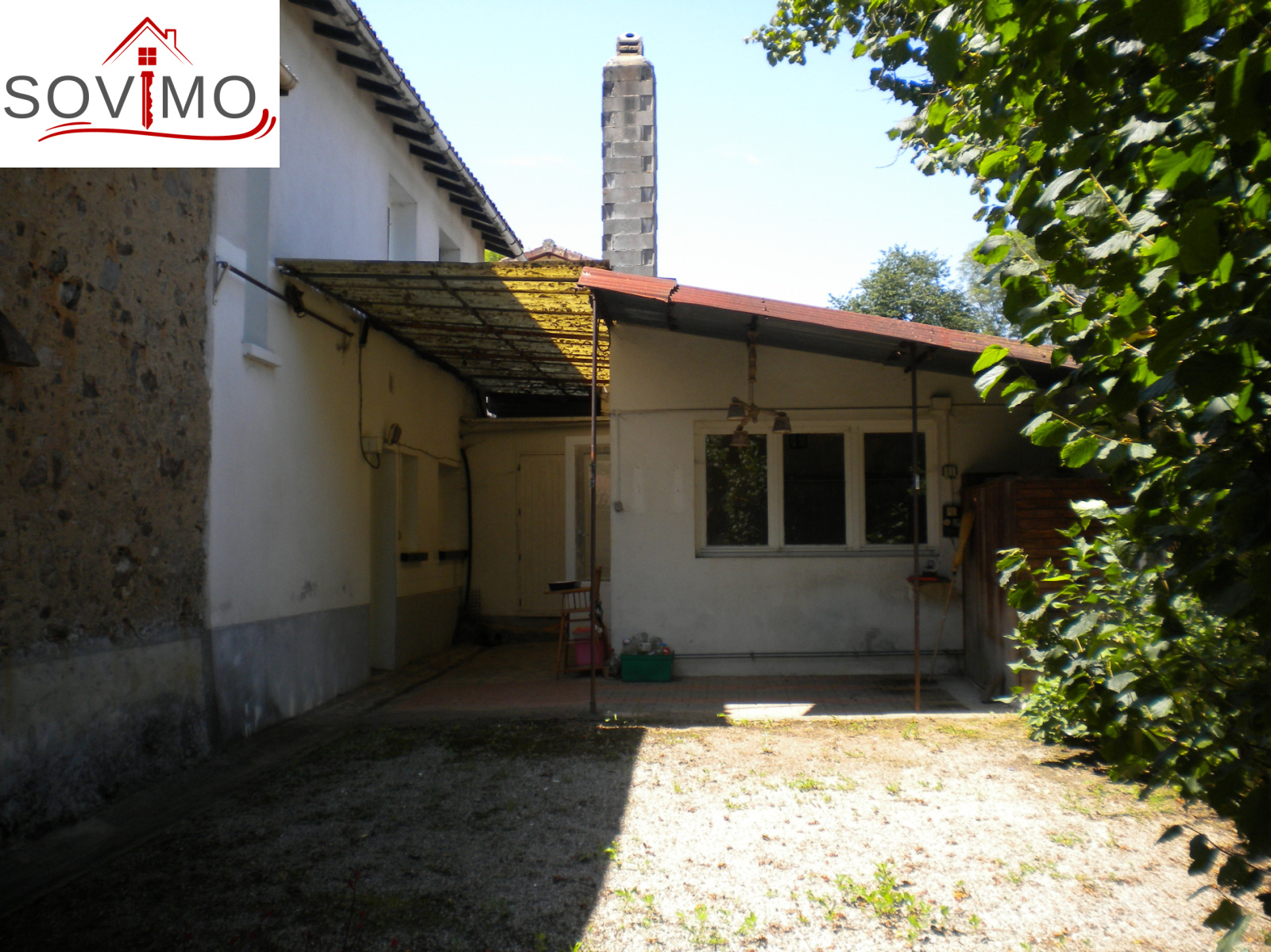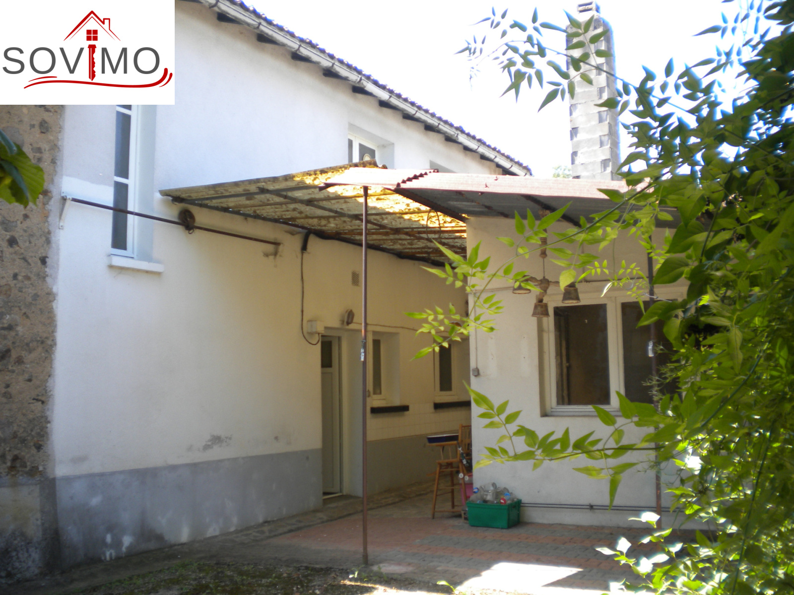 REF. 33827 : 33 000 euros H.Ag.Incl., proche Confolens, maison de campagne habitable, mitoyenne, 92 m2 env. utilisables : entrée, cuisine aménagée équipée (cheminée-insert), salon, salle de bain, wc, étage : palier, 4 chambres, wc, chauf. fuel, chaufferie, débarras, ancienne fosse septique, 2 cours attenantes devant et derrière, puits avec motopompe, garage séparé mitoyen 35 m2, le tout sur 268 m2.