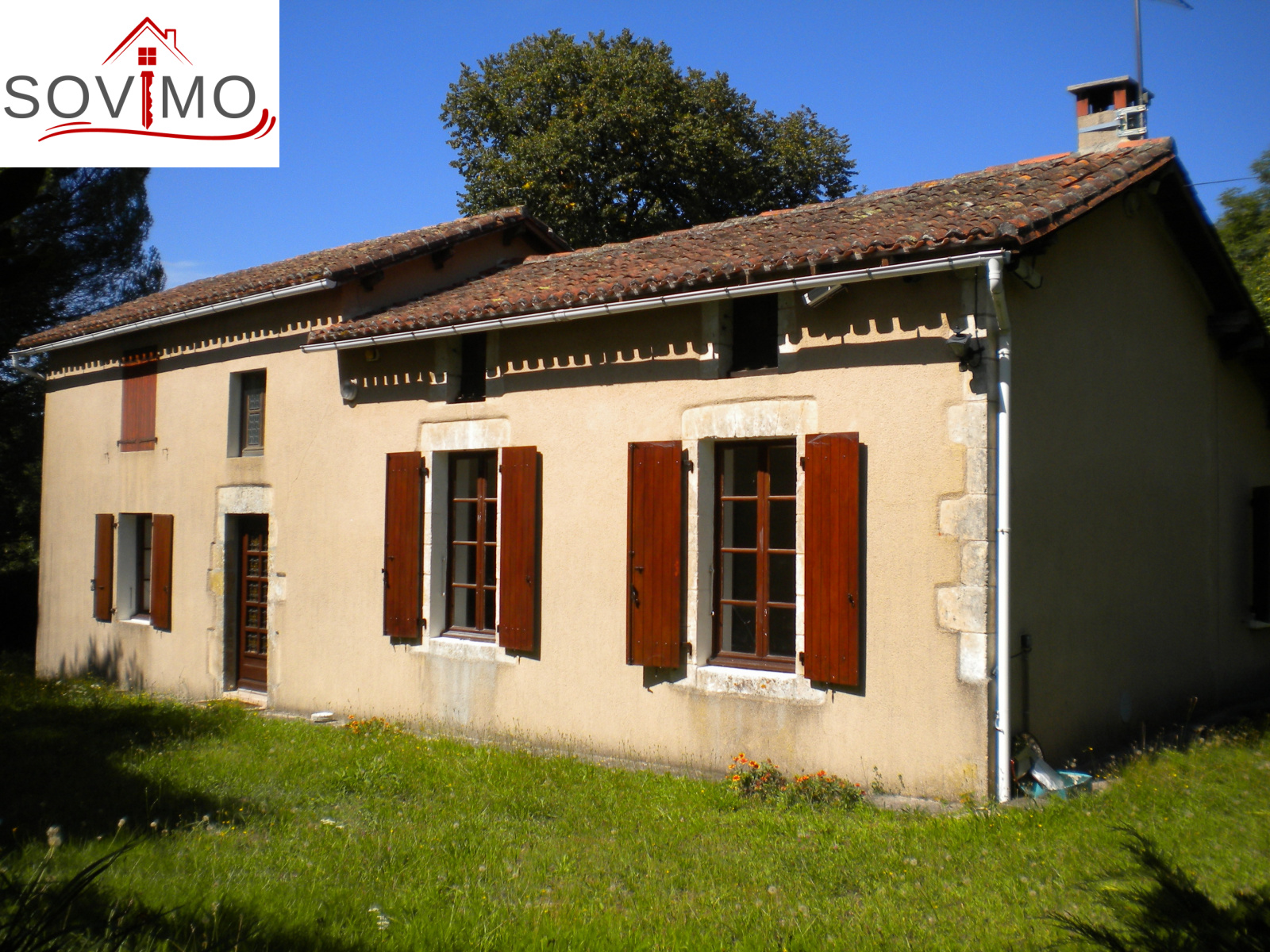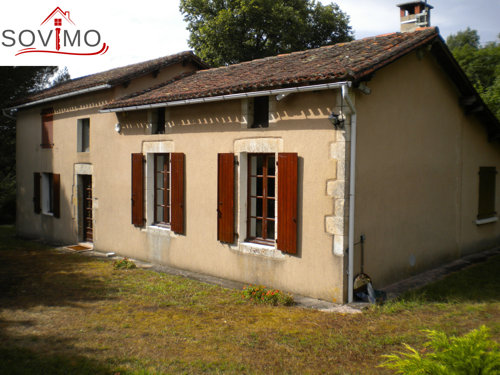 REF/33955 : 172 800 euros H.A.I, Confolens (16), proche du centre ville, tranquilité pour cette maison indépendante de 1785, tout confort, sur terrain de 1ha10 env., 106,43 m² env. utilisables : entrée, cuisine aménagée équipée, salon/salle à manger (cheminée avec insert), 2 chambres, couloir, salle d’eau, wc, buanderie, à l’étage : palier, 1 chambre, chauffage électrique, cave, garage de 20 m2, fosse toutes eaux, terrain attenant, abri de jardin et petit toit.