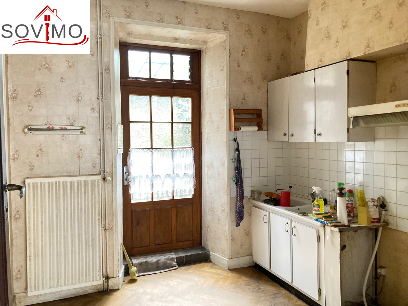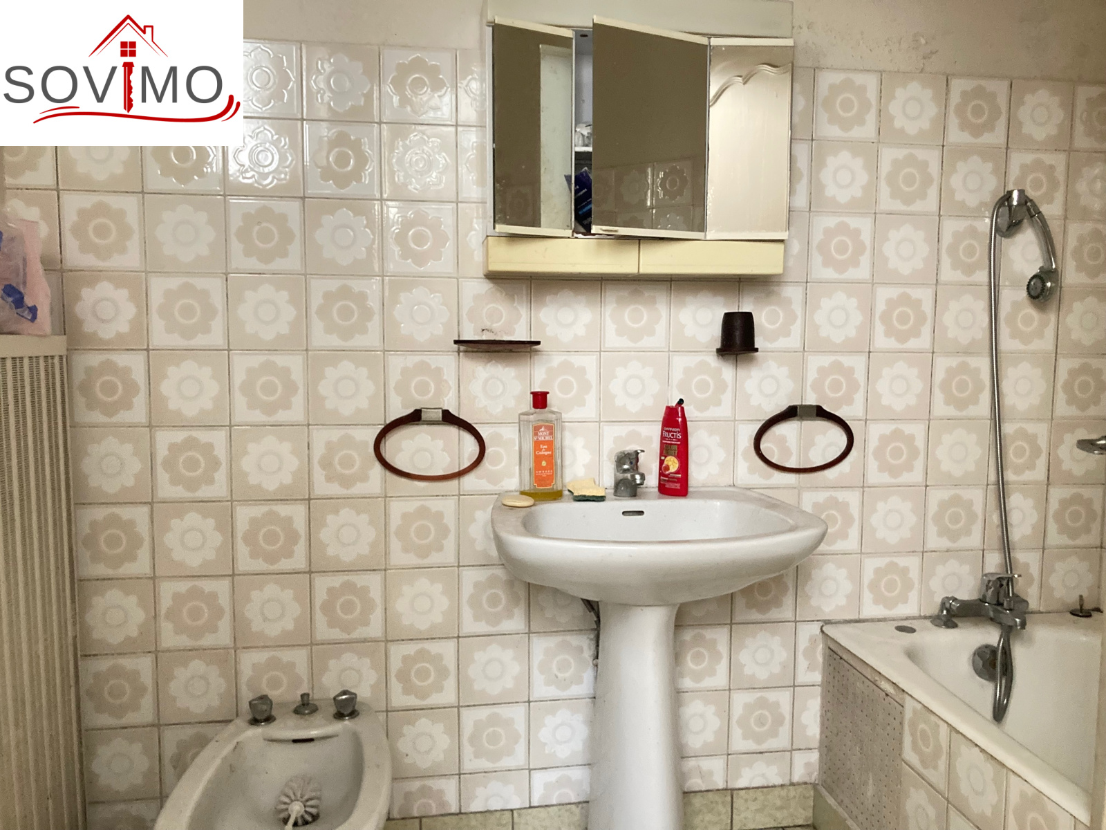 INFORMATIONS COMPLEMENTAIRES : chauffage central gaz de ville avec production d'eau chaude, cumulus électrique de 50 L, simple vitrage et persiennes métalliques, construction pierre, toiture état d'usage, tout à l'égout, état général moyen.