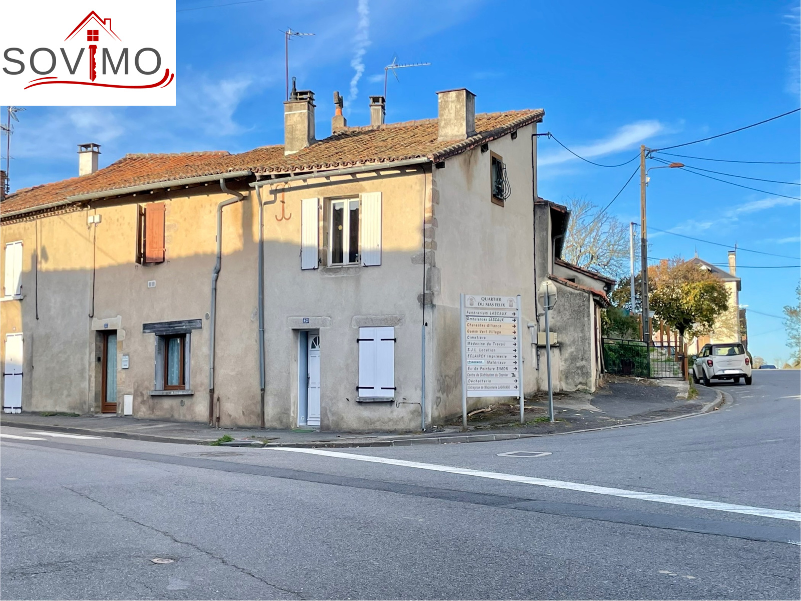 REF. 34687 : 60 500 euros HAI, CONFOLENS (16) tous commerces, proche centre ville, immeuble à usage locatif comprenant un studio et un T3 loués, au rez de chaussée : un studio de 23 m2 env. utilisables, loué 300euros/mois composé : cuisine aménagée, séjour/chambre, salle d'eau/wc, petit toit, sans extérieur. Un T3 de 64 m2 env., loué 500 euros/mois, composé au rez de chaussé : cuisine, dégagement, séjour, salle de bain,wc, dégagement, 1 chambre, à l'étage mansardé : 1 pièce + grenier de 51 m2. Chauffage électrique, assainissement collectif. débarras, préau, jardin attenant clos, le tout sur 367 m2.