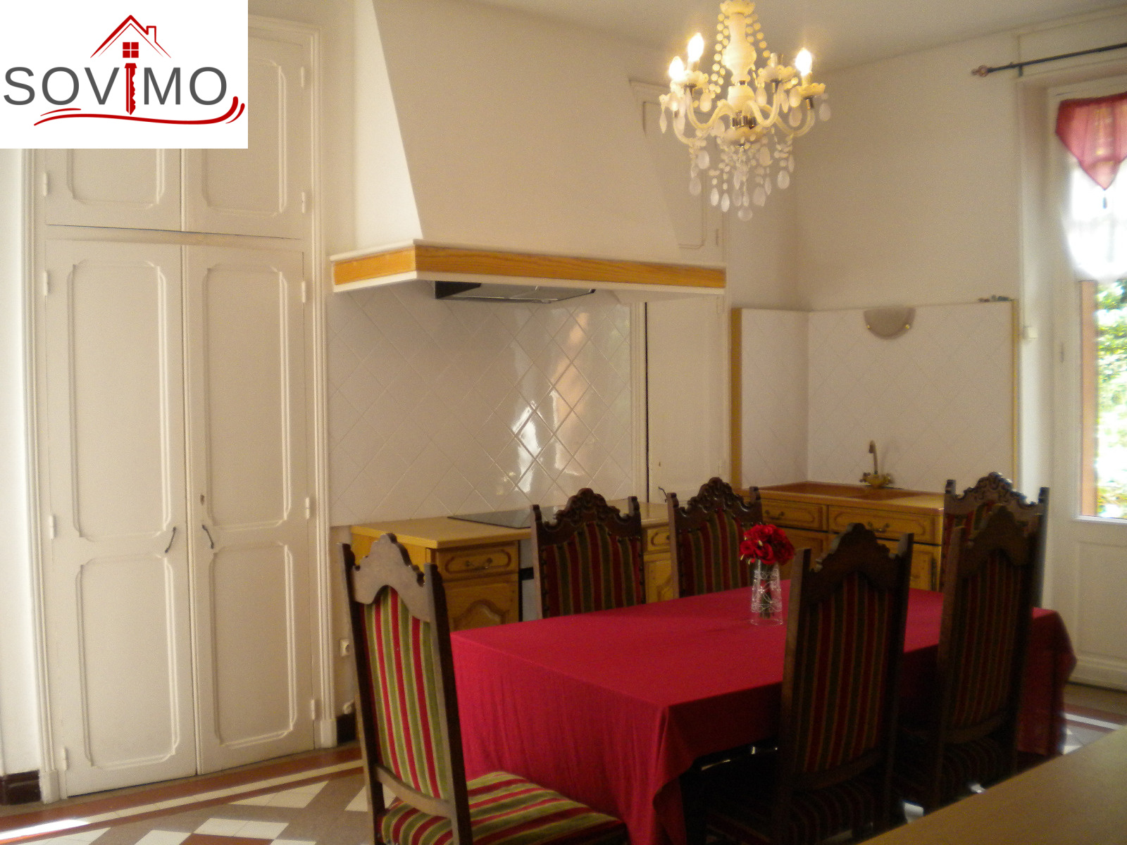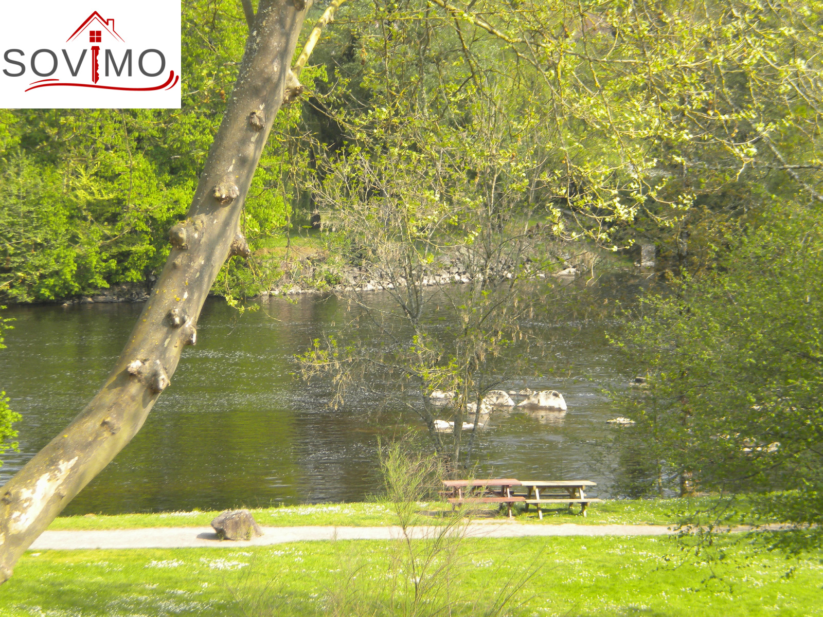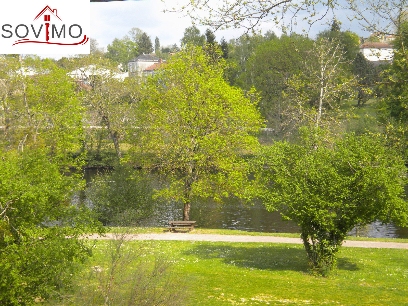 REF. 33525 : 265 000 euros Ag.incl, centre Confolens (16), belle vue sur la rivière, jolie maison de caractere de 1935, 135 m2 env. utilisables : Hall, cuisine amé.équip., salon, séjour, wc, étage : palier, 3 chambres dont 1 avec dressing et 1 avec balcon, sd'eau/wc, grenier, chauf. central gaz, sous sol : garage 19 m2, cellier/buanderie 16 m2, chaufferie, terrasse 23 m2, tout à l'égout, terrain attenant avec puits, le tout sur 910 m2.