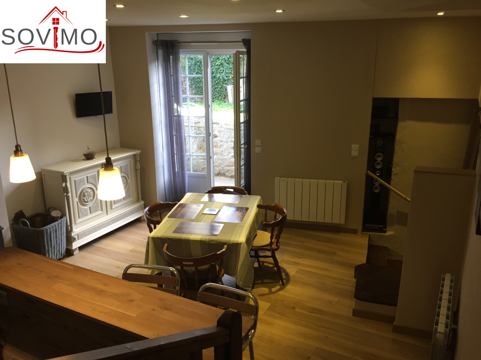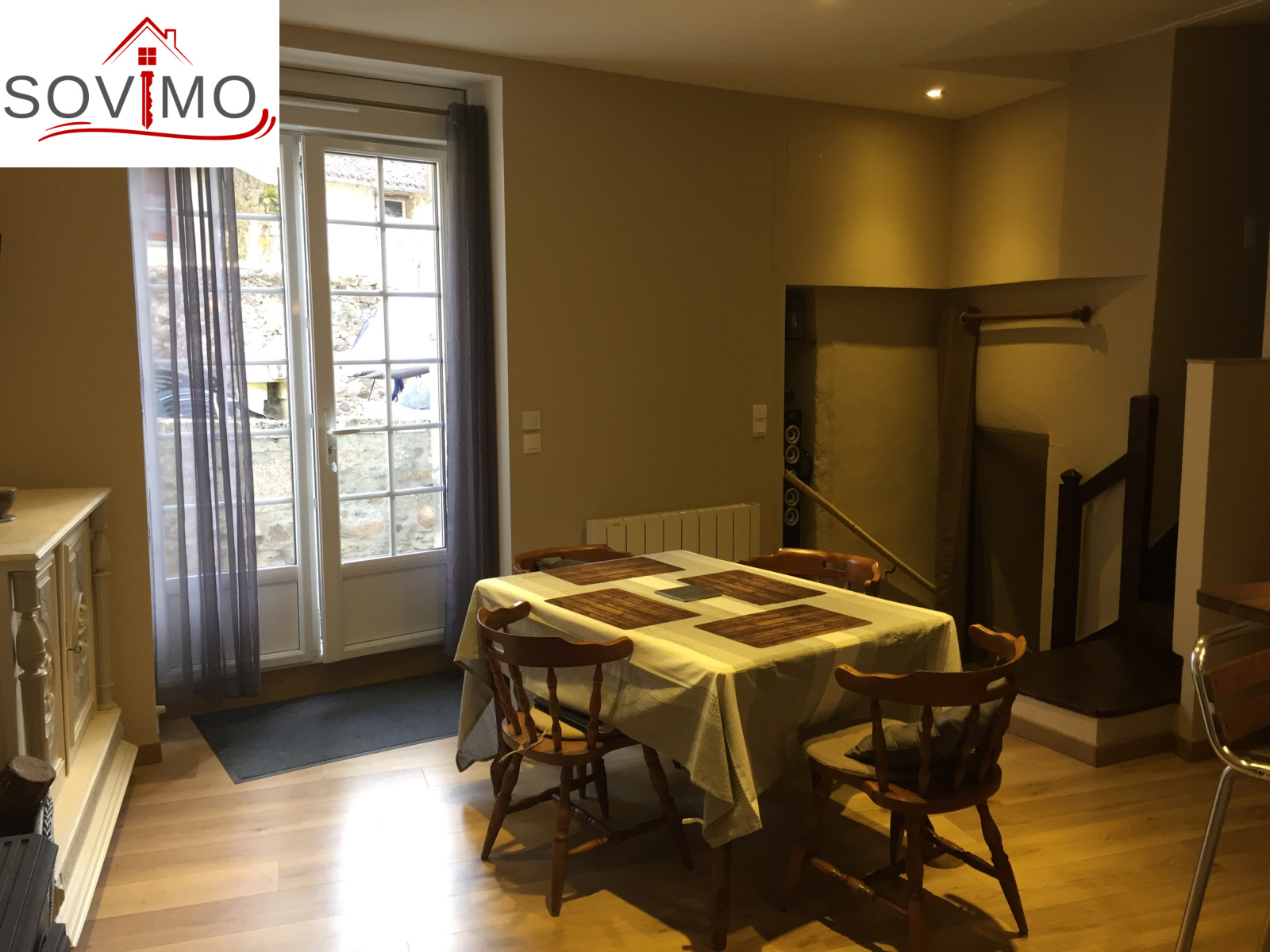 REF.33936 : 133 920 euros H.A.I., A DEBATTRE, centre ville, sur les hauteurs de CONFOLENS (16), jolie maison entiérement restaurée, 120 m2 env. utilisables : niveau 1 : salon bureau, débarras, rez de jardin ou niveau 2 : cuisine amé.équipée/séjour (poêle à bois), 1 chambre avec dressing, salle d'eau, cabinet toilette, niveau 3 : entrée, couloir, 2 chambres grenier, chauf.électrique, cave voutée sous jardin, tout à l'égout, terrain attenant avec parking, le tout sur 435 m2.