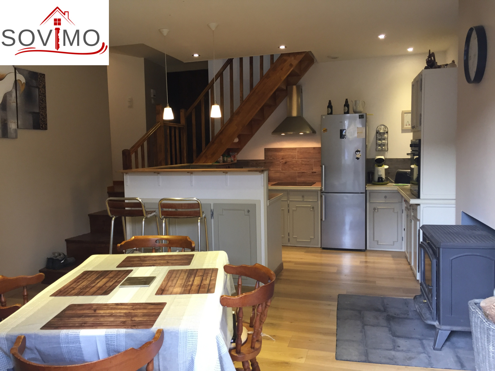 INFORMATIONS COMPLEMENTAIRES : chauffage électrique + poele à bois, cumulus électrique de 200 L, double vitrage alu et PVC, volets roulants électrique + volets bois, VMC, interphone, construction pierre, toiture tuile bon état, tout à l'égout.