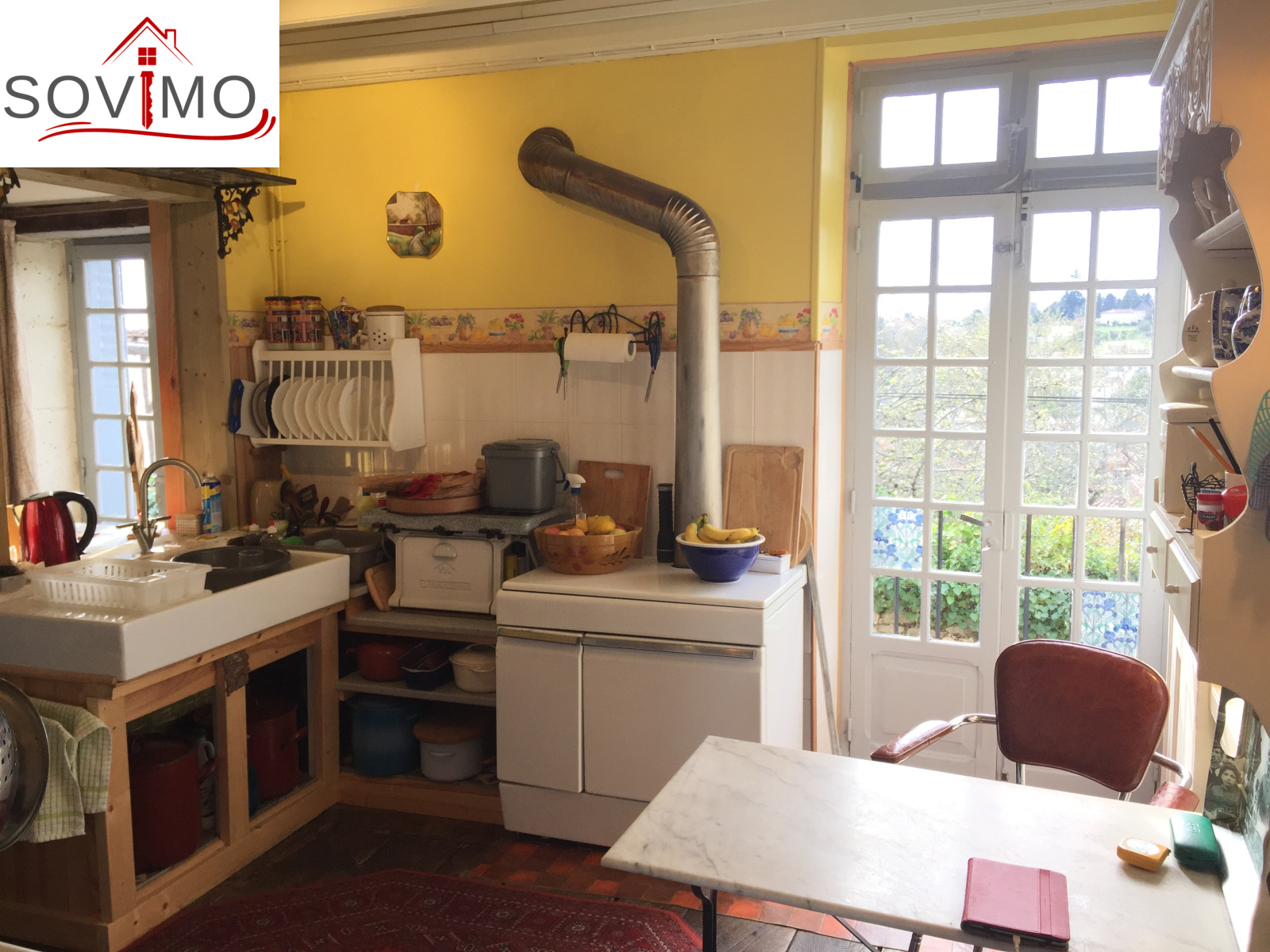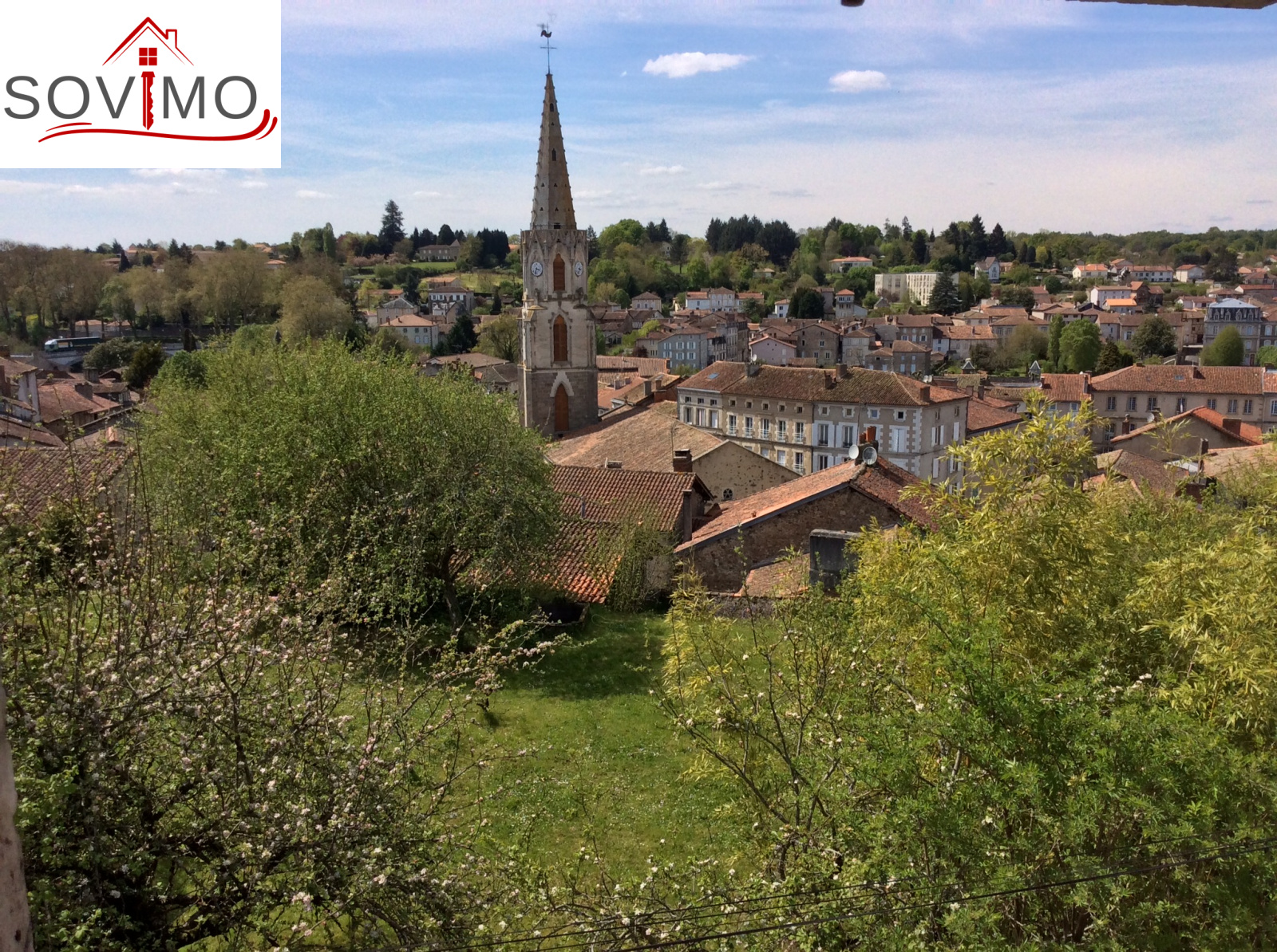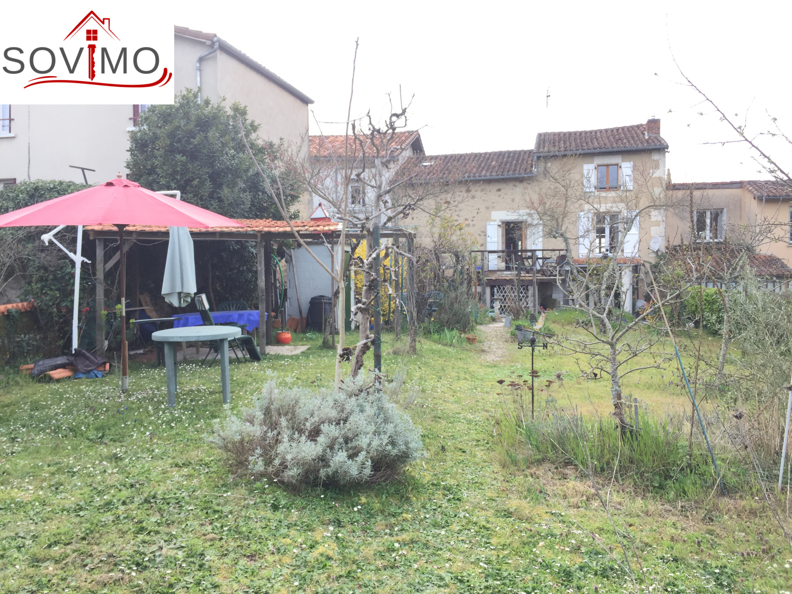 REF. 34013 : 77000 euros H.A.I, Confolens, à quelques pas du centre ville, avec une jolie vue, agréable maison mitoyenne tout confort à usage d'habitation, 130 m2 env. utilisables : entrée, salle d'eau/wc, étage 1 : cuisine amé. (cuisinière bois), séjour, salon, dégagement (balcon), salle de bain/wc, étage 2 : palier, 2 chambres, lingerie, dressing, salle d'eau/wc, chauf. fuel, tout à l'égout, garage de 29 m2, cellier de 23 m2, jardin à l'arrière avec puits et vue sur rivière, le tout sur 424 m2.