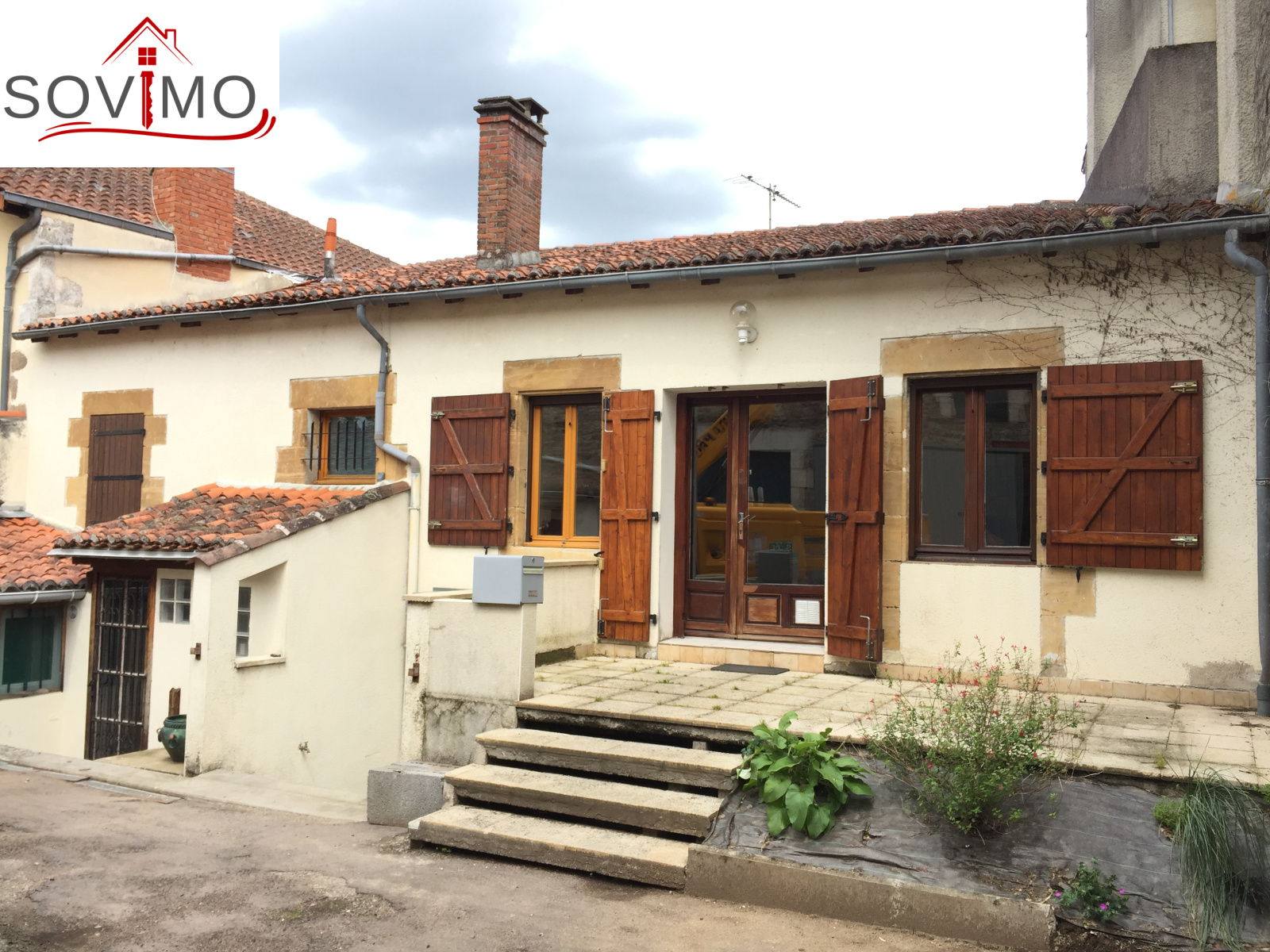 REF. 34052 : 73 700 euros H.A.I., Confolens (16), Centre Ville, Spacieuse maison d'habitation, TOUT CONFORT, 220 m2 env. utilisables, sur 3 niveaux avec cour/parking et terrasse ; Rez-de-cour : cuisine amé./séjour/salon (cheminée avec insert), 4 grandes chambres dont 1 avec salle de bain, 2 dressings, salle d'eau, 2 wc ; Etage : 2 greniers utilisables, dont un mansardé; En dessous : grand local ouvert à tout usage privé ou commercial avec sanitaire et petite cuisine. Double vitrage isophonique ! Tout à l'égout, petit toit, jardin séparé de 162 m2 avec garage, le tout sur 516 m2.