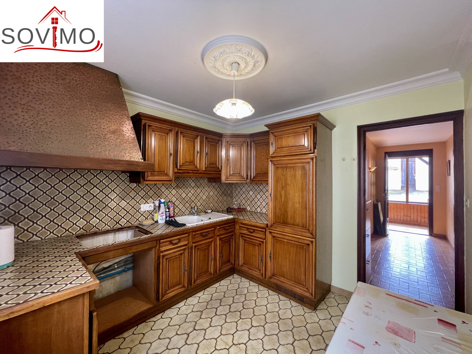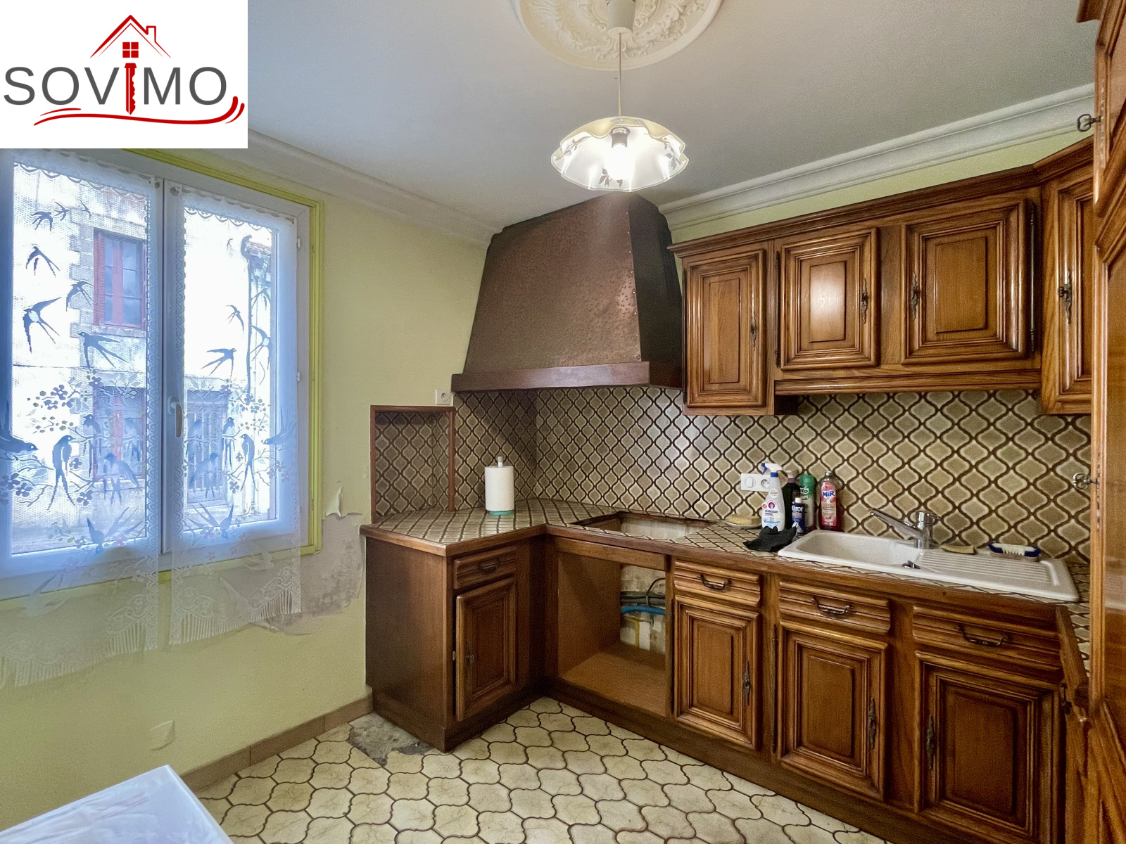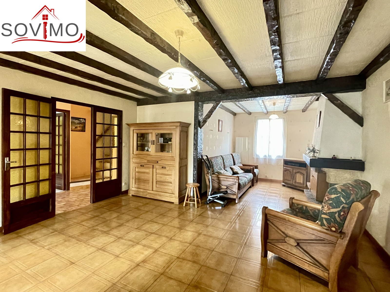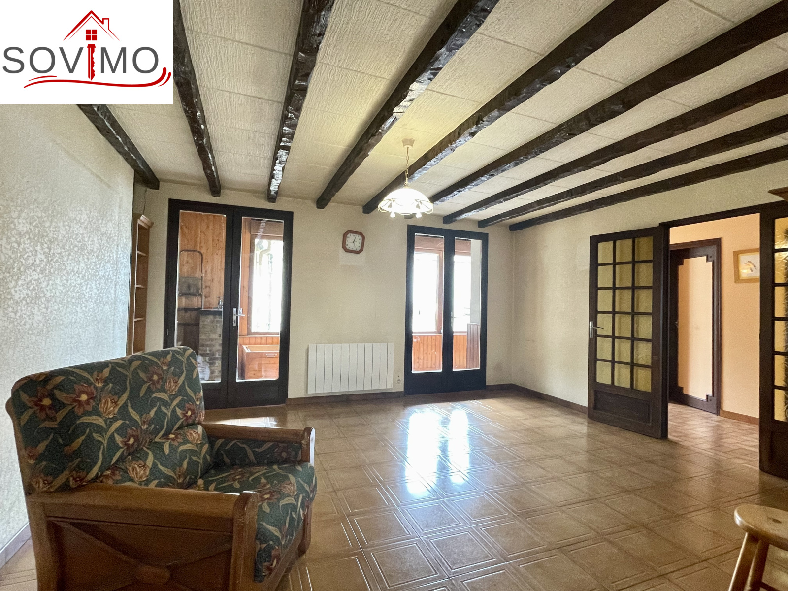 REF. 34613 : 113 400 euros H.A.I, Confolens (16), tous commerces, en bord de route, sans vis à vis, maison de ville mitoyenne, tout confort, en partie rénovée, à usage d'habitation, 139 m2 env. utilisables, composée au rez de chaussée : Véranda de 18 m2, entrée, cuisine, salon/séjour (cheminée), cabinet de toilette, 1 chambre, dressing, à l'étage : palier, 4 chambres, salle d'eau, wc, chauffage électrique, assainissement collectif CONFORME. Grand garage indépendant de 145 m2 avec cabinet toilette, petit toit de 15 m2, courette attenante, le tout sur 444 m2.