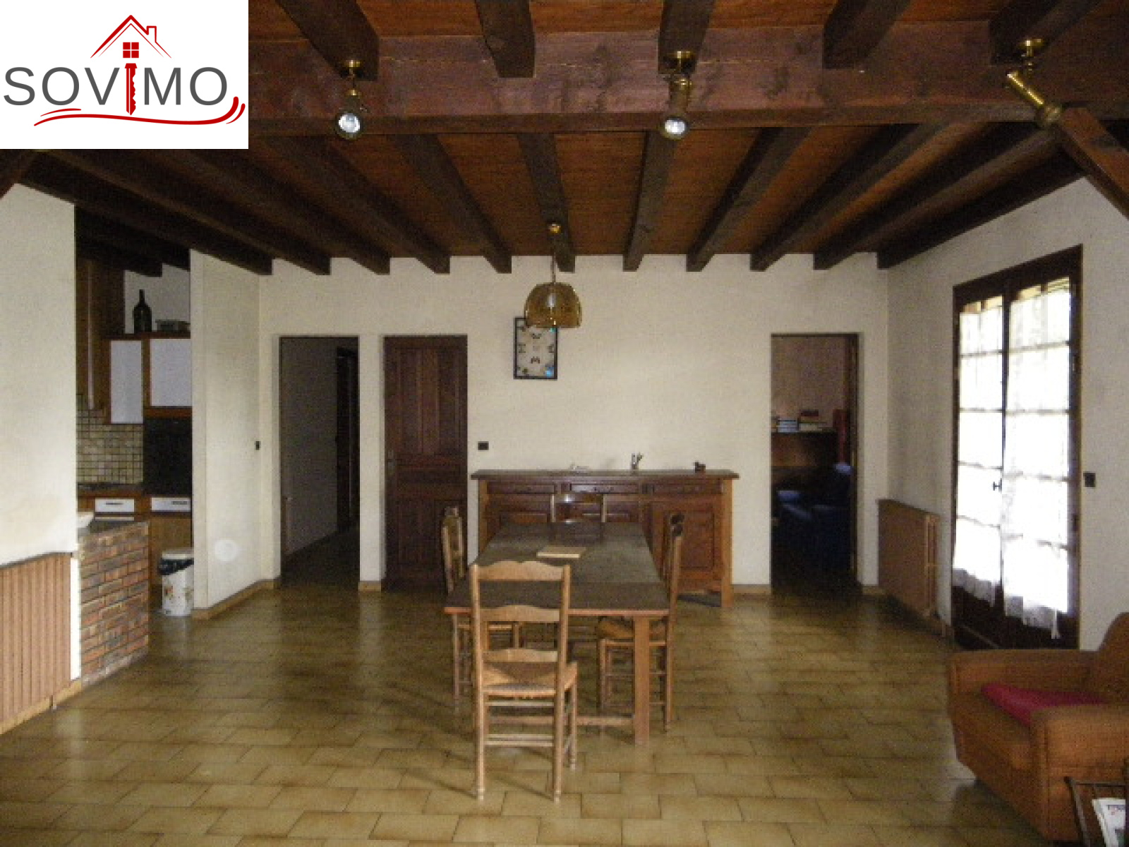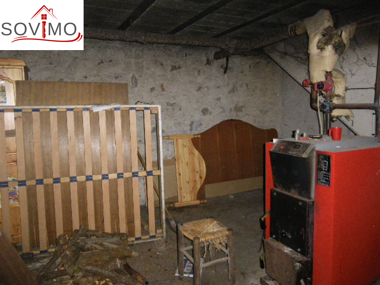 INFORMATIONS COMPLEMENTAIRES : chauffage central bois, cumulus électrique 200 L, cloisons brico-plâtre, 1/2 sous sol : garage 36 m2, chaufferie, cave, terrasse, fosse septique. joli cadre, simple vitrage bois et volets bois. Dans la cuisine meubles hauts et bas, hottte de cuisson, four, lave vaisselle état d'usage; Salle de bains : baignoire, 2 lavabos, bidet, placard.(placard dans 3 chambres également). Maison construite en parpaing et en pierres.