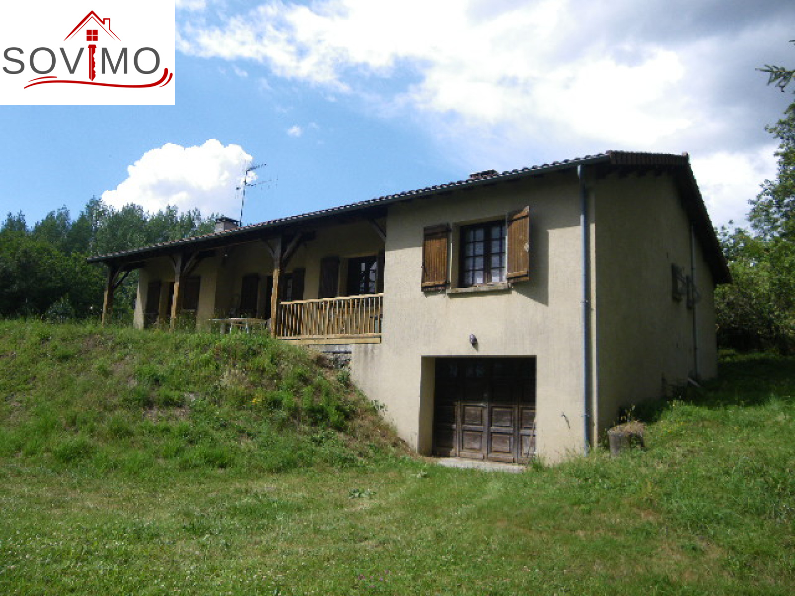 REF. 33430 : 73 400 euros Ag. incl., secteur Confolens (16), dans un joli cadre, en campagne, pavillon indépendant sur 1/2 sous sol de 1985,130 m2 env. utilisables : entrée/buanderie, cuisine amé.équip., salon/séjour, 4 chambres, sdb, 2wc, chauf.central bois, sous sol : garage 36 m2, chaufferie, cave, terrasse, fosse septique, terrain autour proche ruisseau, le tout sur 1515 m2.