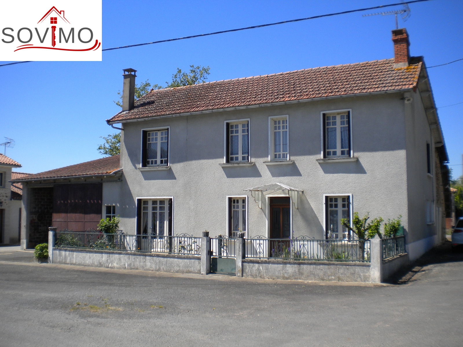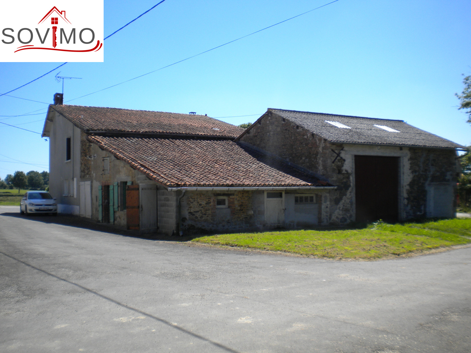 REF. 33662 : 71 200 euros Ag.Incl., proche Confolens (16), dans un hameau, maison de campagne avec dépendances + batiment séparé avec terrain, maison 140 m2 env. utilisables : entrée, cuisine, séjour, 1 chambre, sdb, wc, étage : palier, 4 chambres, chauf. fuel, grenier aménageable, fosse septique, ancienne maison avec 3 pièces et bergerie, petit garage18 m2, chaufferie 90 m2 avec grenier, cour attenante, + batiment séparé indépendant : grange 100 m2, 2 garages 80 m2 avec terrain autour de 6080 m2, le tout sur 6 501 m2.