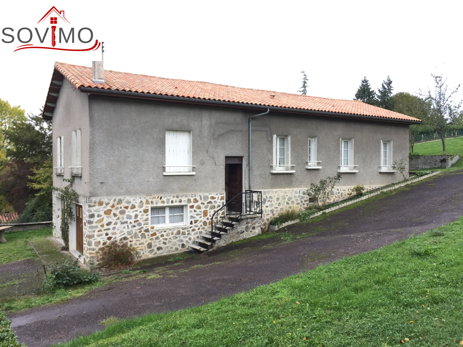 REF. 34098 : 88 000 euros H.A.I, Confolens (16), proche centre ville, pavillon indépendant sur sous sol semi enterré à usage d'habitation, 110 m2 env. utilisables : étage : entrée, cuisine, séjour, salon (cheminée), bureau, salle d'eau, wc, 4 chambres, chauf. gaz de ville, sous sol semi enterré : garage/cave 90 m2, chaufferie 13 m2, tout à l'égout, terrain attenant avec hangar fermé de 30 m2, le tout sur 2610 m2.