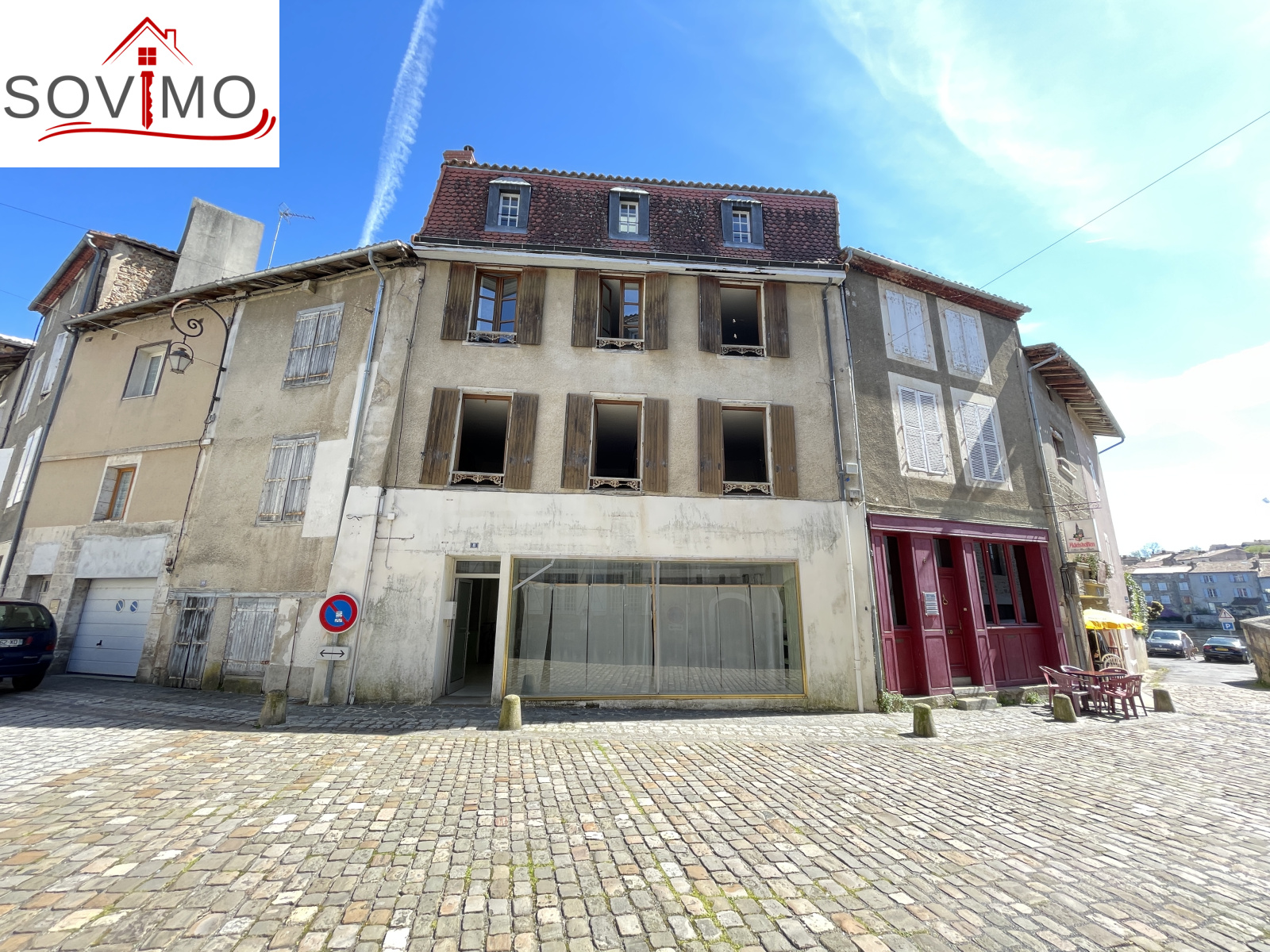 REF. 34489 : 94 600 euros H.A.I, CONFOLENS (16), tous commerces, au centre ville, dans un vieux quartier, jolie maison restaurée meublée avec charme et originalité, 202 m2 env. utilisables composée au rez de chaussée : local commercial de 66 m2, au 1er étage : palier, cuisine, séjour/salon (poêle à bois), bureau, 1 chambre, dressing, salle d'eau/wc, au 2nd étage : palier, cuisine,séjour/salon (poêle à bois), couloir, 1 chambre, salle d'eau, wc, cabinet de toilette, au 3ème étage : cuisine/séjour/salon (poêle à bois), 1 chambre, salle d'eau/wc, 2 remises. Tout à l'égout.