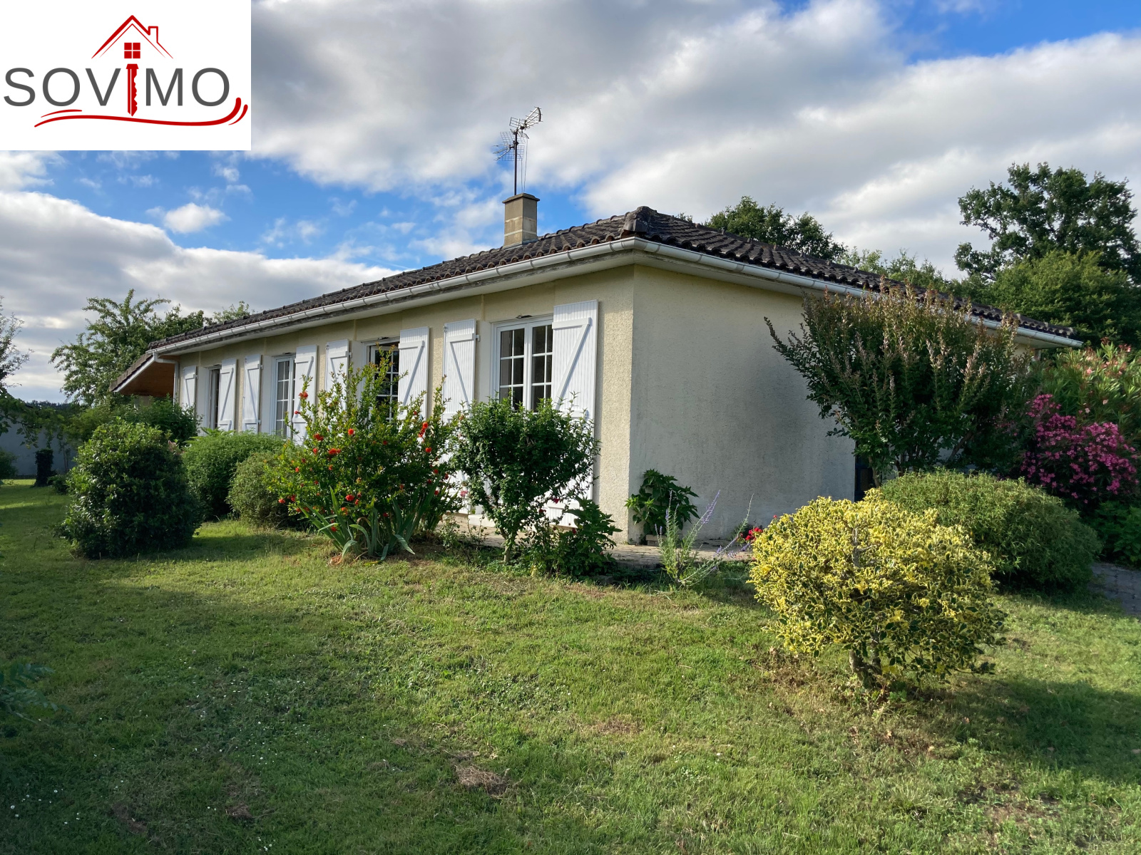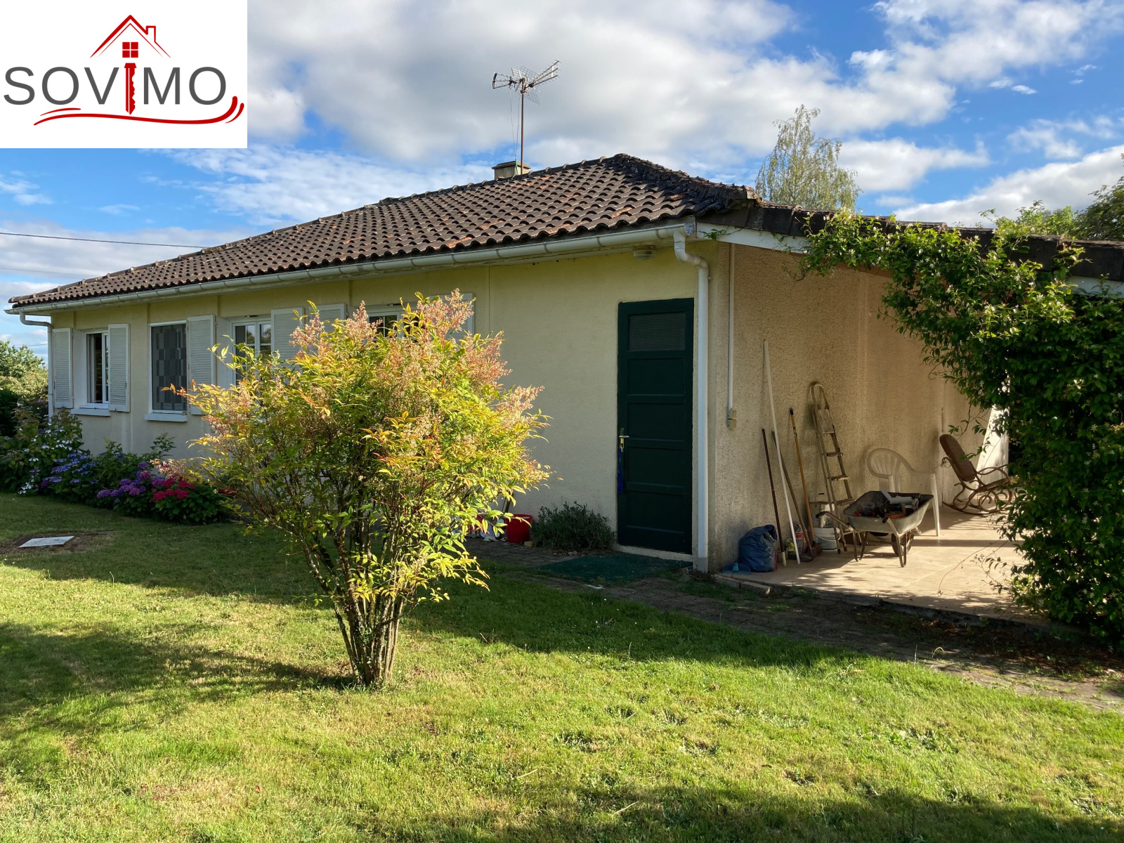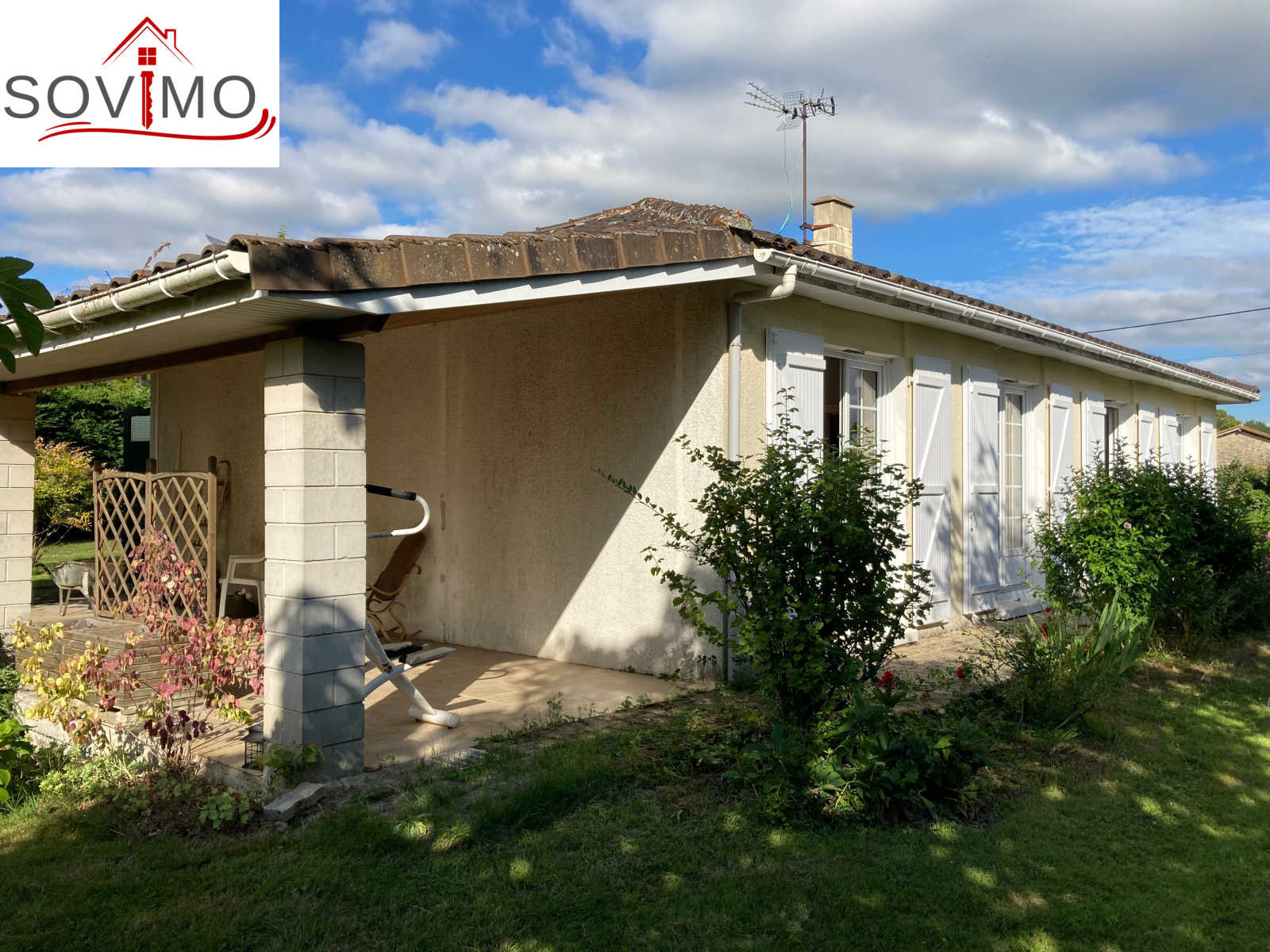 REF. 34152 : 99 000 euros H.A.I, St Coutant (16), 4kms de champagne Mouton, à la campagne, dans un cadre verdoyant, joli plain pied indépendant de 1976, à usage d'habitation, 106 m2 env. utilisables : entrée, buanderie, cuisine aménagée équipée, salon/séjour (cheminée), couloir, 3 chambres, salle d'eau, wc, chauf. électrique, ancienne fosse septique, cave, terrasse couverte de 30 m2, serre, garage indépendant de 39 m2 avec grenier et appenti, terrain attenant boisé, le tout sur 1730 m2.