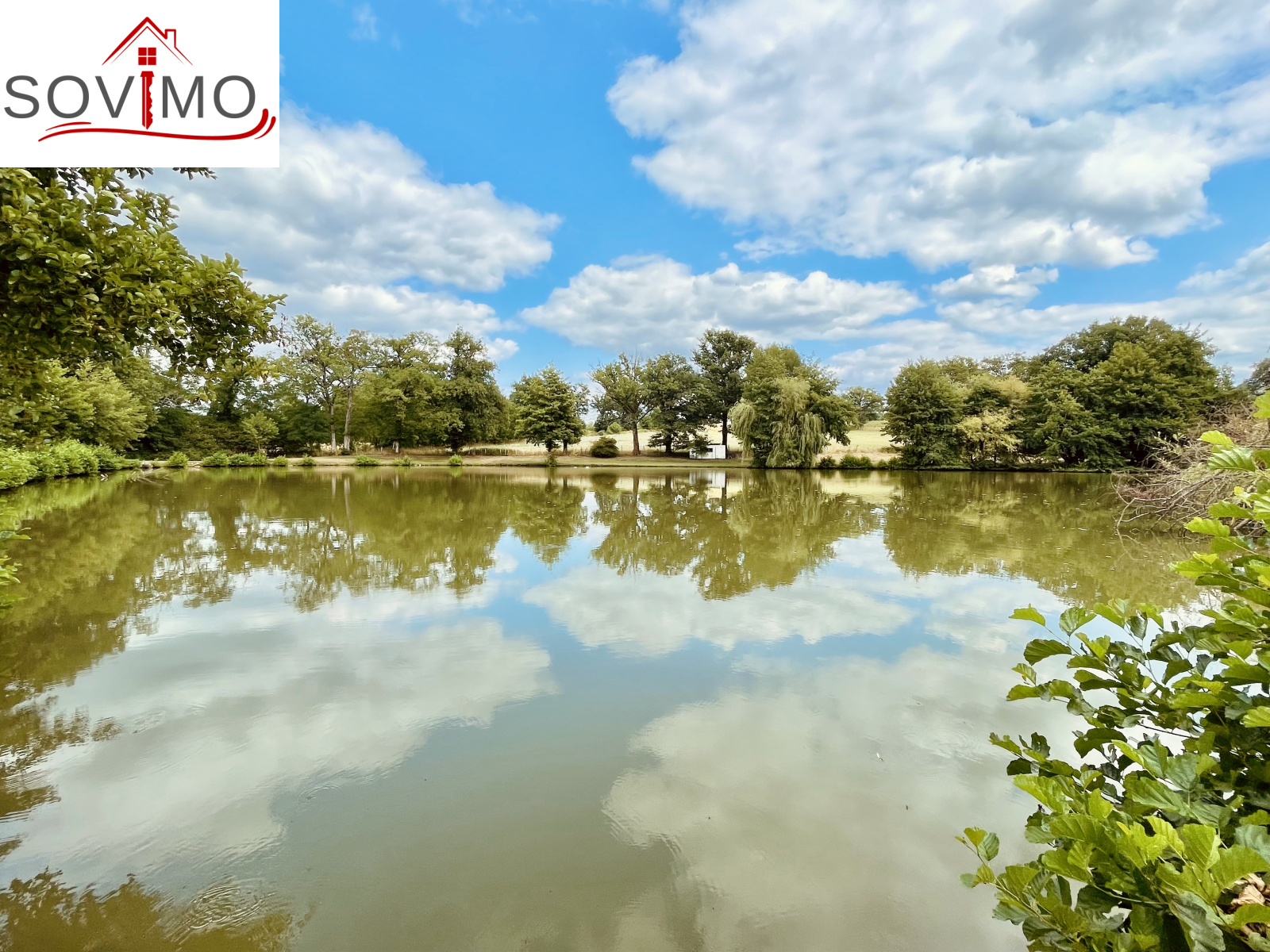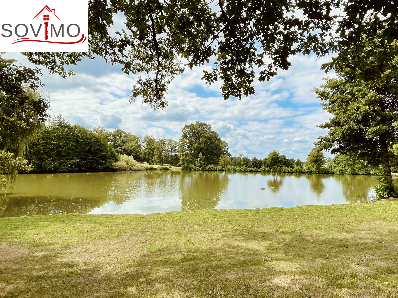 REF. 34866 : 66 000 euros HAI, St Junien (87), EXCLUSIVITÉ !, à 6 kms de tous commerces, en campagne, à l'abri des regards, bel étang de loisirs de 6650 m2 avec parcelle non constructible de 2ha 70, en eau libre par dérivation de ruisseau + sources, cadre arboré et accès facile, empoissonné et vidangé en 2020.