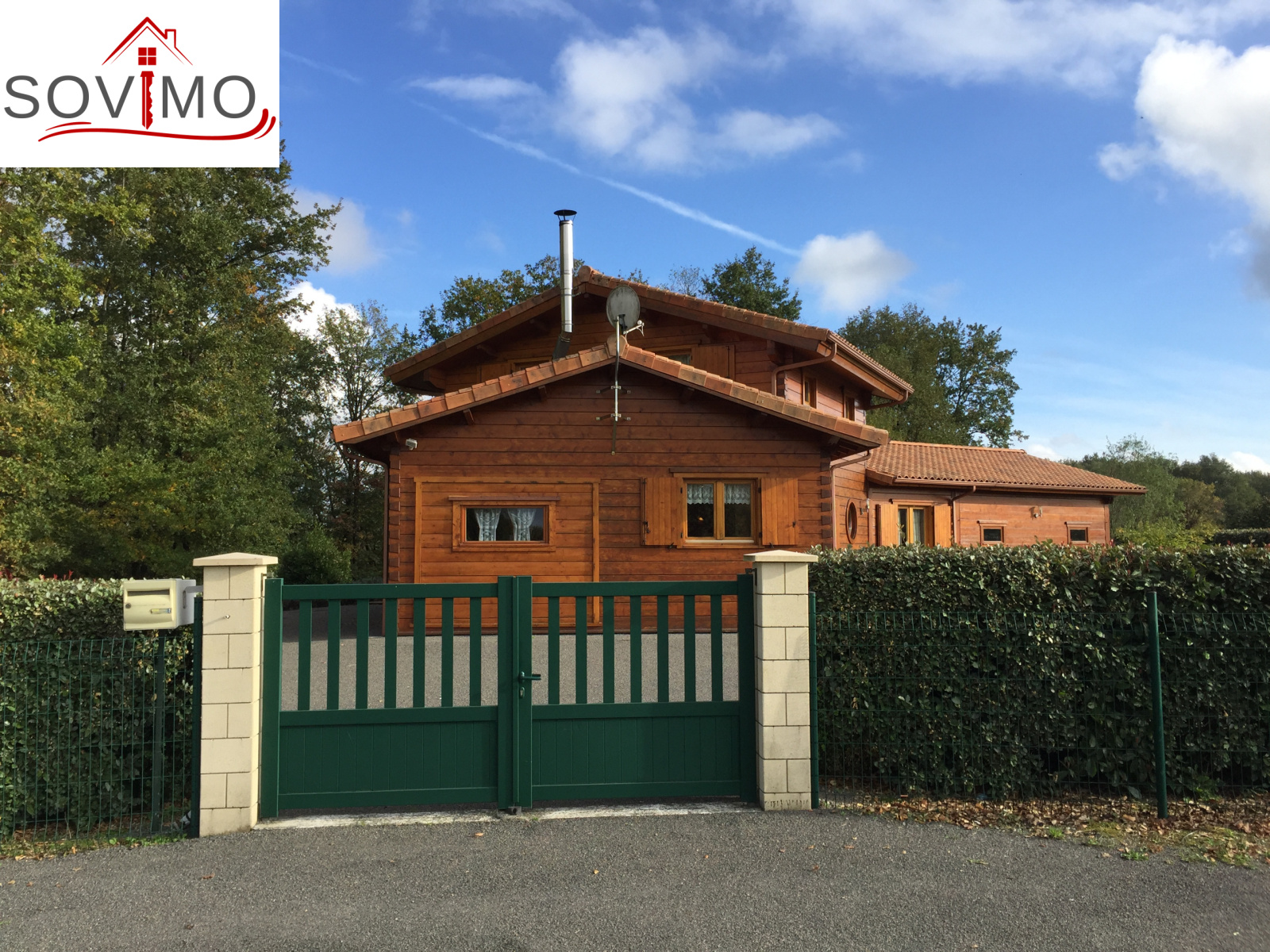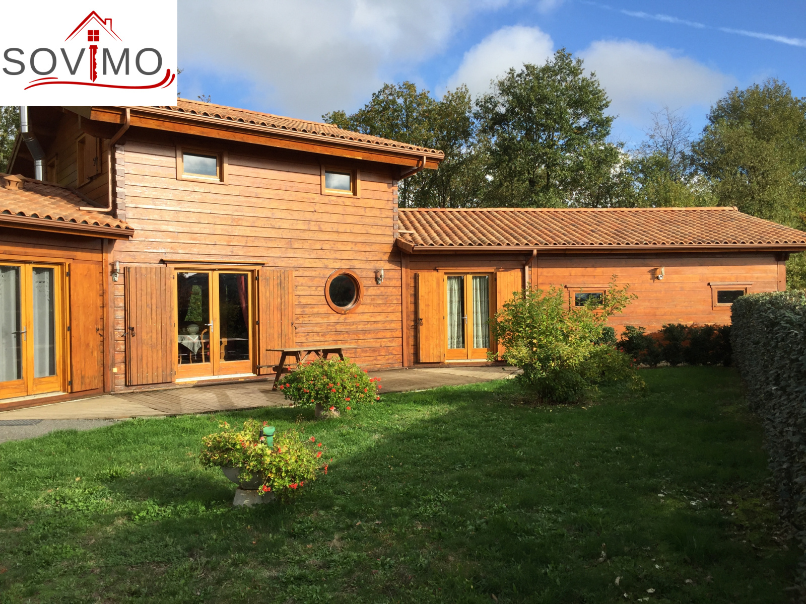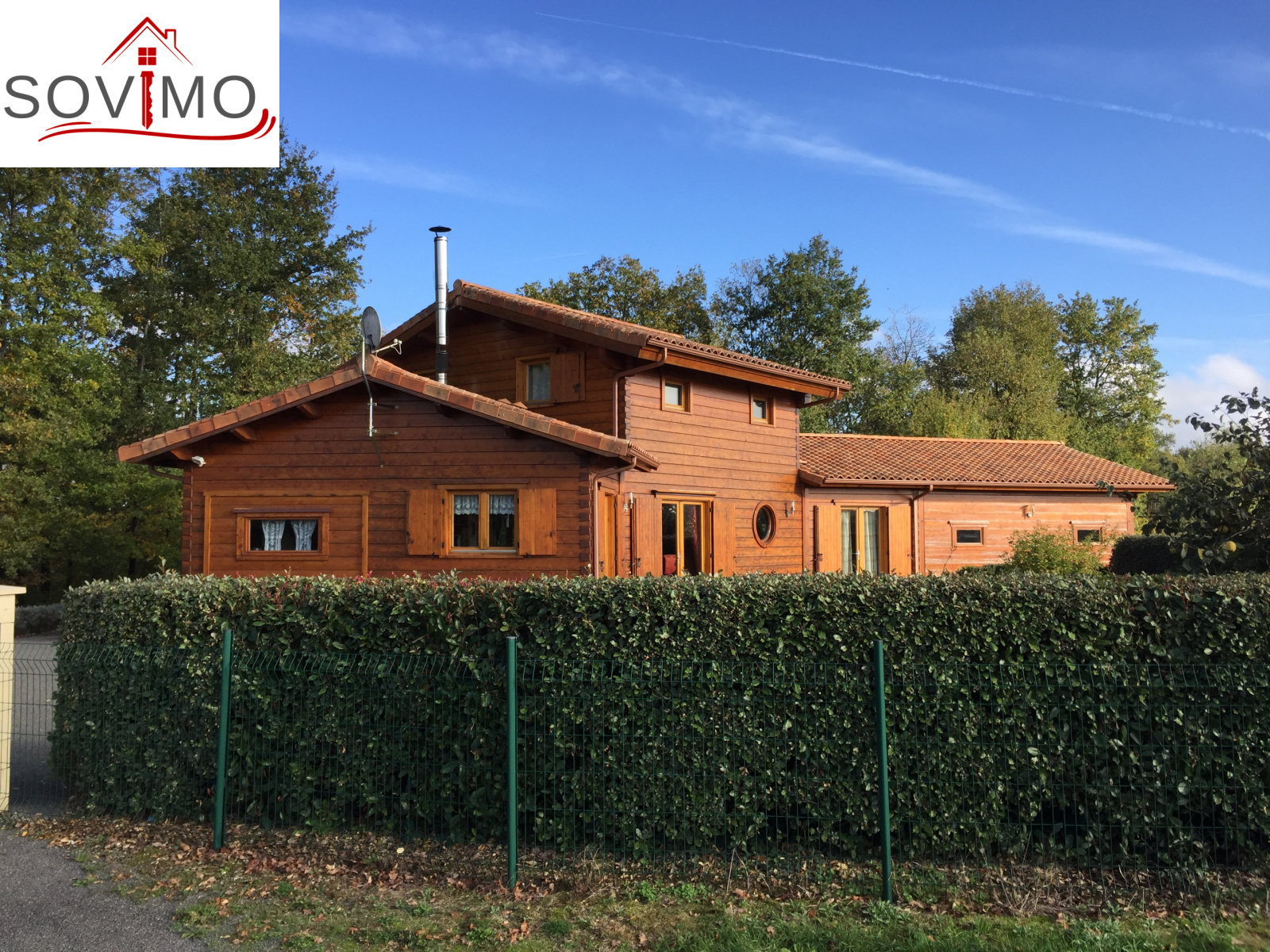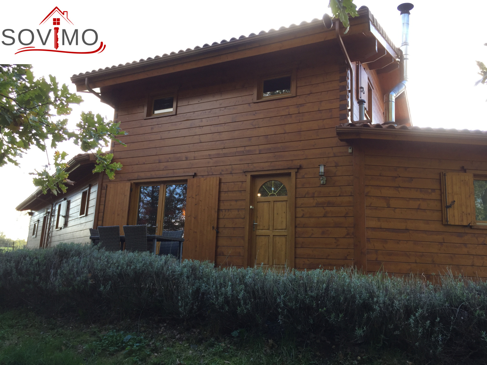 REF.33981 : 216 000 euros H.Ag.Incl., St Laurent de Ceris (16) à 19.6 km de Confolens, en campagne, maison atypique en bois de 2009 sur 1ha 15 env., 140 m2 env. utilisables : cuisine amé.équipée, arrière cuisine salon/séjour (poele à bois compact), dégagement, 1 chambre, salle de bain, cabinet de toilette, à l'étage : palier/bureau, 2 chambres, chauf.électrique, fosse toutes eaux, terrasse en bois, garage double de 38 m2 avec atelier, terrain attenant avec bois et abri de jardin.