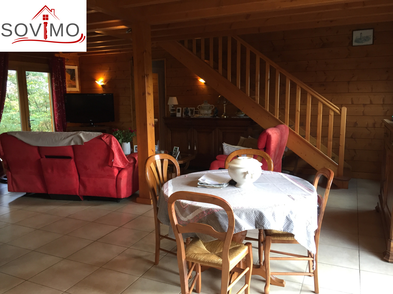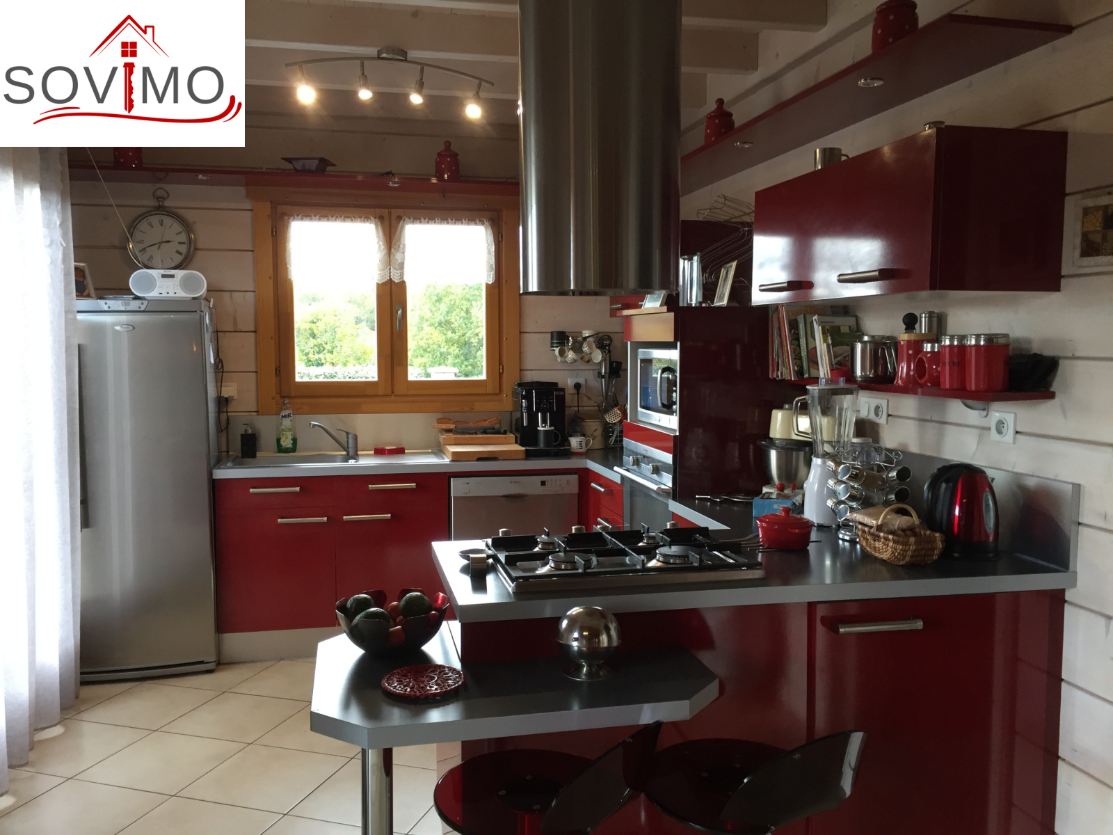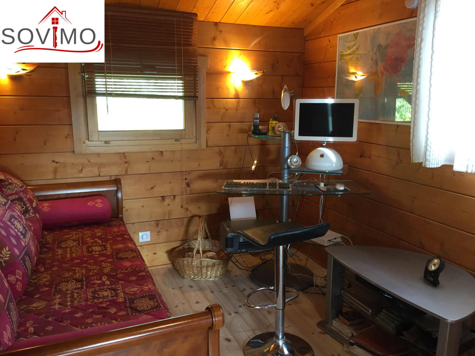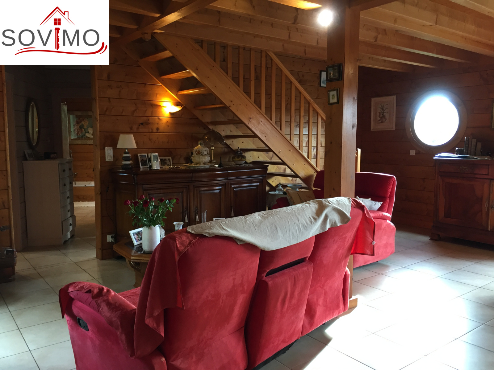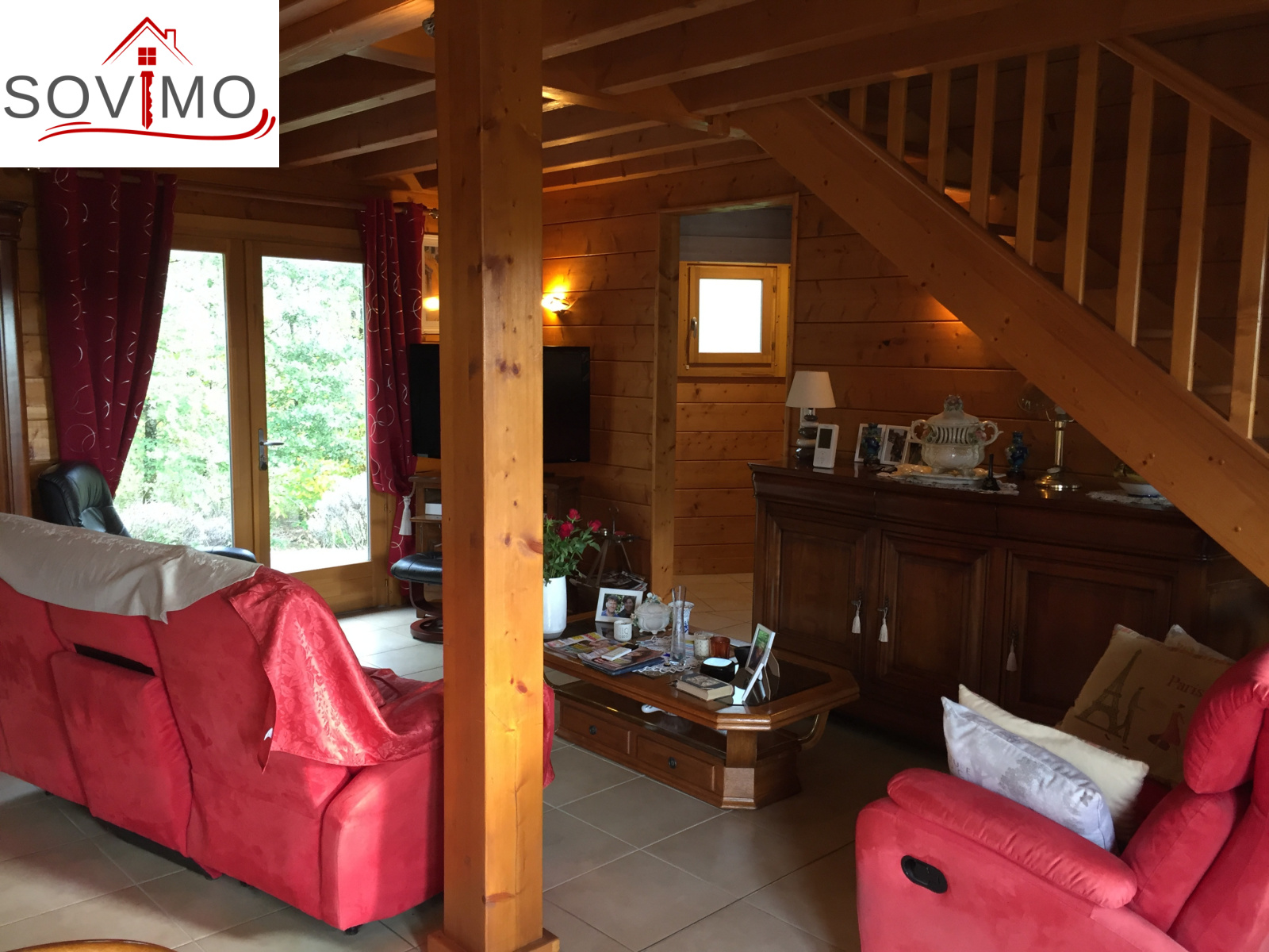 REF.33981 : 216 000 euros H.Ag.Incl., St Laurent de Ceris (16) à 19.6 km de Confolens, en campagne, maison atypique en bois de 2009 sur 1ha 15 env., 140 m2 env. utilisables : cuisine amé.équipée, arrière cuisine salon/séjour (poele à bois compact), dégagement, 1 chambre, salle de bain, cabinet de toilette, à l'étage : palier/bureau, 2 chambres, chauf.électrique, fosse toutes eaux, terrasse en bois, garage double de 38 m2 avec atelier, terrain attenant avec bois et abri de jardin.