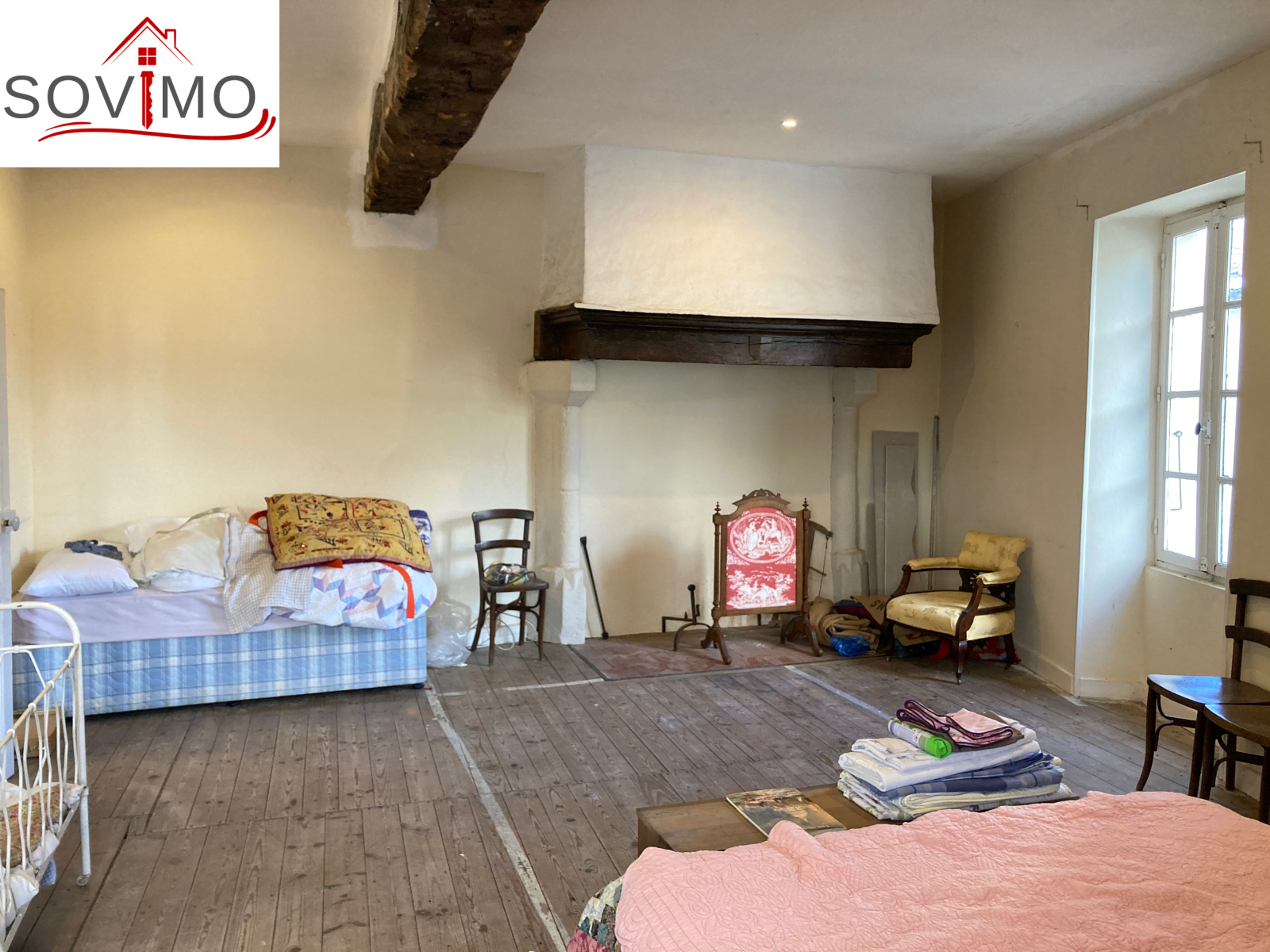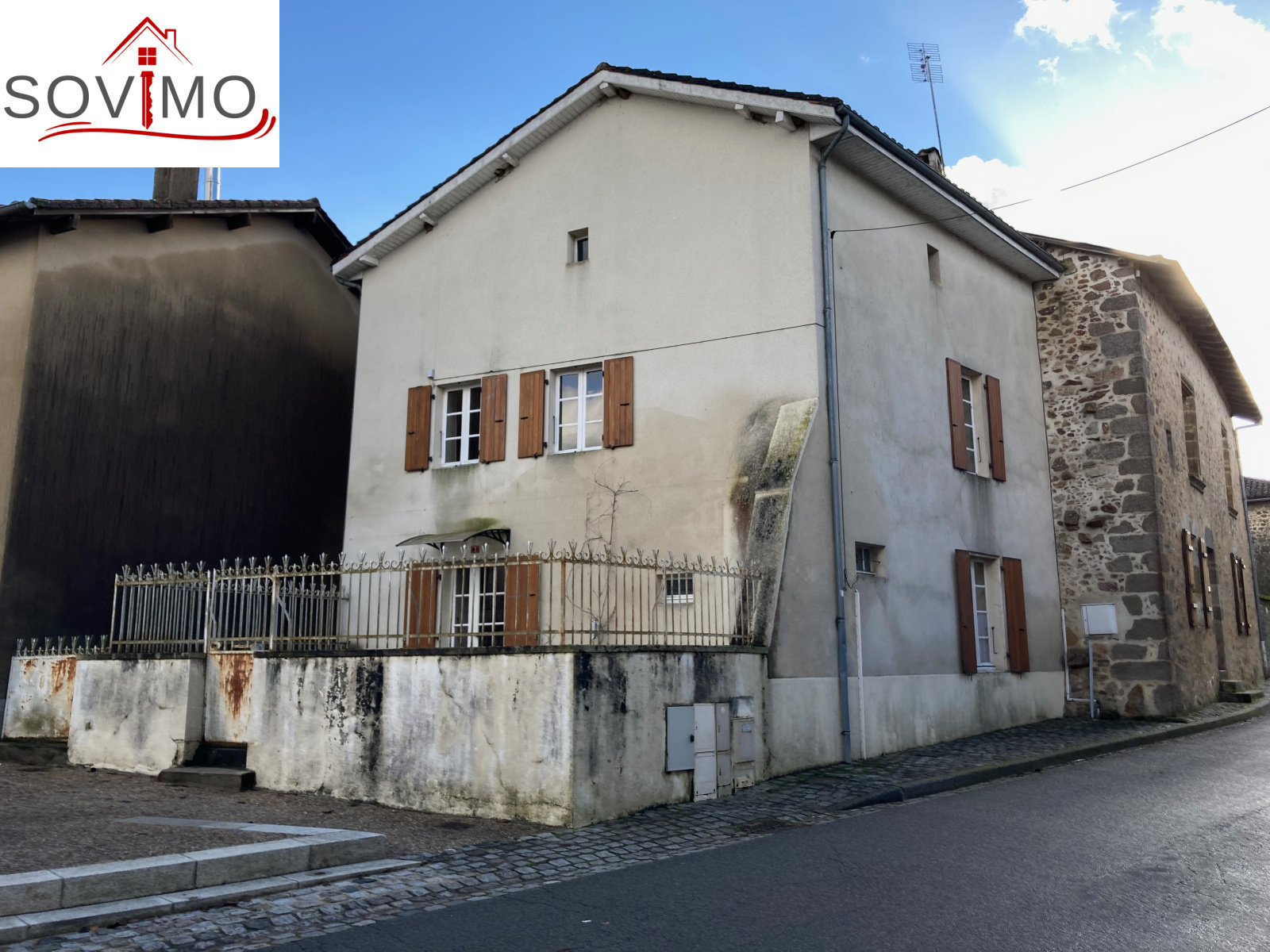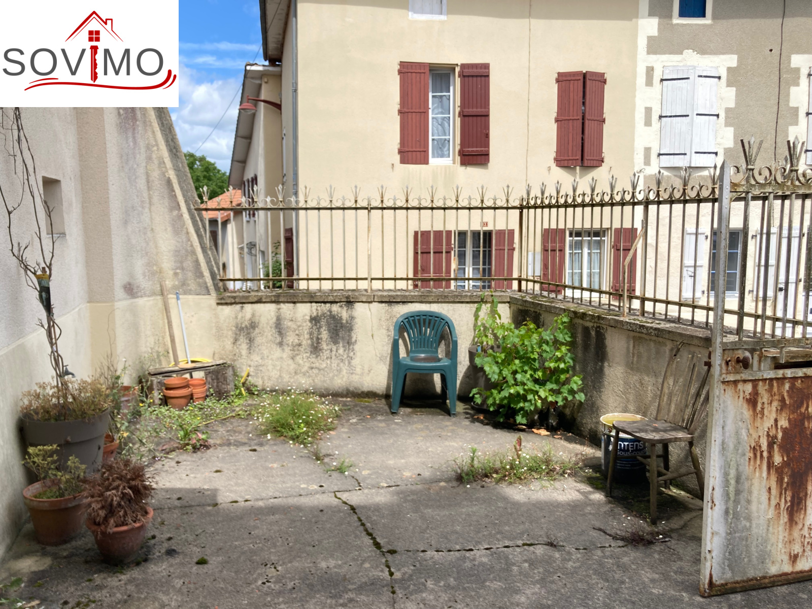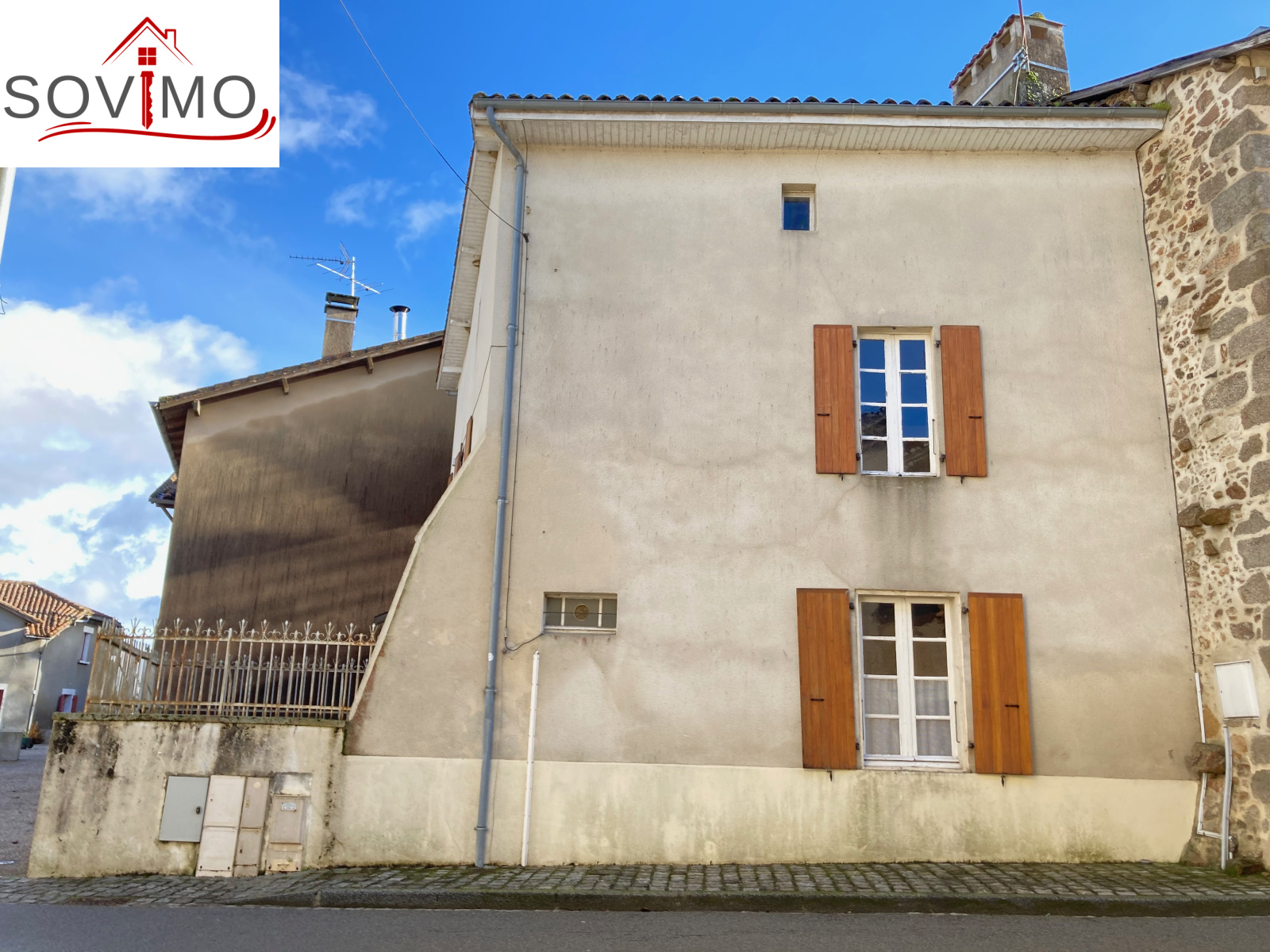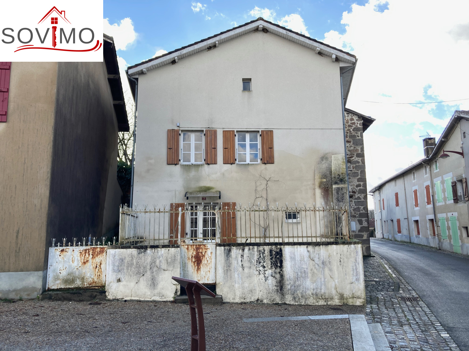 REF. 34262 : 44 000 euros H.A.I, St Maurice des lions (16), proche Confolens, idéal vacances, maison de village, mitoyenne, 90 m2 env. utilisables : cuisine/séjour (cheminée), salon, salle d'eau, wc, étage : 2 chambres, grenier utilisable de 50 m2, cellier séparé, cour attenante de 23 m2 env., tout à l'égout, le tout sur 177 m2.