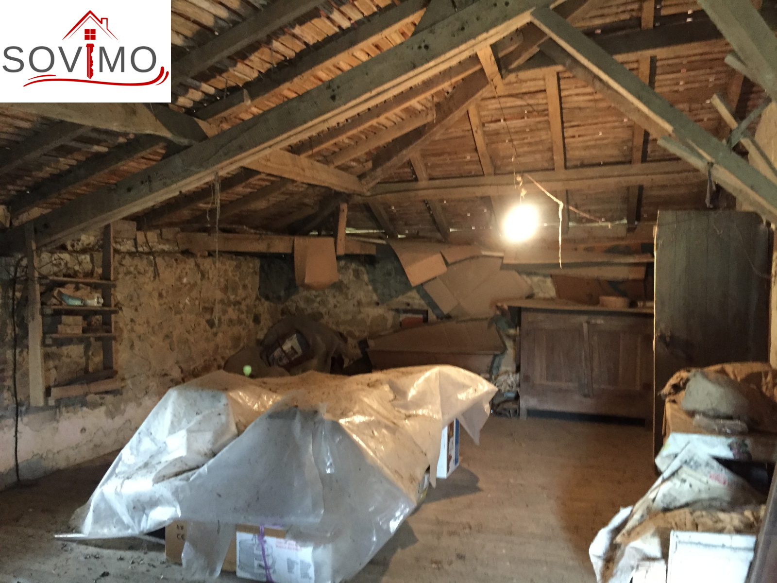 Cellier/chaufferie de 32 m2 avec grenier, 2 greniers de 66 et 38 m2