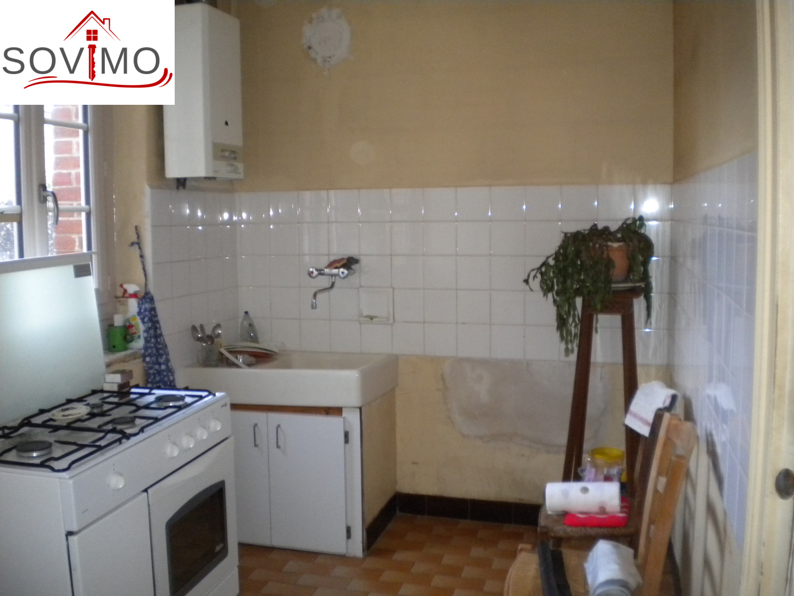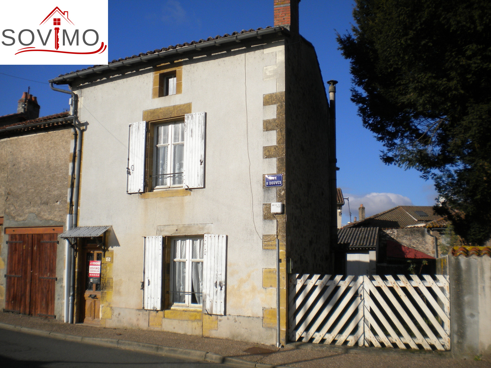 REF. 33608 : 43 800 euros Ag.incl., secteur Availles Limouzine (86), maison de bourg mitoyenne, 60 m2 env. utilisables : entrée, cuisine, séjour, salle de bain/wc, étage : palier, 2 chambres, grenier au dessus, chauf. électrique, garage 16 m2, petits toits, tout à l'égout, cour et jardin attenants, le tout sur 280 m2.