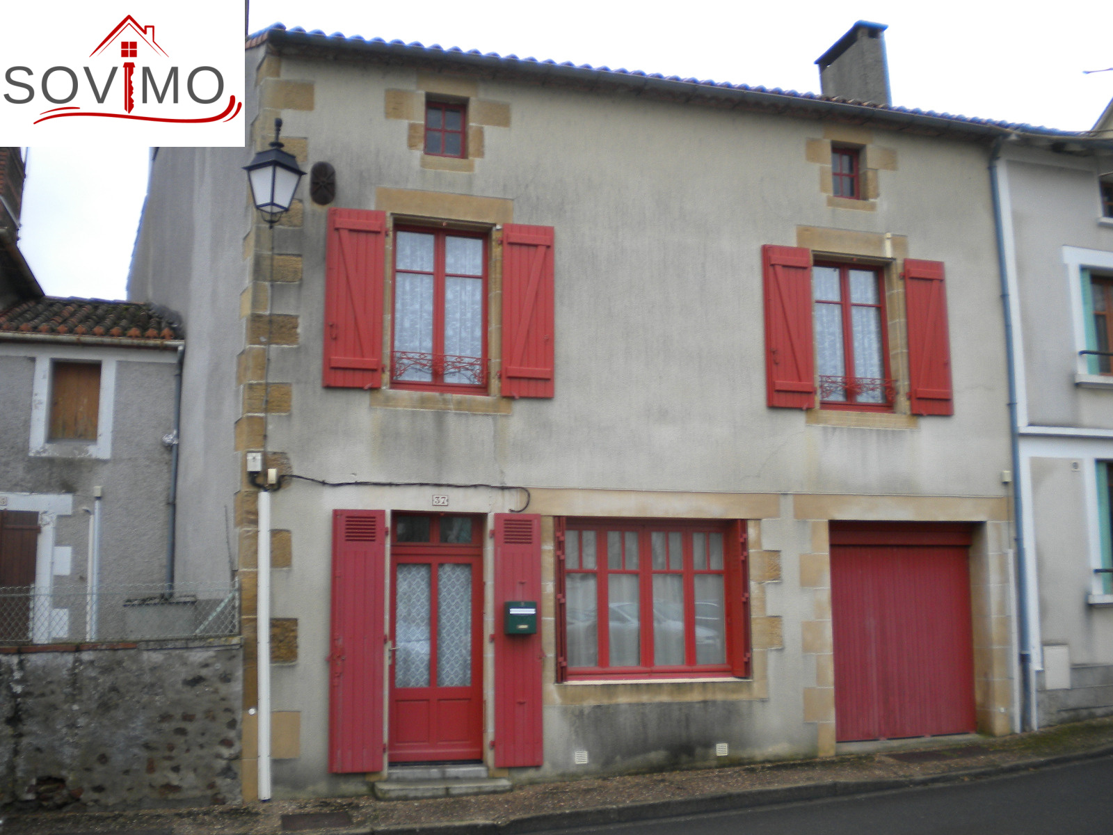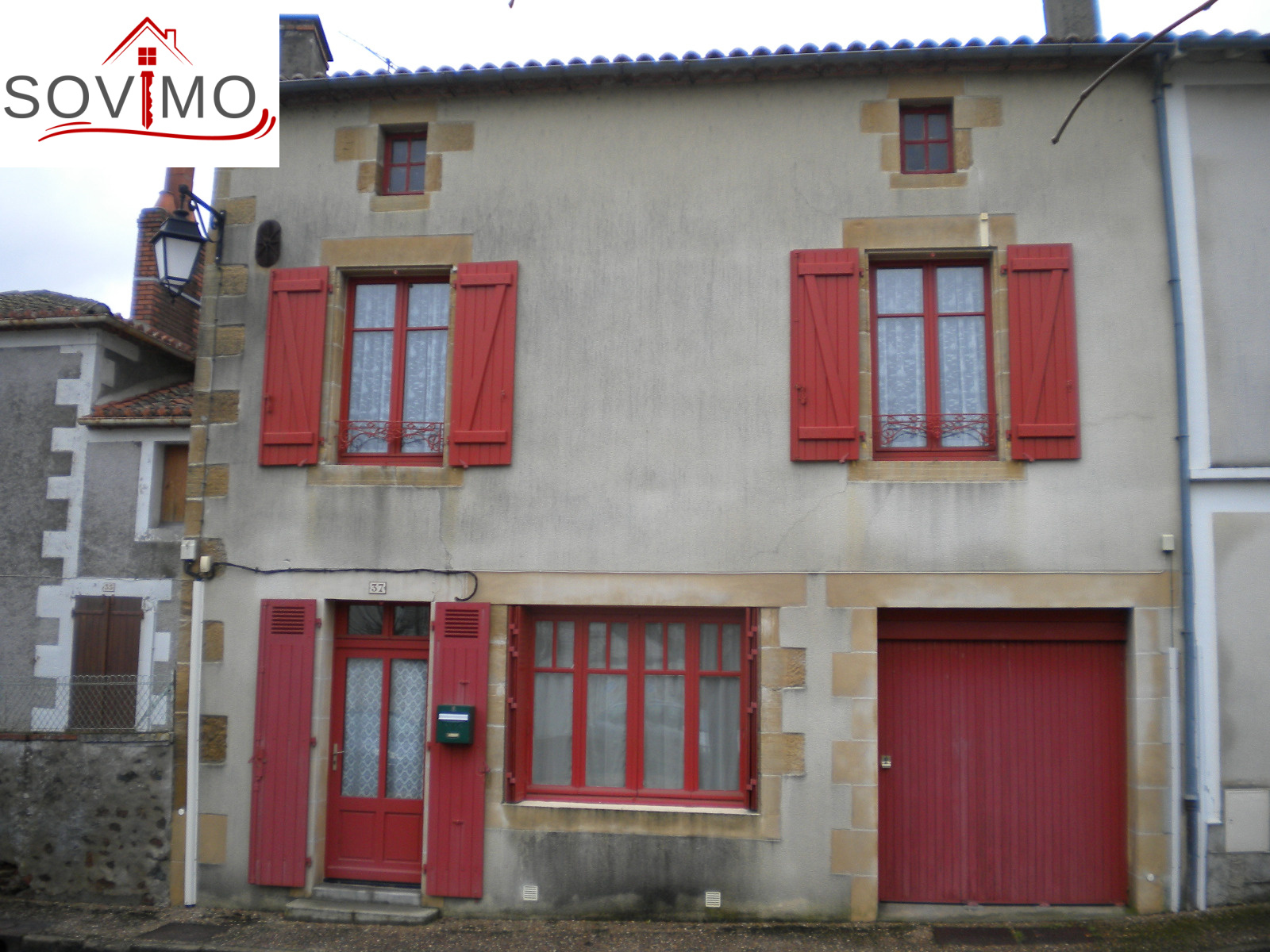 REF. 33882 : 44 000 euros H.Ag.Incl, Availles Limouzine (86), dans un bourg avec commerces, maison mitoyenne tout confort, 100 m2 env. utilisables : cuisine/séjour, salon, dégagement, étage : palier, 2 chambres, salle de bain/wc, grenier aménageable 60 m2, chauffage central fuel, remise/garage avec wc et puits, grenier au dessus, hangar, tout à l'égout, jardin attenant, le tout sur 376 m2.