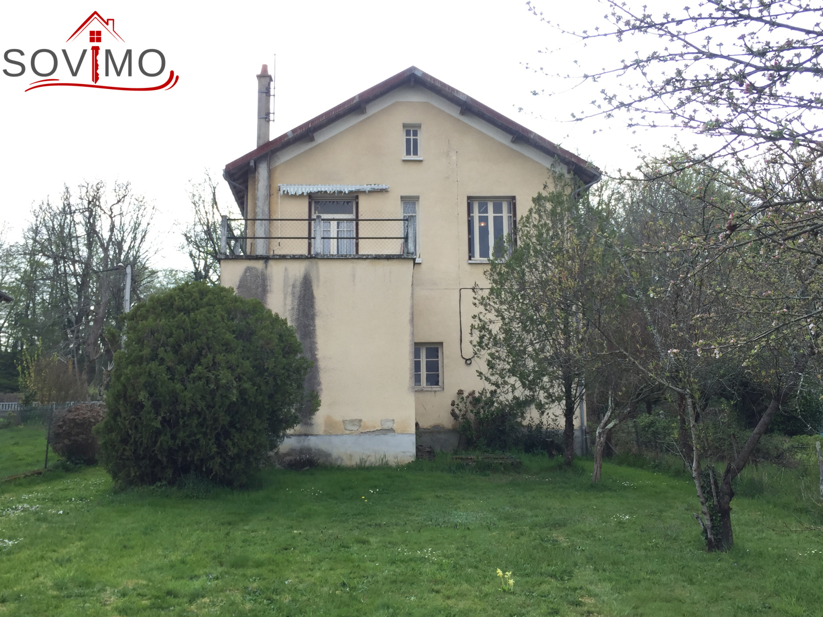 REF.34027 : 44 000 € H.A.I, Availles Limouzine (86), maison de bourg de 1950 indépendante sur sous sol à usage d'habitation, 88 m2 env. utilisables : garage 92 m2 avec douche, 1 chambre sous terrasse, à l'étage : entrée, cuisine avec terrasse, séjour (cheminée/insert, balcon), 2 chambres, salle d'eau/wc, chauf. fuel, grenier au dessus, tout à l'égout, dépendance 25 m2, puits avec motopompe, terrain attenant en bordure de rivière, le tout sur 1248 m2.
