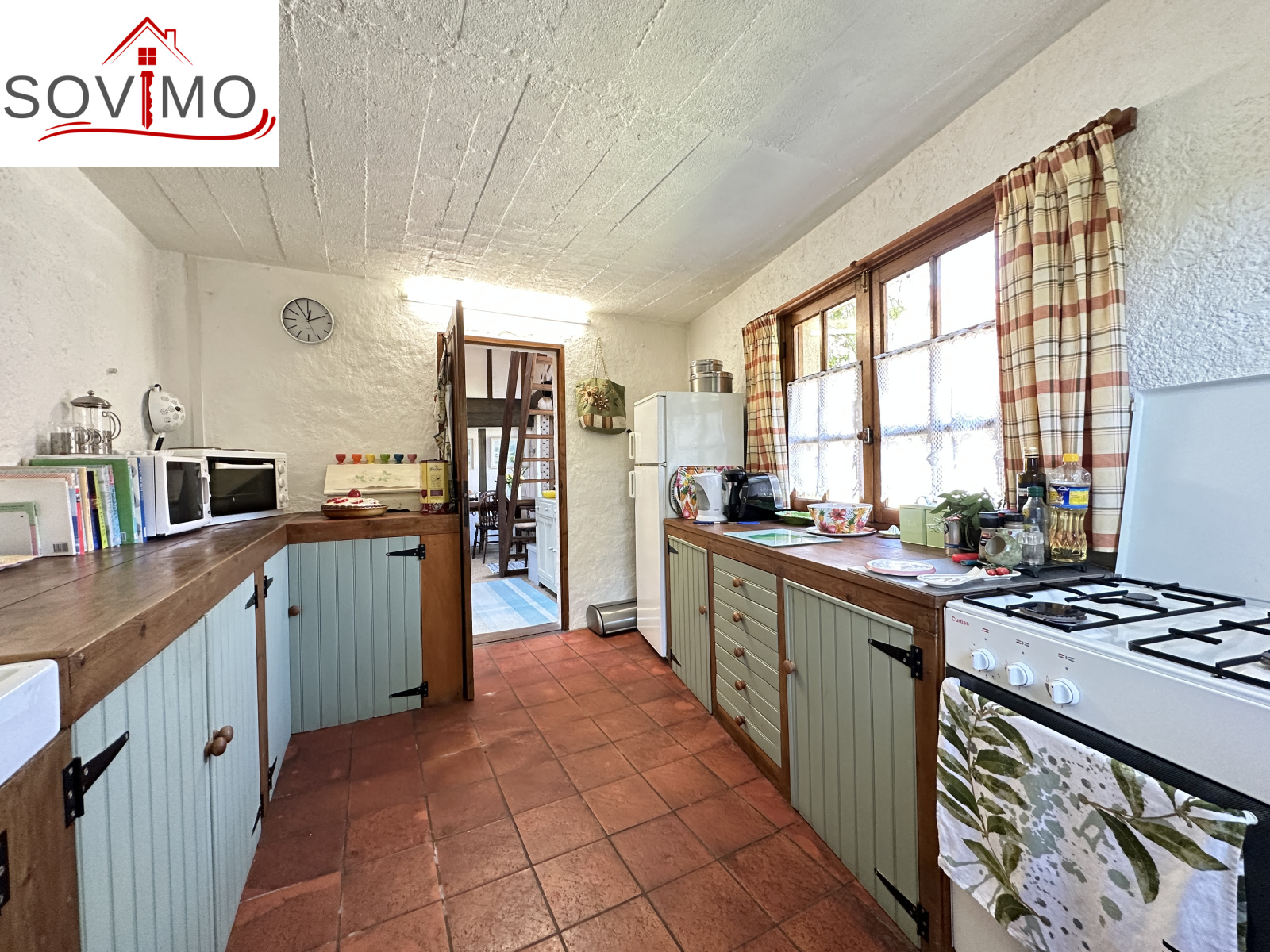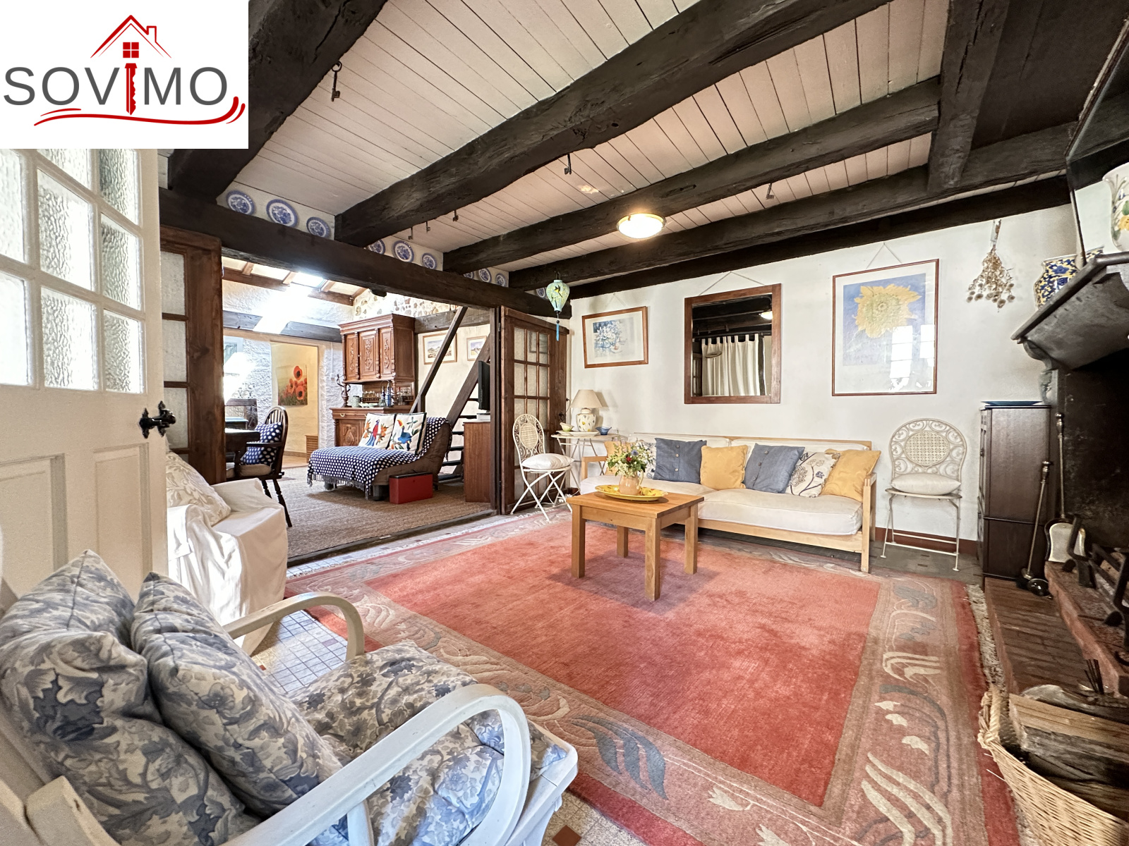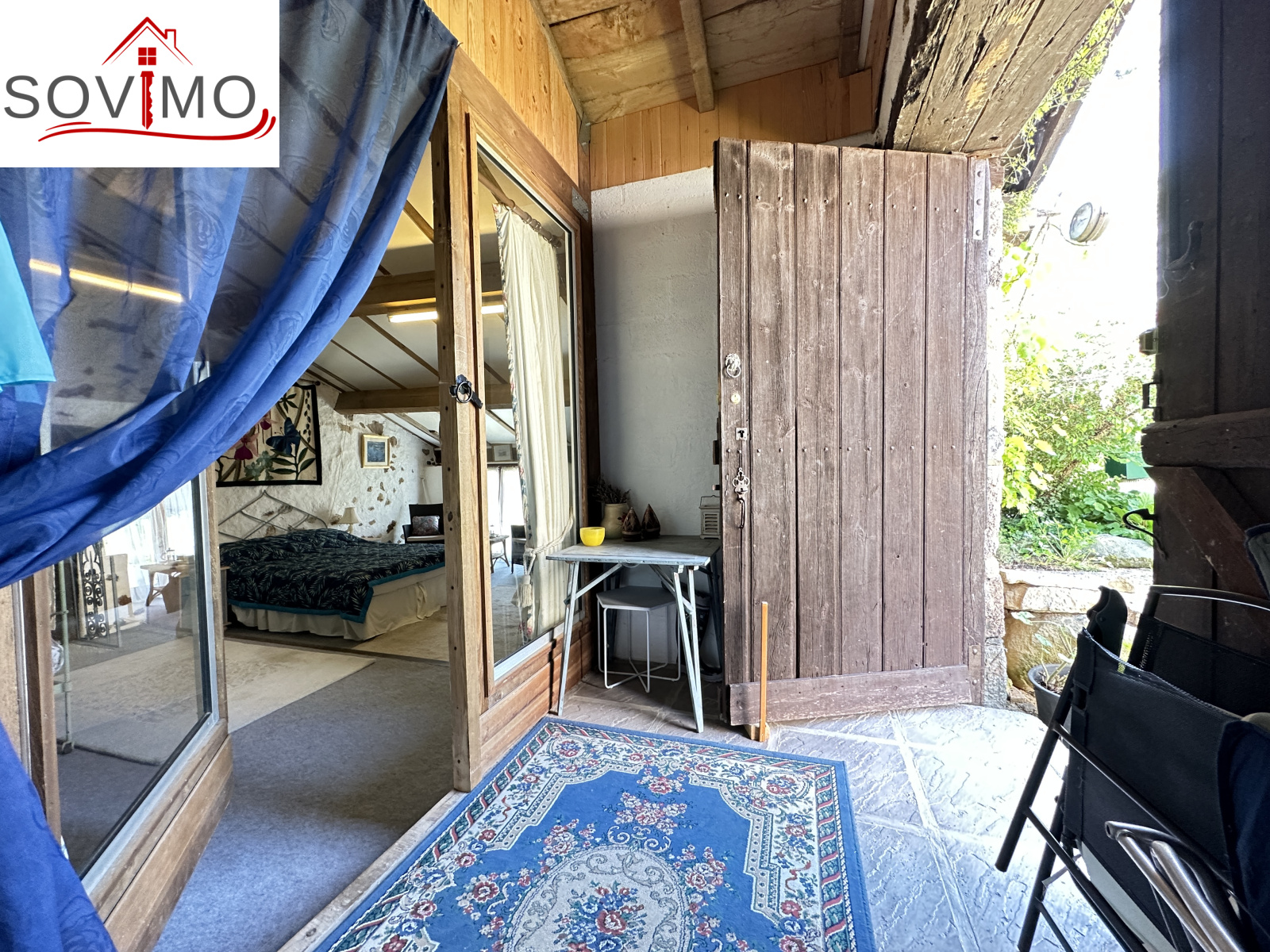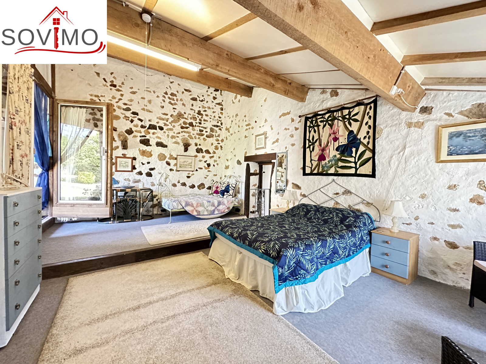 RÉF; 34502 : 66 000 euros H.A.I, AVAILLES LIMOUZINE (86), EXCLUSIVITÉ ! à 3 kms d'une petite ville avec commerces, dans un hameau, jolie maison de campagne en pierre de pays, mitoyenne, à usage d'habitation, 114 m2 env. utilisables, composée au rez de chaussée : entrée, cuisine aménagée, séjour (poêle à bois), salon (cheminée),1 chambre, 2 salles d'eau/wc, à l'étage : mezzanine/chambre. Fosses toutes eaux. Terrasse surélevée de 16 m2 env., garage attenant de 52 m2 et un proche fermé de 5 m2. Parcelle boisée séparée en bordure de rivière de 2ha env., non constructible.