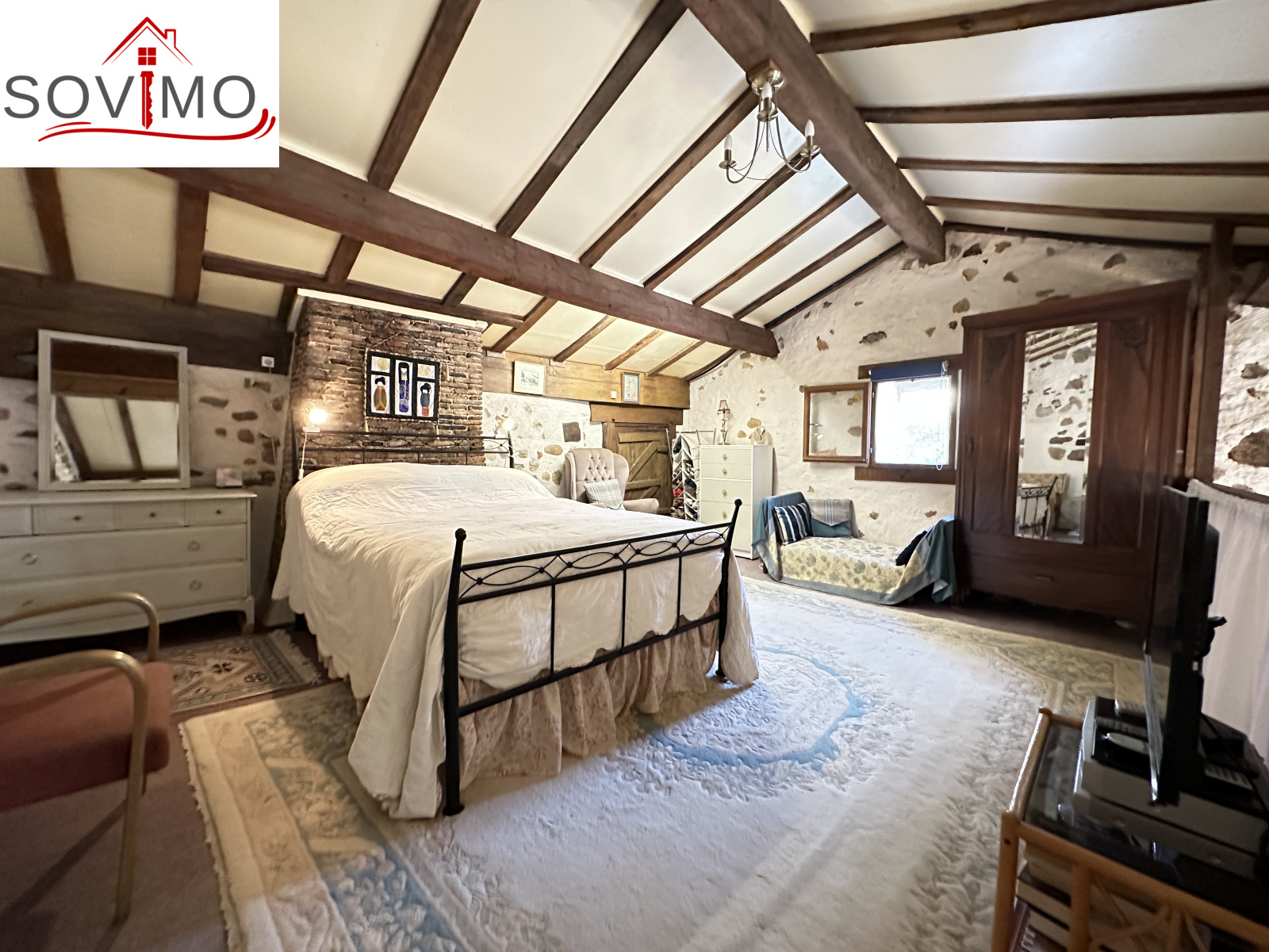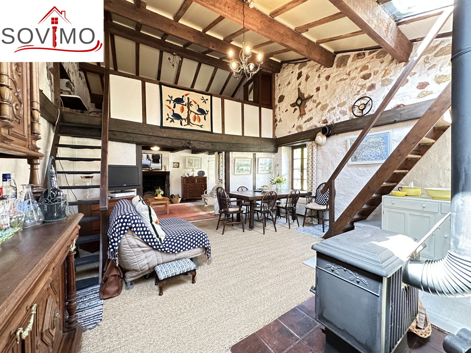 INFORMATIONS COMPLÉMENTAIRES : chauffage par poele à bois, cheminée, 2 cumulus électrique de 200 L et 100 L, double vitrage et simple bois, volets bois, construction en pierre, toiture tuile état d'usage, 2 fosses toutes eaux, bon état général.