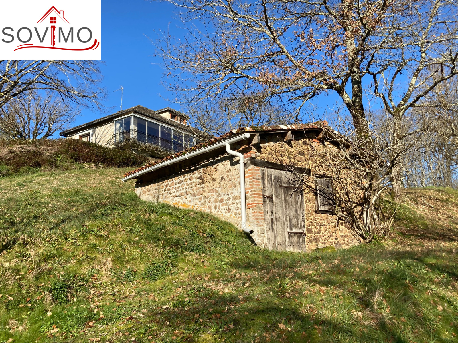 INFORMATIONS COMPLEMENTAIRES : chauffage central fuel avec production d'eau chaude (cuve de 1500 L), simple et survitrage bois, persiennes bois, construction des années 60 en pierre, toiture tuile état d'usage, ancienne fosse septique, bon état général.
