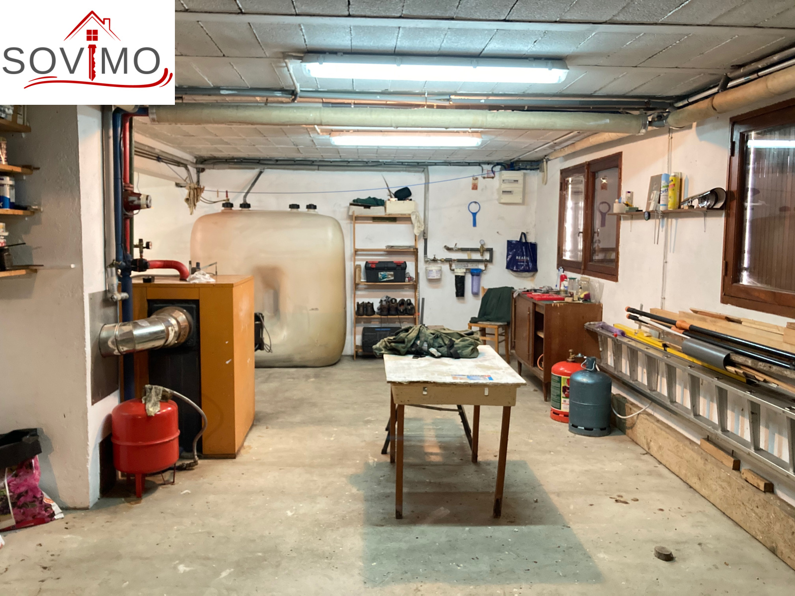 sous sol intégral semi enterré à usage de garage/buanderie/chaufferie/débarras de 100 m2