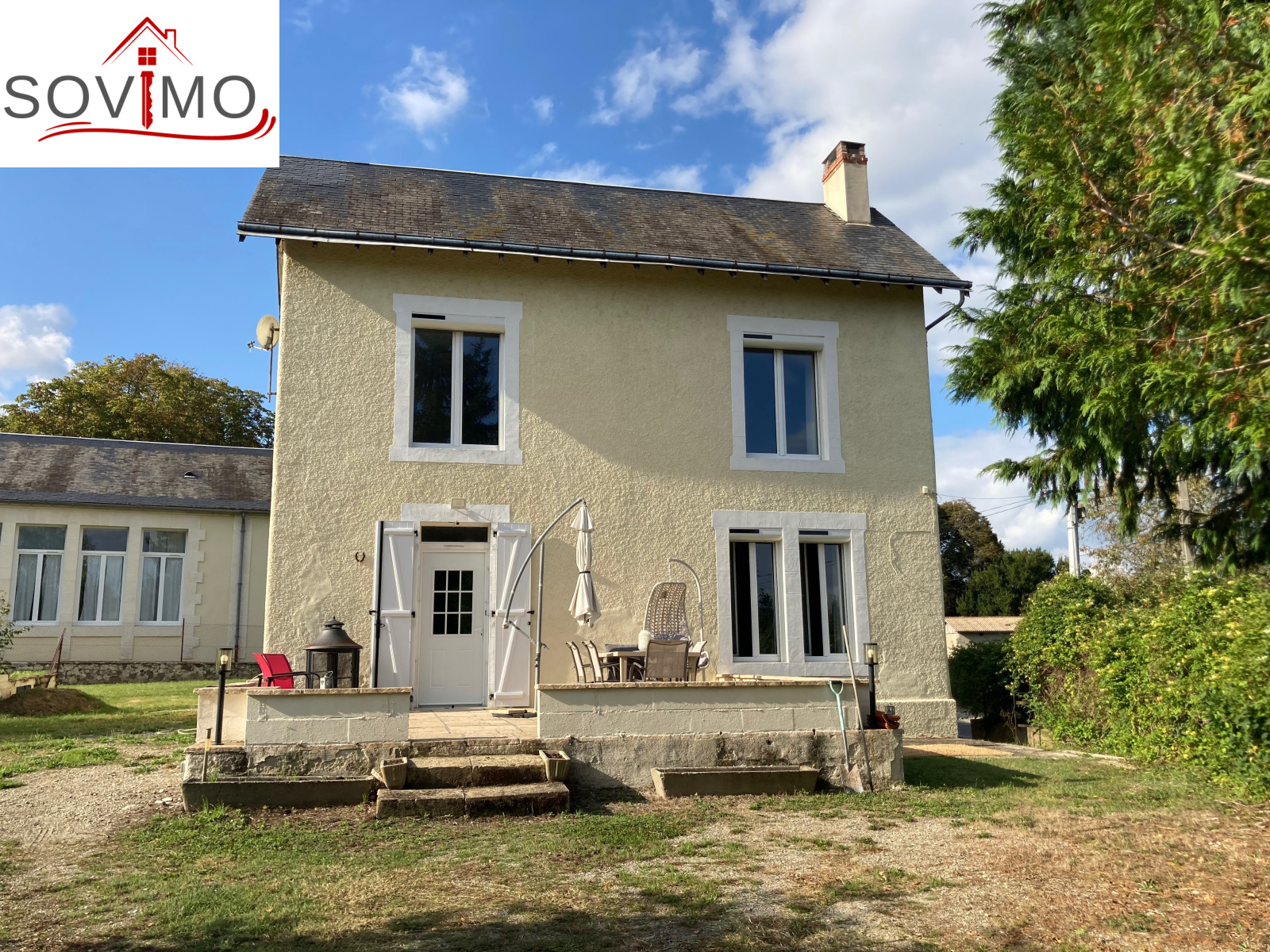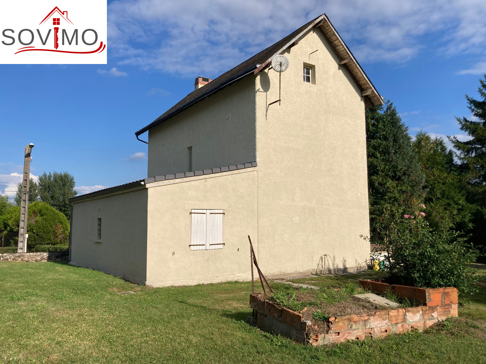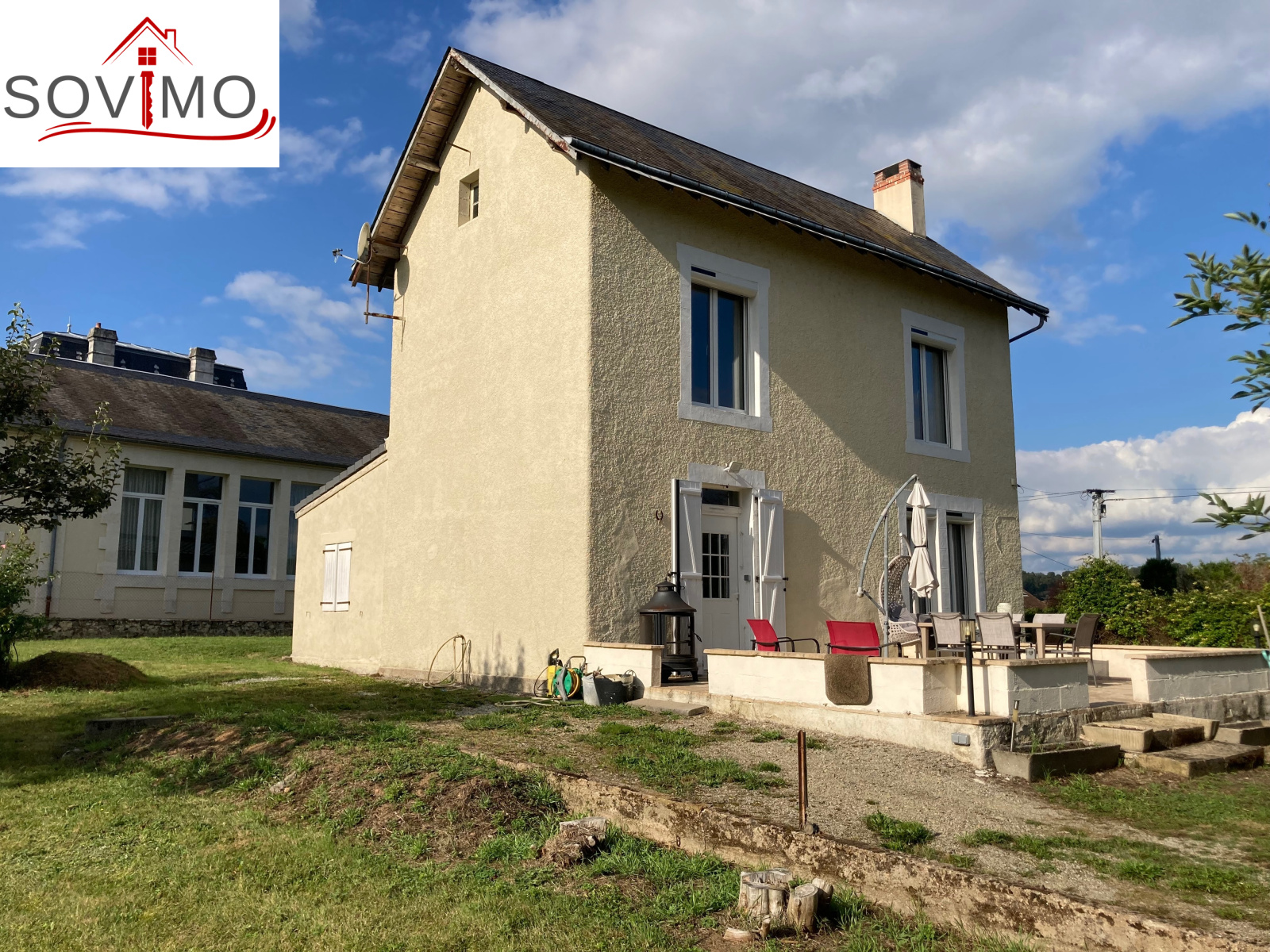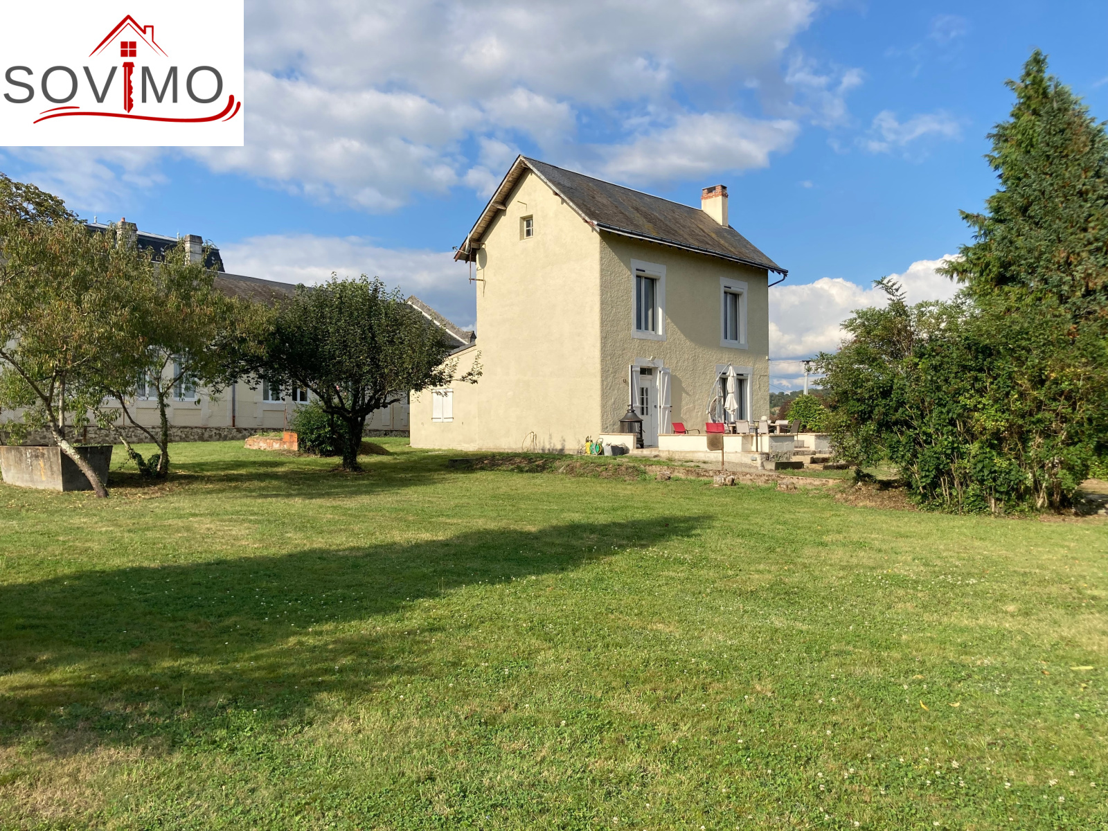 REF.34299 : 151 200 euros H.A.I., Availles Limouzine (86), dans un bourg avec commerces, maison indépendante tout confort à usage d'habitation, 103 m2 env. utilisables : cuisine aménagée, salon (cheminée avec insert), couloir, 2 chambres, salle de bain/wc, étage : palier, 2 chambes avec chacune sd'eau/wc, grenier, cave 41 m2, terrasse, chauf. électrique, tout à l'égout, garage indépendant de 134 m2 avec grenier, terrain attenant avec petits toits et puits, le tout sur 3036 m2.