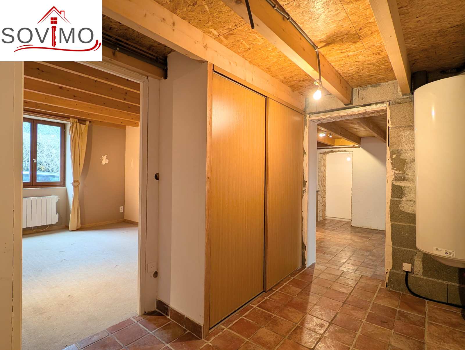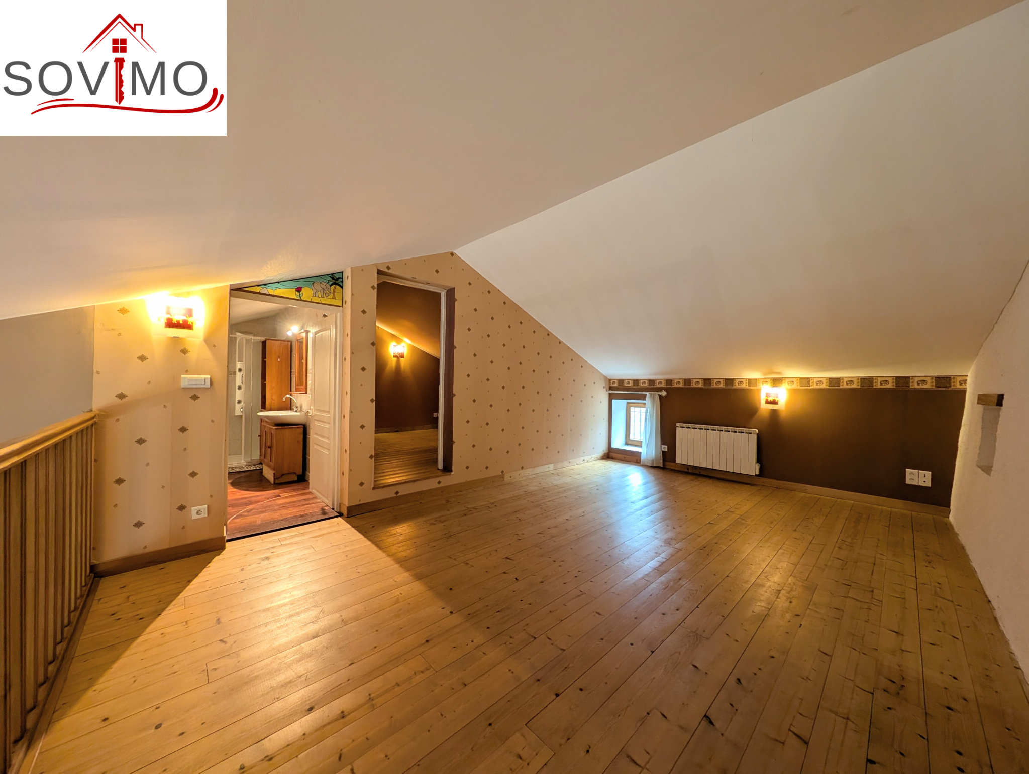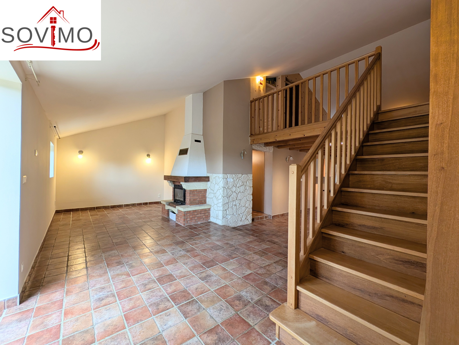 - 1er étage : une mezzanine, une chambre, salle d'eau/WC.