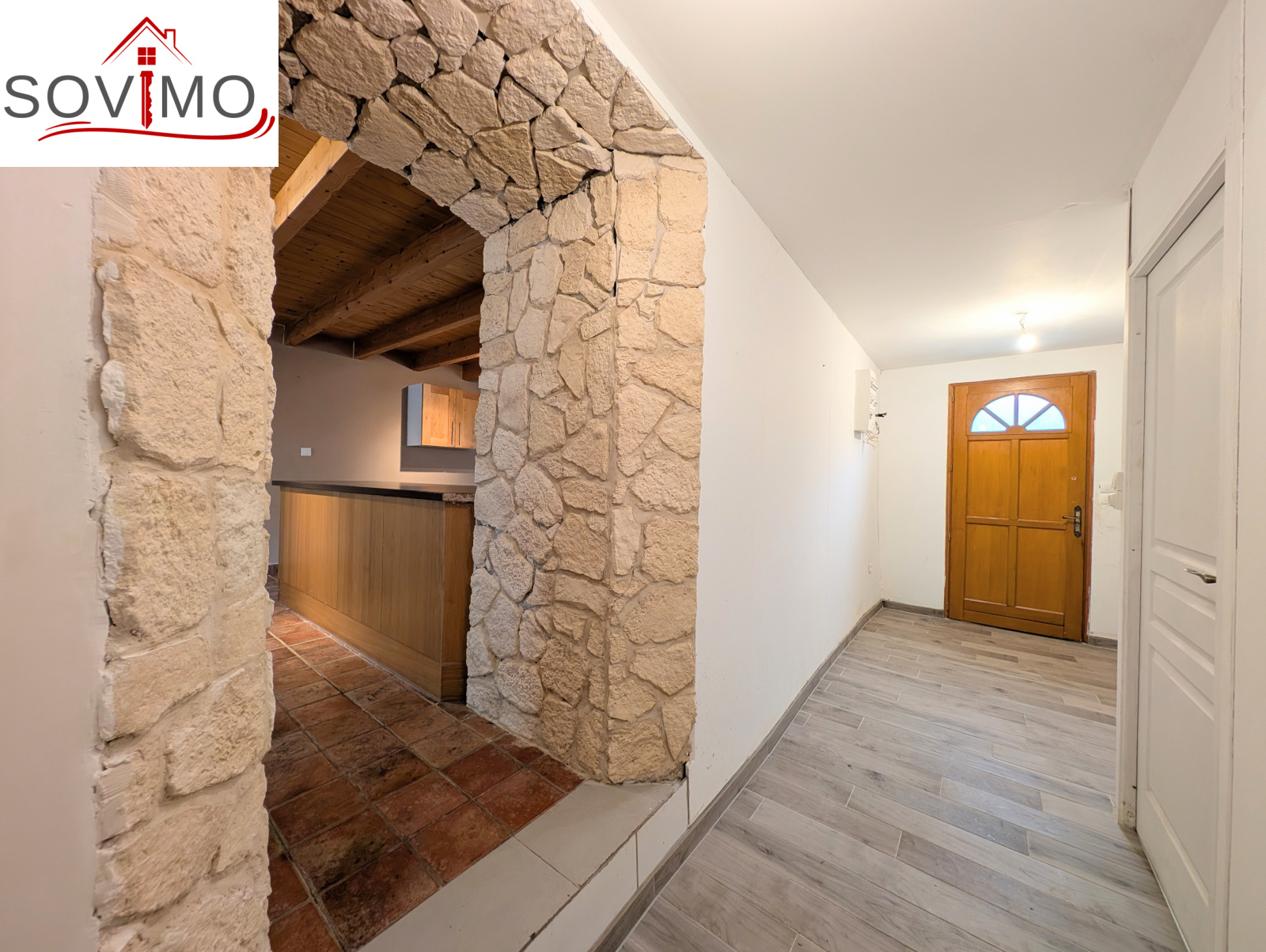 Maison de bourg mitoyenne, avec des finitions à terminer, de 163 m2 env. utilisables composée :