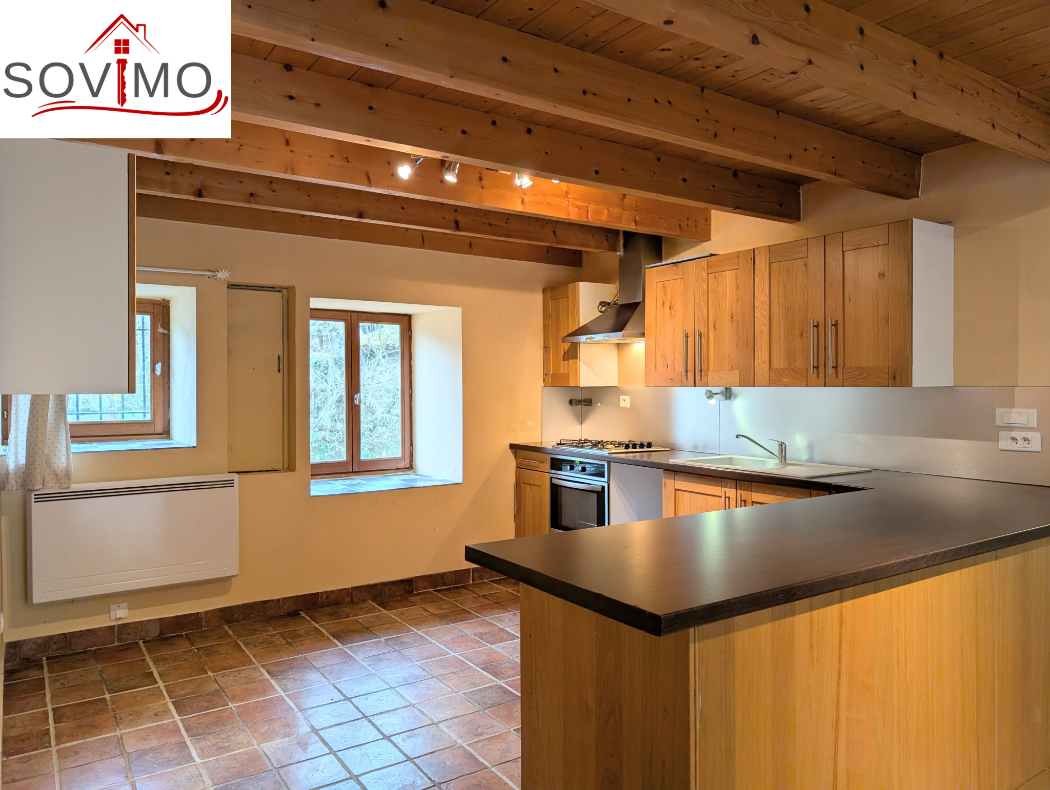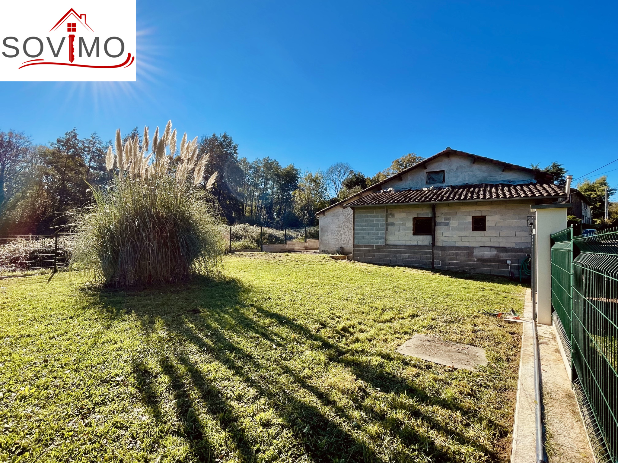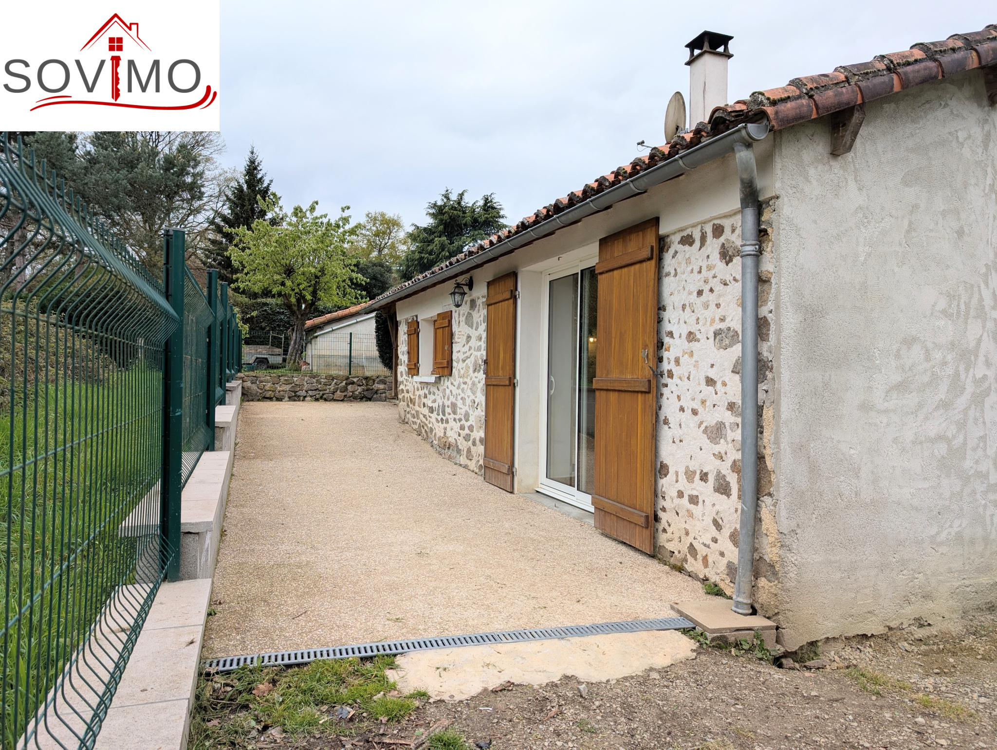 - Extérieur : portail ( pouvant être motorisé), une terrasse couverte + un jardin attenant clos avec abri.