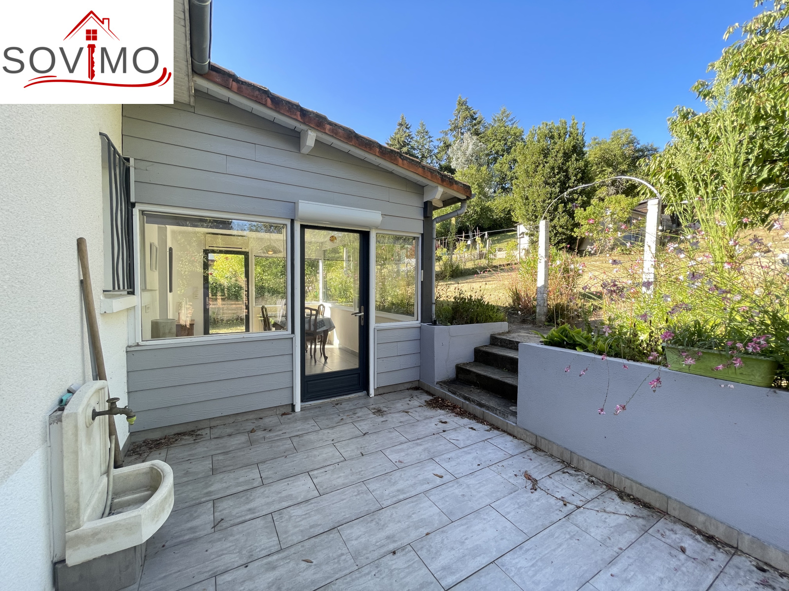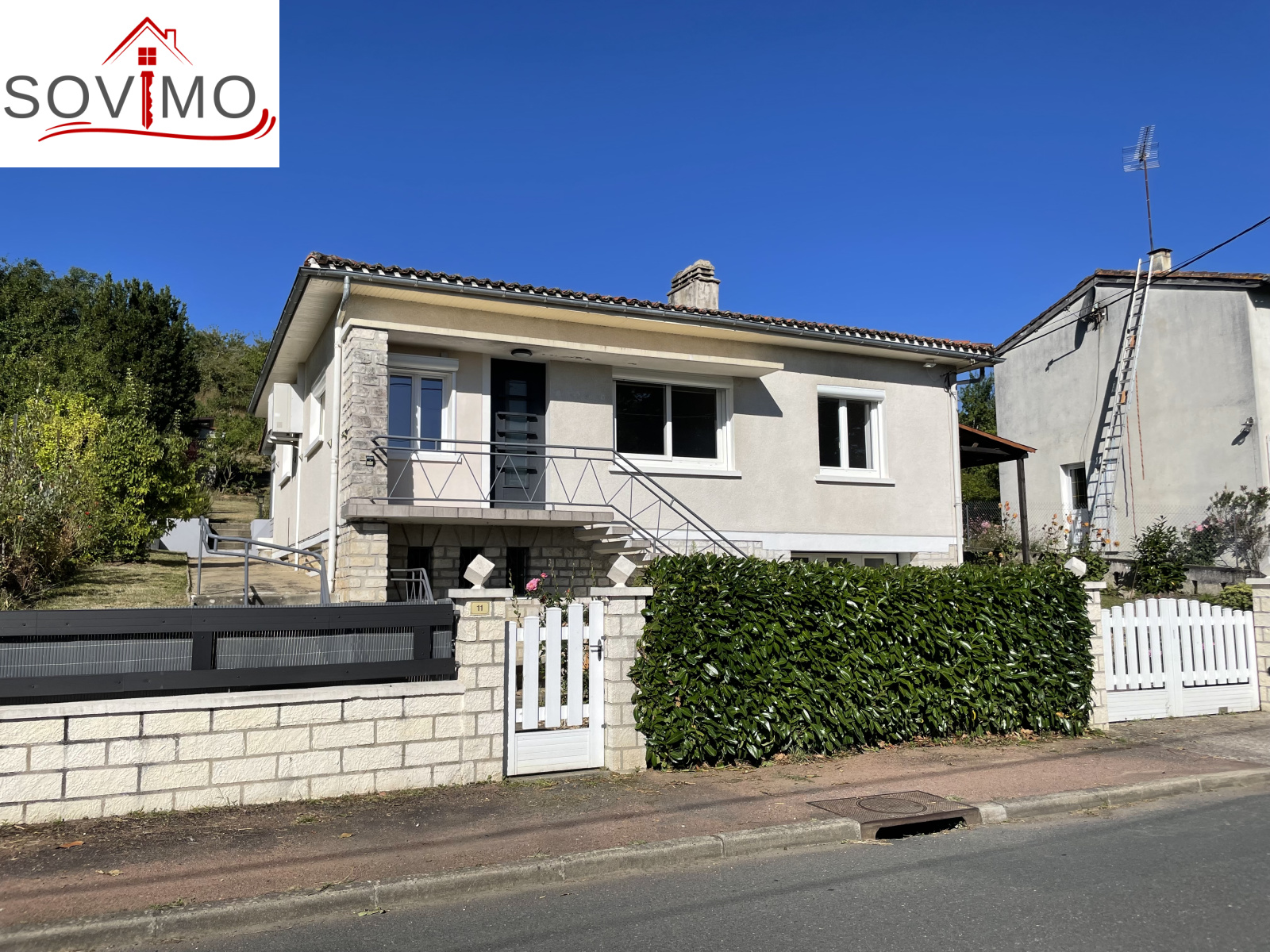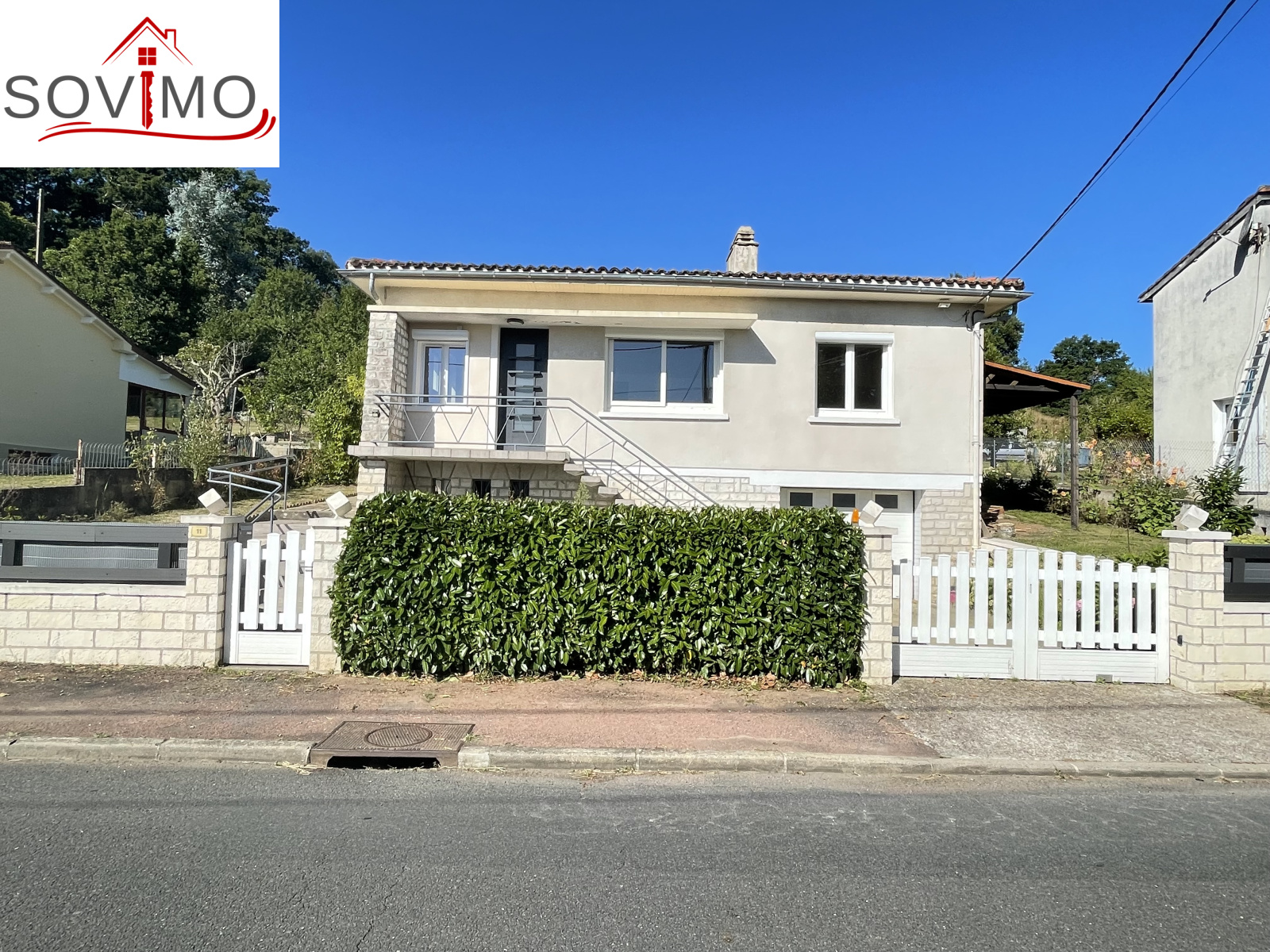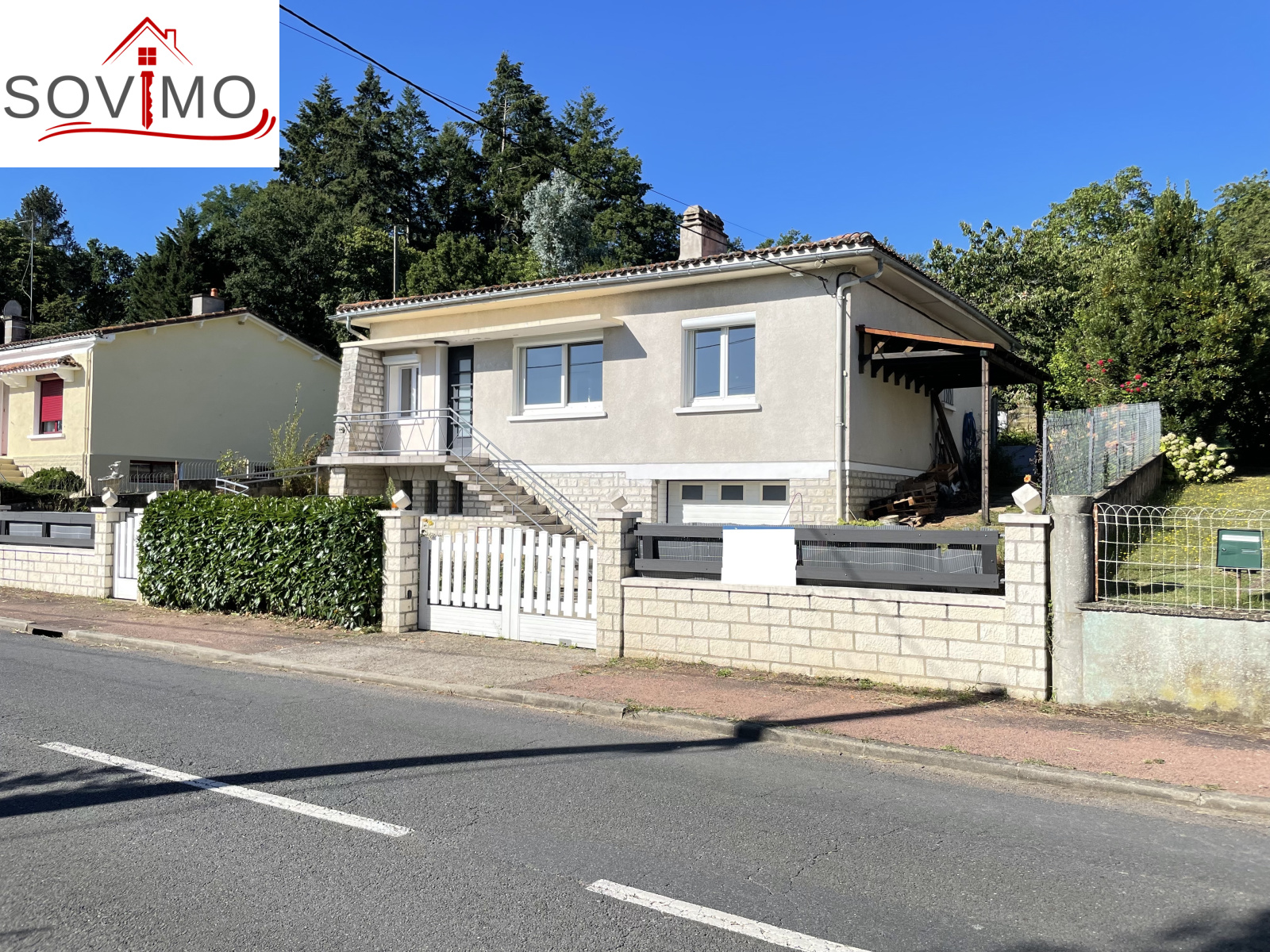 RÉF.34536 : 149 950 euros H.A.I, Availles Limouzine (86), proximité commerces, avec une très belle vue sur la rivière pour ce joli pavillon indépendant sur sous sol semi enterré, intérieur moderne, à usage d'habitation, 92 m2 env. utilisables, composé au rez de jardin : véranda, cuisine aménagée, salon/séjour (cheminée avec insert) avec accès sur une terrasse de 27 m2, couloir, 2 chambres, salle d'eau, wc, au sous sol ou rez de chaussée : 1 pièce chauffée de 25 m2, cuisine d'été/buanderie de 24 m2, garage de 28 m2. Chauf. fuel, Assainissement collectif. Terrain attenant clos avec abri de jardin, puits avec pompe, le tout sur 1080 m2.
