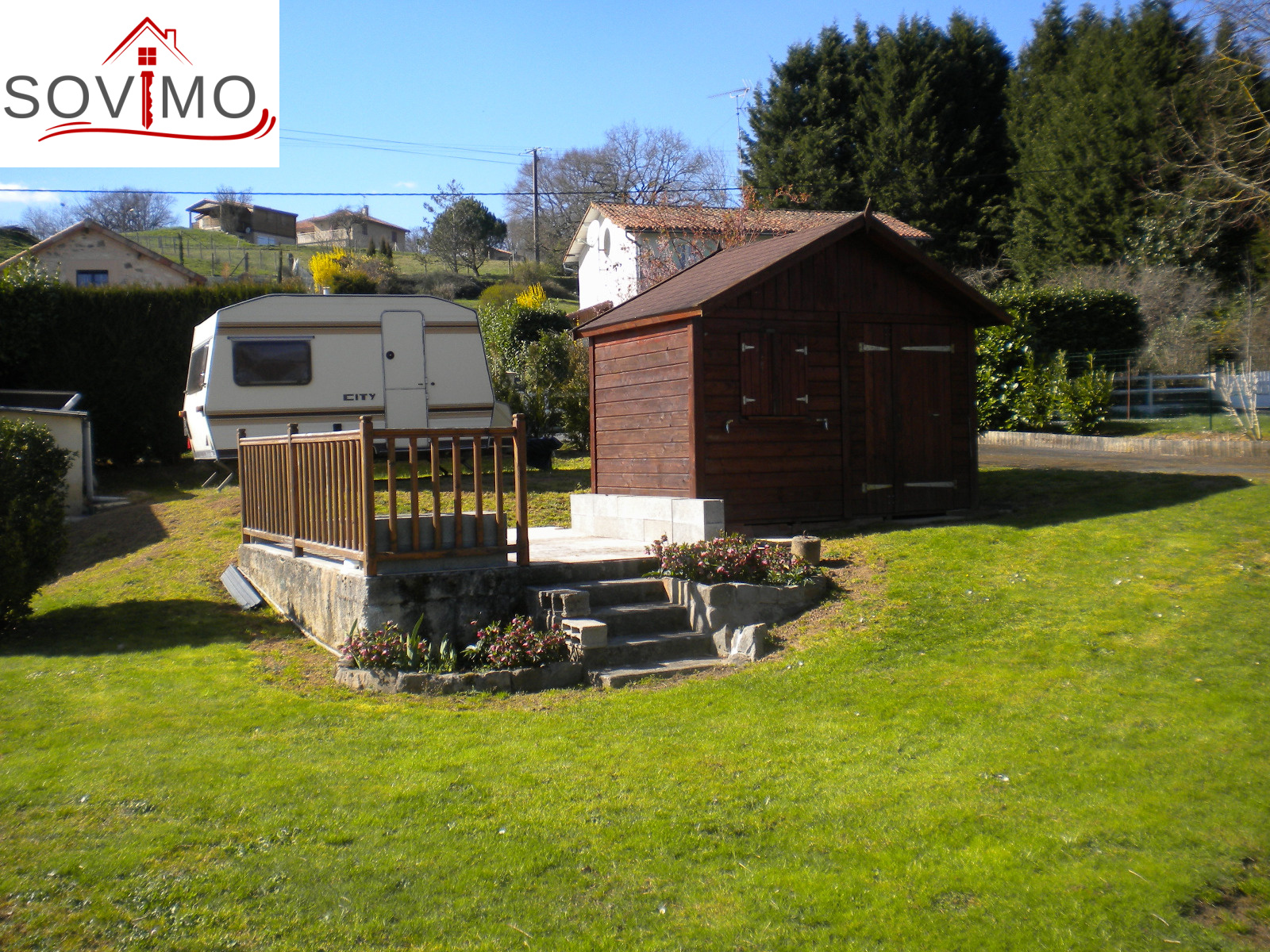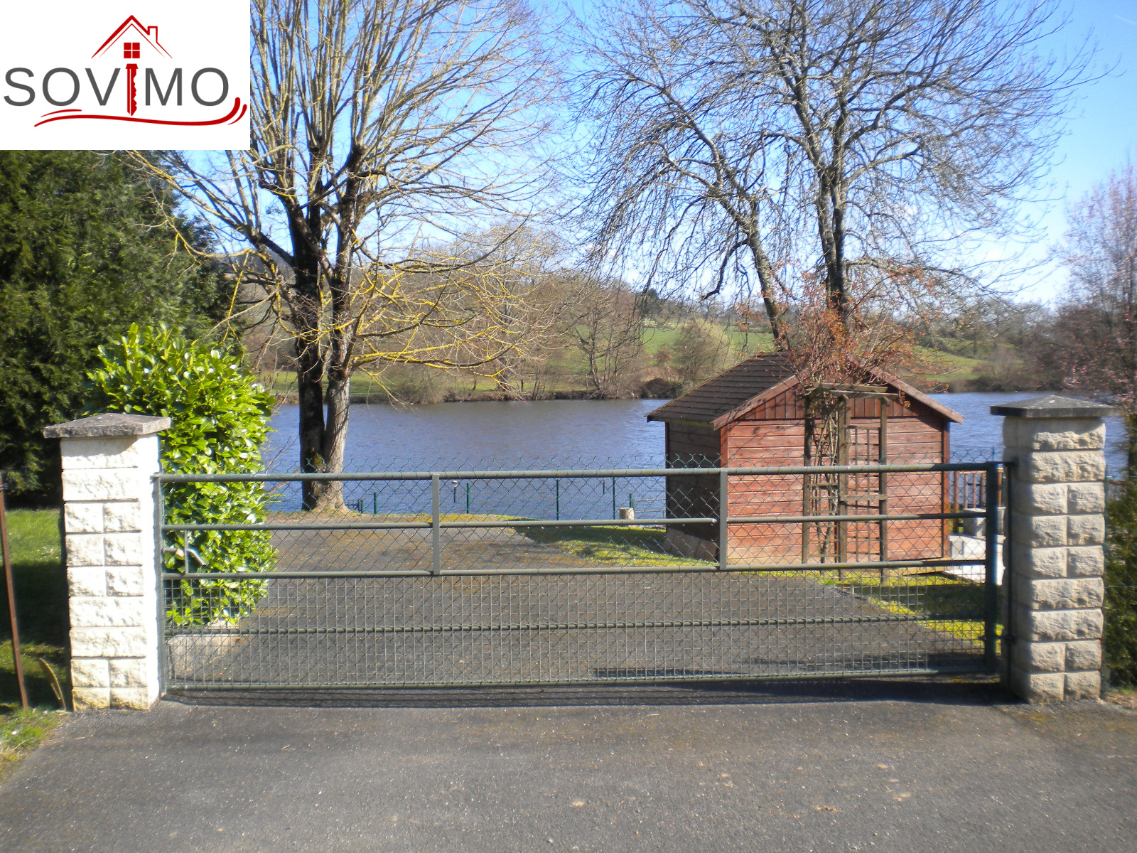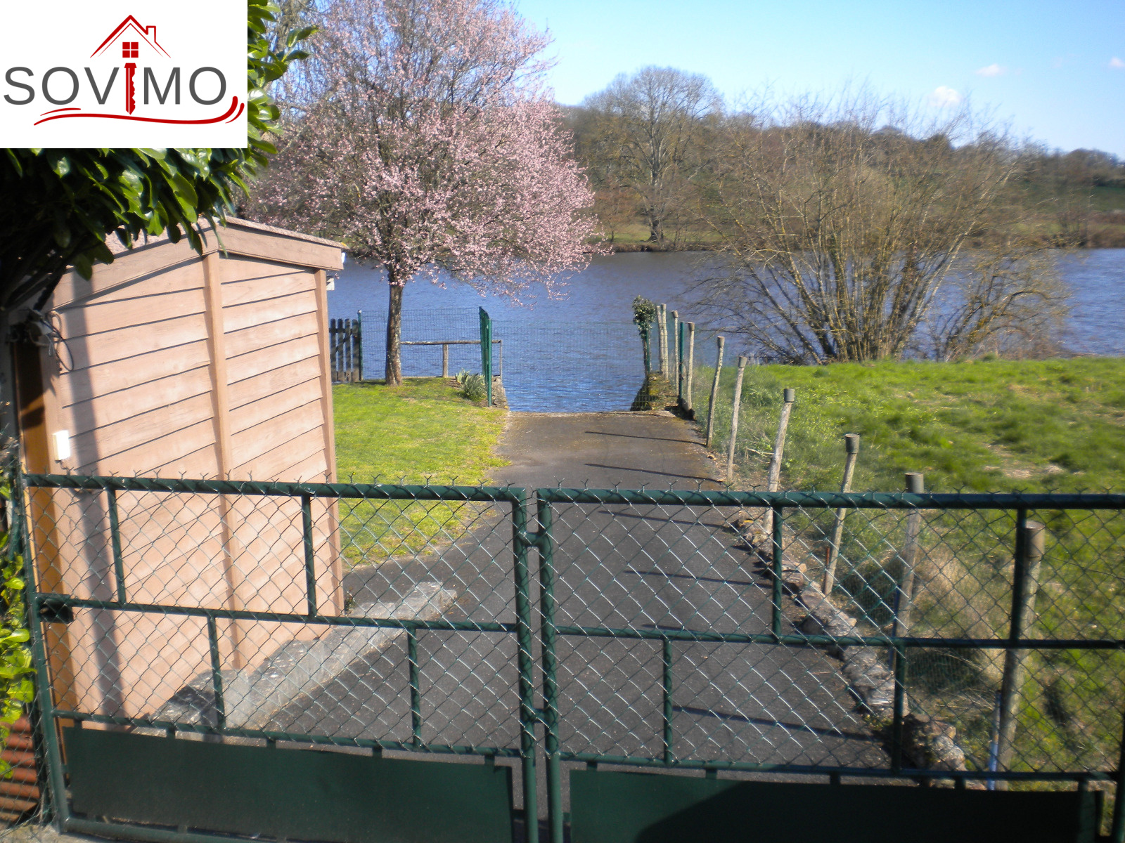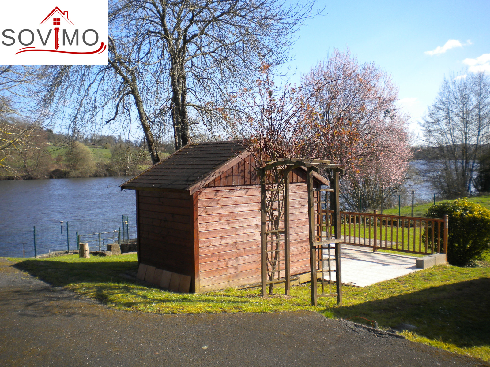 REF.33929 : 28 000 euros H.Ag. Incl., proche Availles (86), en bordure de rivière, beau terrain de loisirs clos et arboré, non constructible, avec abri de jardin en bois de 12 m2 avec cuisine aménagée, salle d'eau (sanibroyeur), viabilisé avec compteur eau et électricitié, tabouret du tout à l'égout, 2 parkings, + autre abri en bois de 6 m2 avec terrasse, terrain avec embarcadère et ponton, le tout sur 520 m2.